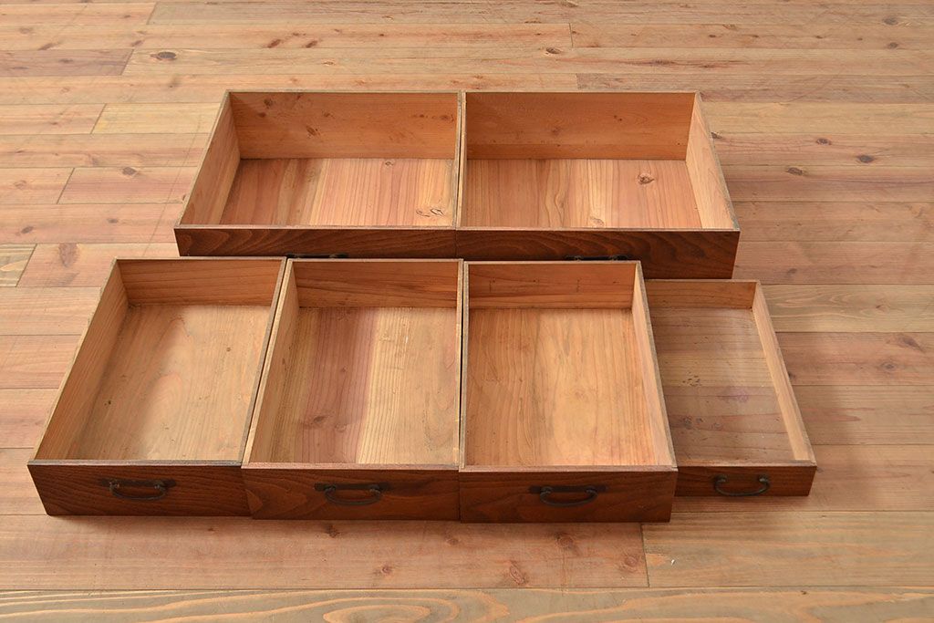 ラフジュ工房> 和箪笥> 水屋箪笥 > 和製アンティーク 前面ケヤキ材 和の趣きを感じさせる、赤味がかった色合いが魅力の箪笥サイドボード(関東水屋箪笥、キャビネット、収納棚)(R-049152)