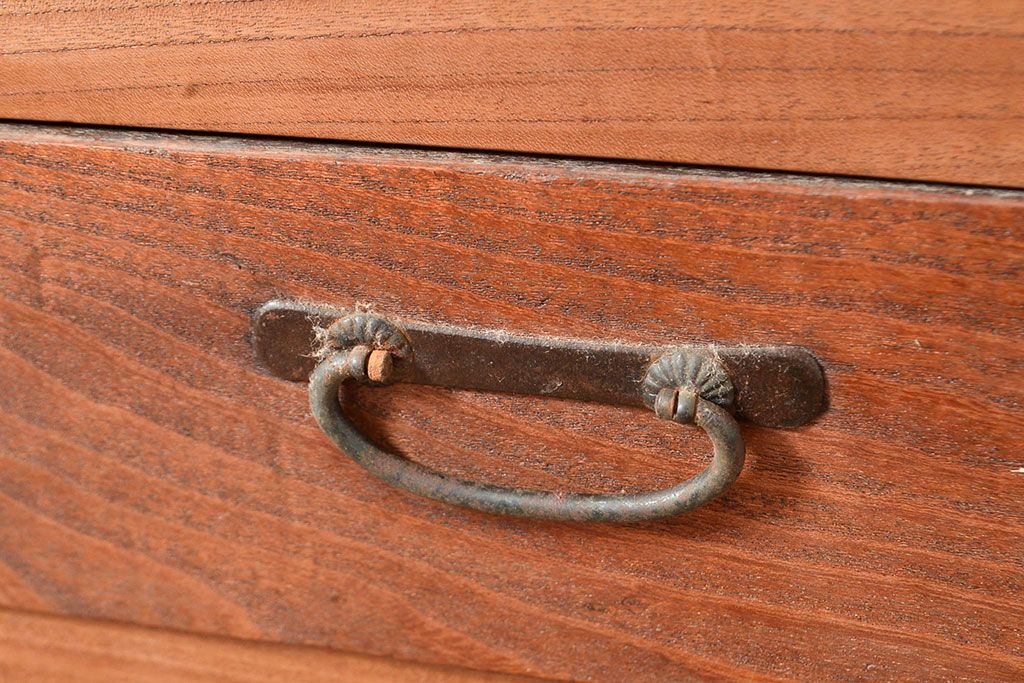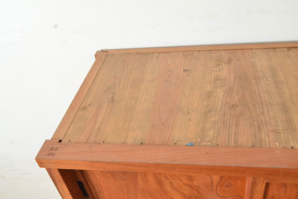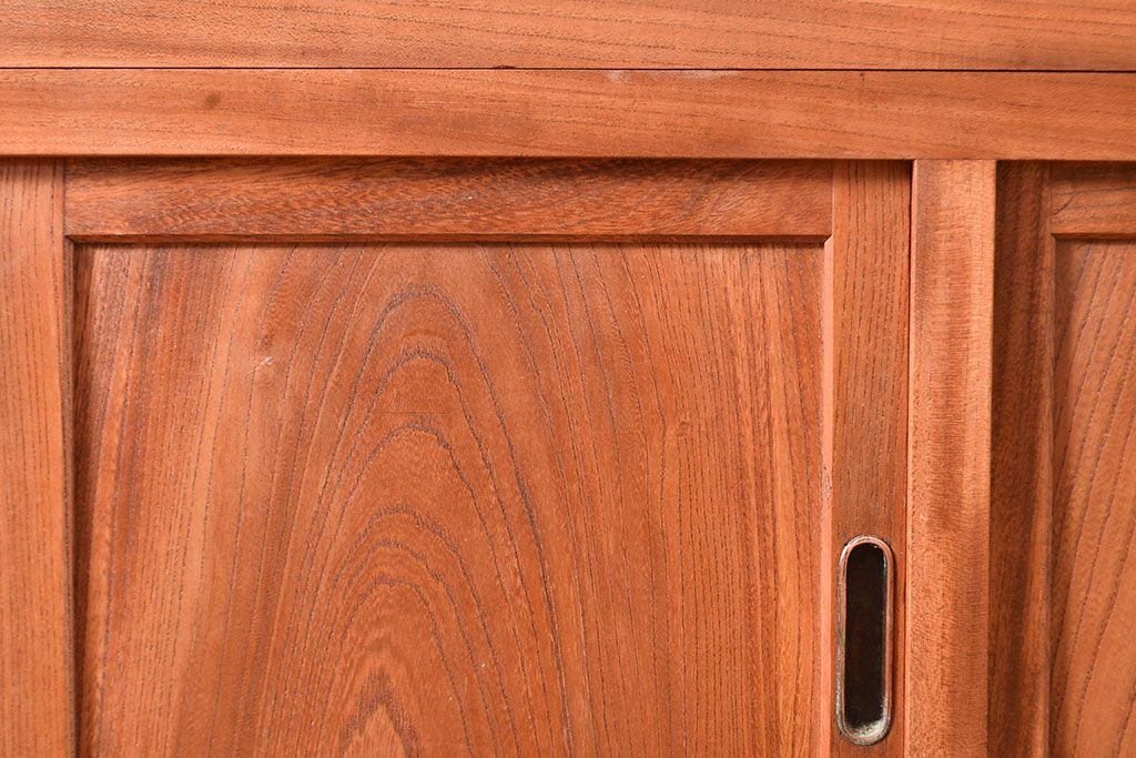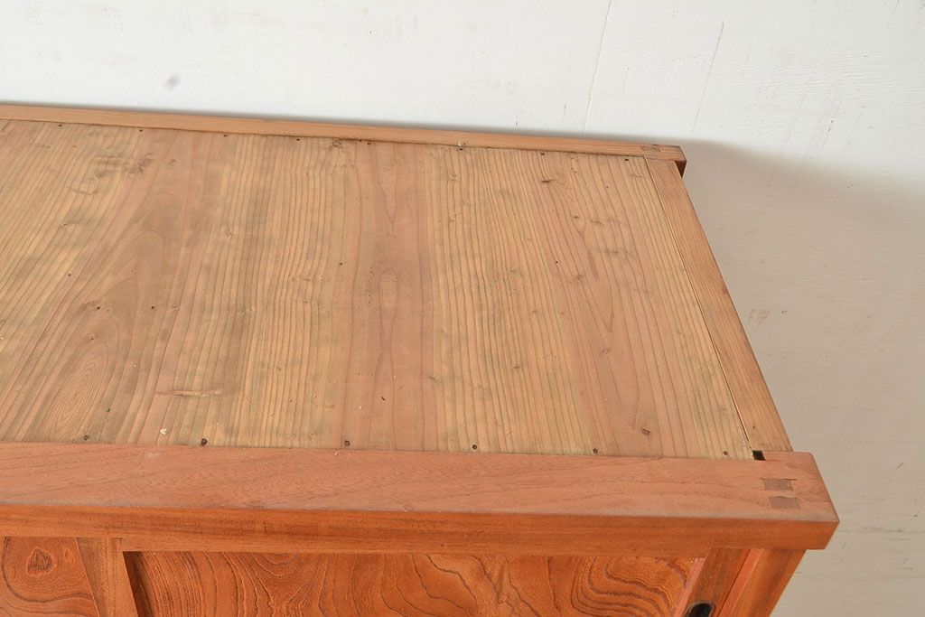 ラフジュ工房> キャビネット・戸棚> サイドキャビネット > 和製アンティーク 前面ケヤキ材 和の趣きを感じさせる、赤味がかった色合いが魅力の箪笥サイドボード(関東水屋箪笥、キャビネット、収納棚)(R-049152)