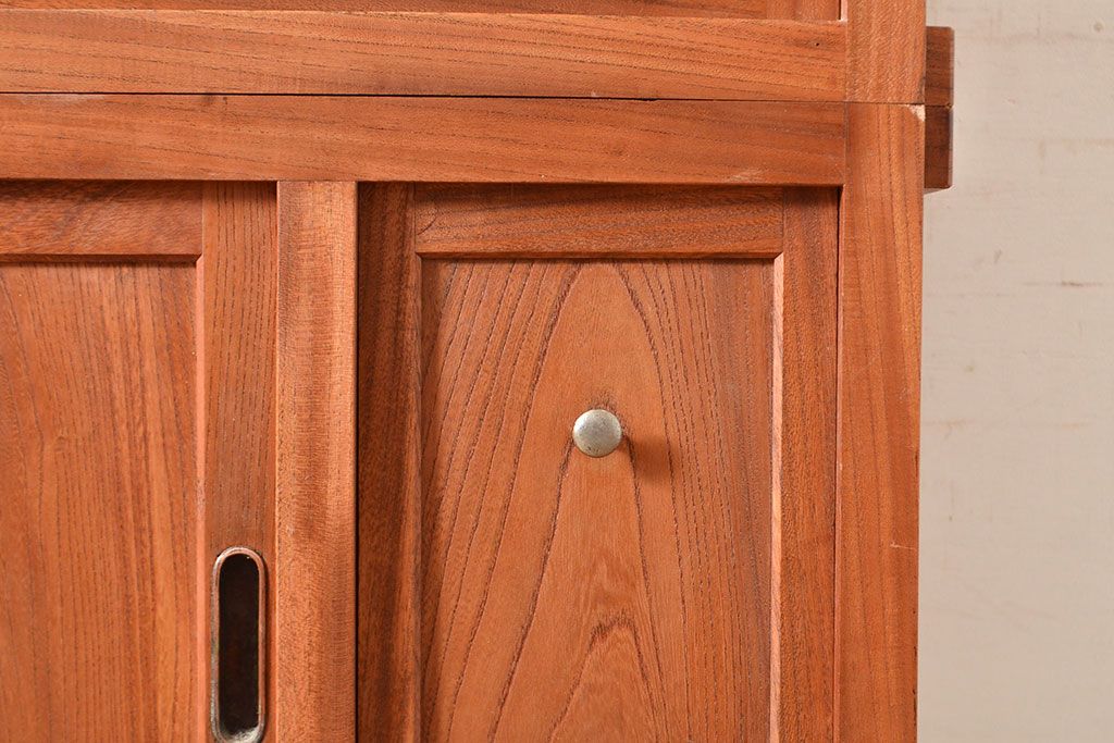 ラフジュ工房> キャビネット・戸棚> 食器棚・カップボード > 和製アンティーク 前面ケヤキ材 和の趣きを感じさせる、赤味がかった色合いが魅力の箪笥サイドボード(関東水屋箪笥、キャビネット、収納棚)(R-049152)