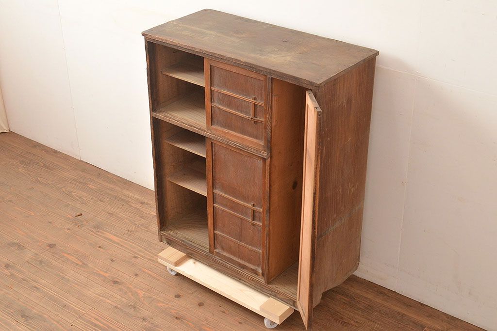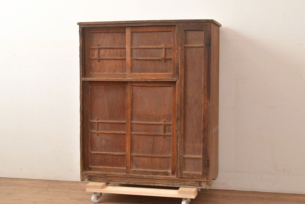 和製アンティーク 杉材合板 昔懐かしい雰囲気が魅力の昭和レトロな下駄箱(収納棚、キャビネット)(R-048151)です。