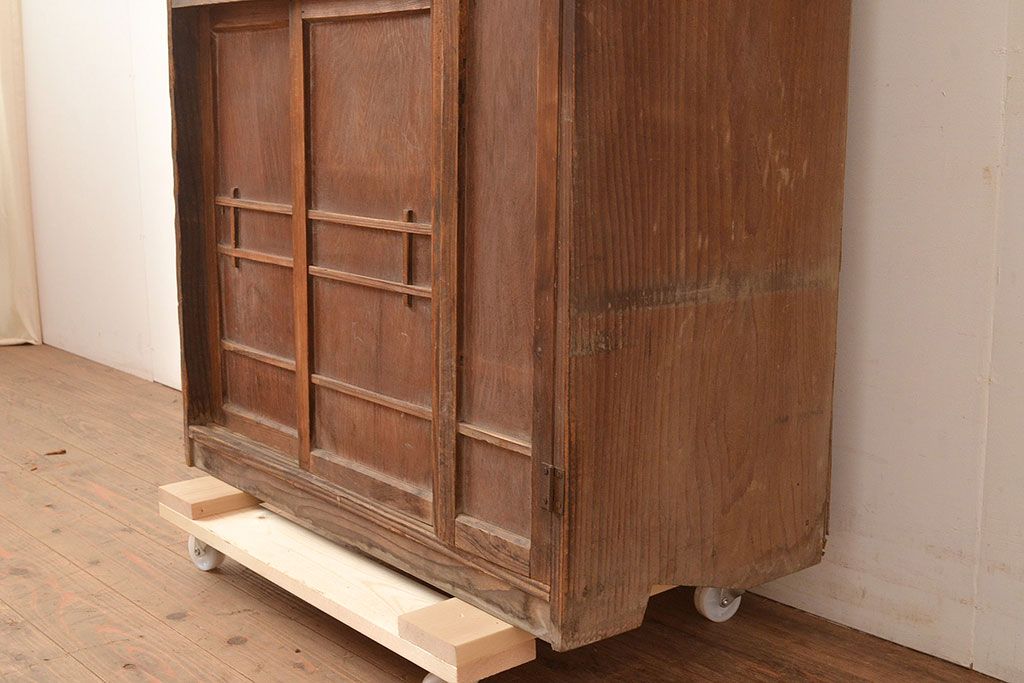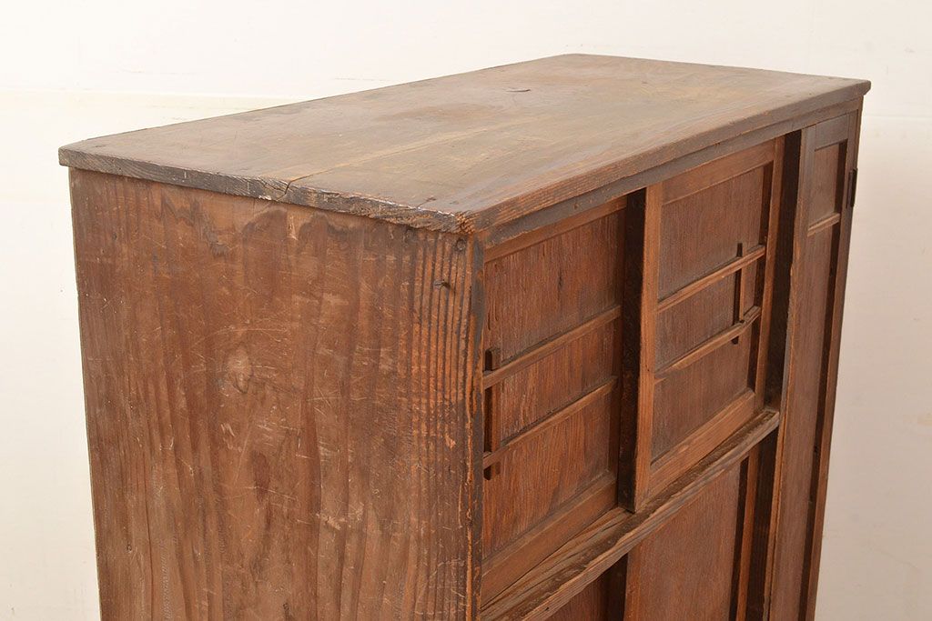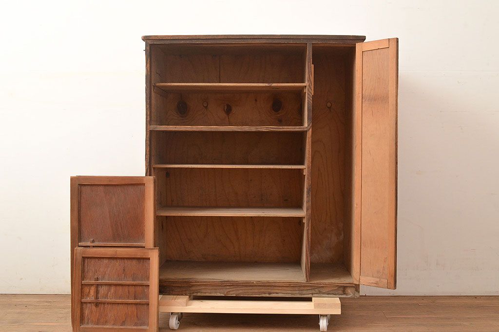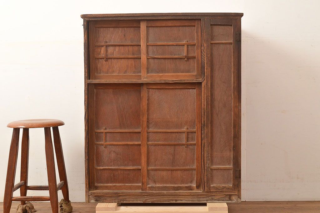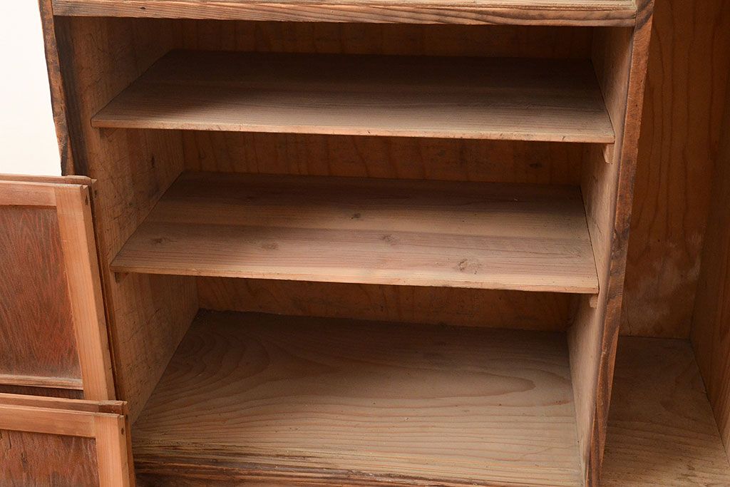 和製アンティーク 杉材合板 昔懐かしい雰囲気が魅力の昭和レトロな下駄箱(収納棚、キャビネット)(R-048151)