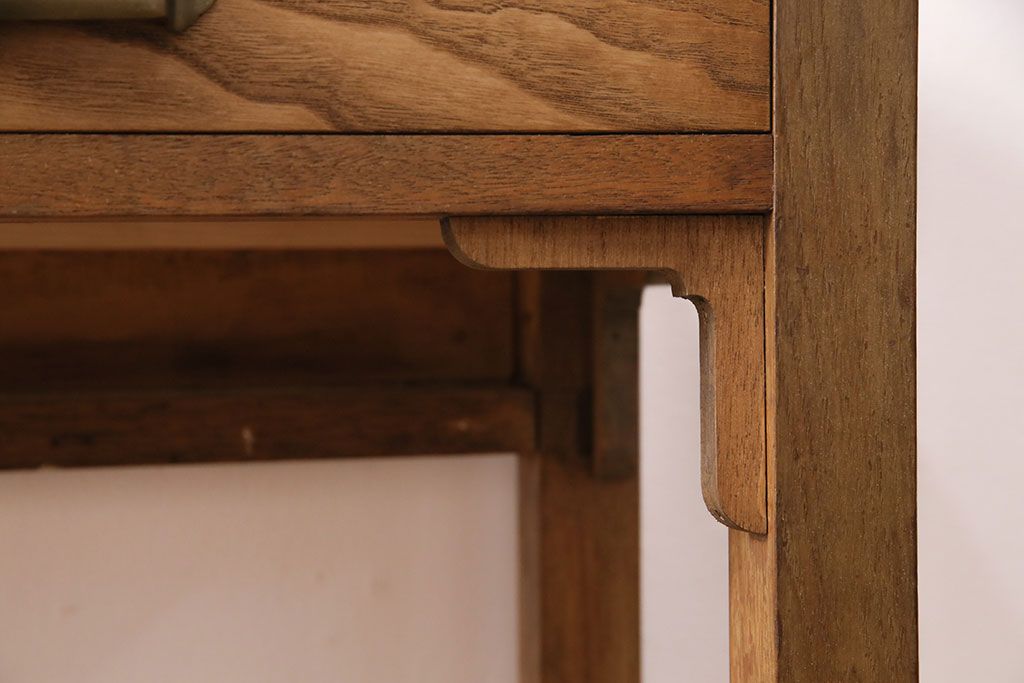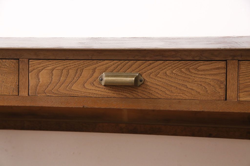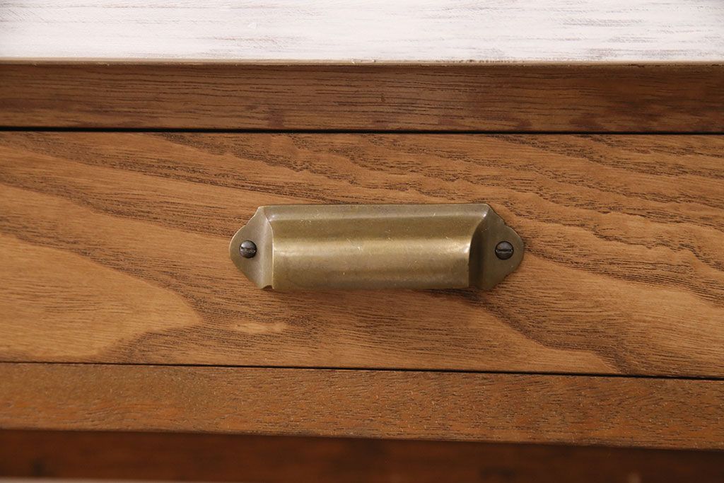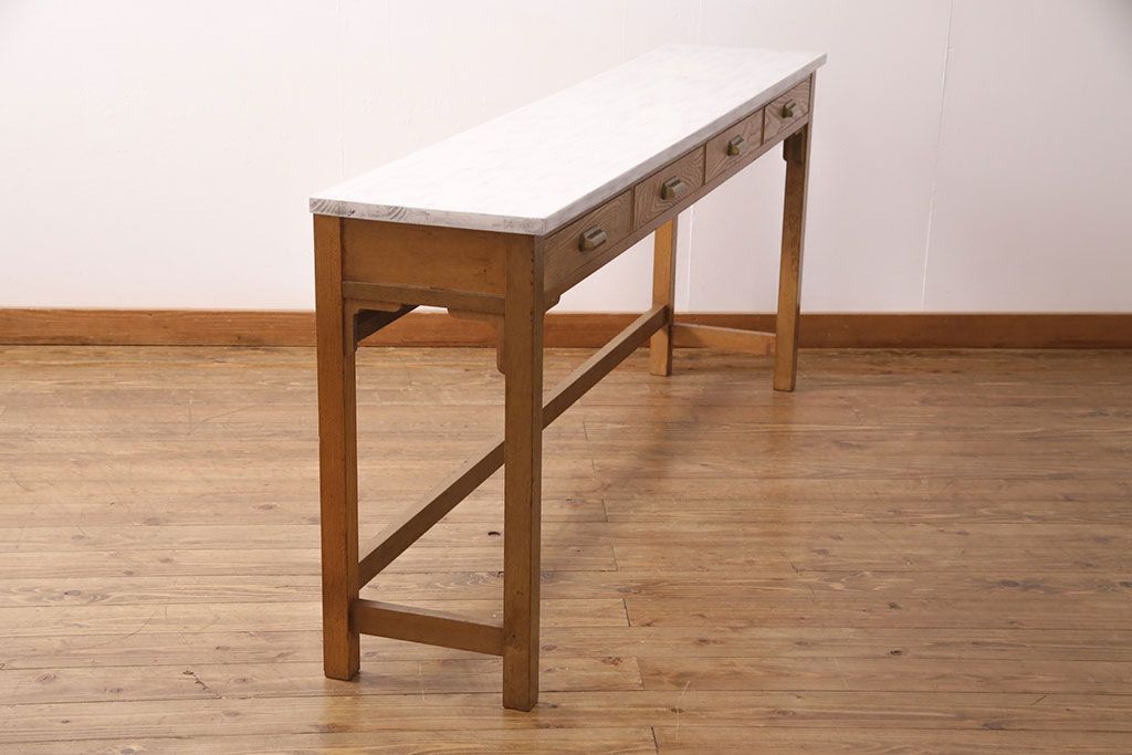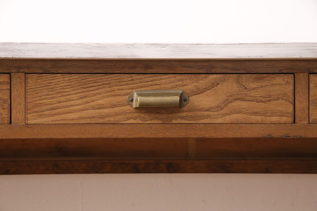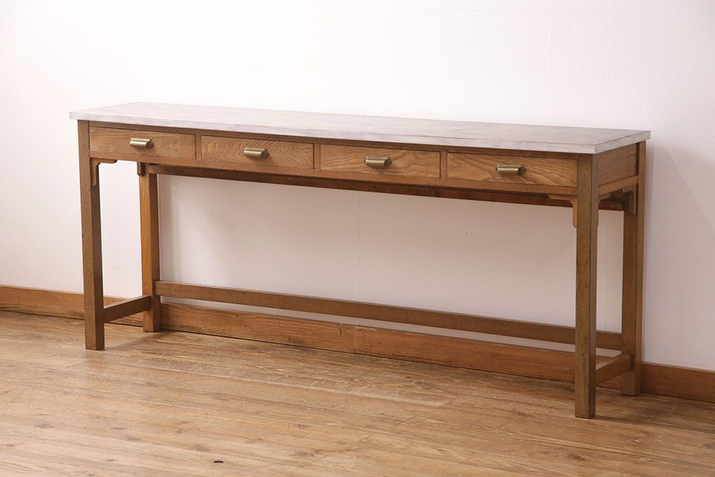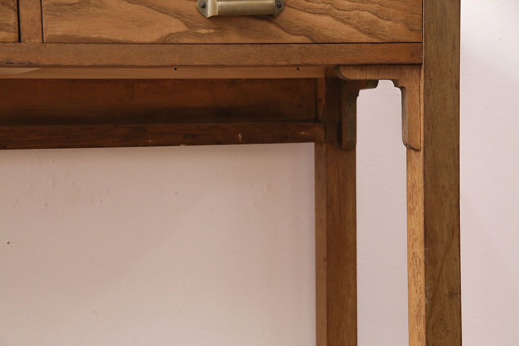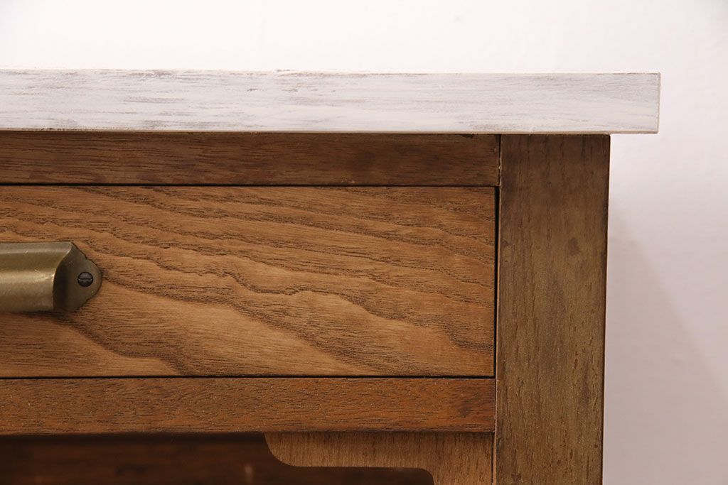 テーブル> コンソールテーブル > 和製アンティーク 天板ペイント・ヒノキ無垢材 ナチュラルで優しい雰囲気がお洒落!使い勝手よくリメイクした作業台(コンソールテーブル、カウンター)(R-049421)