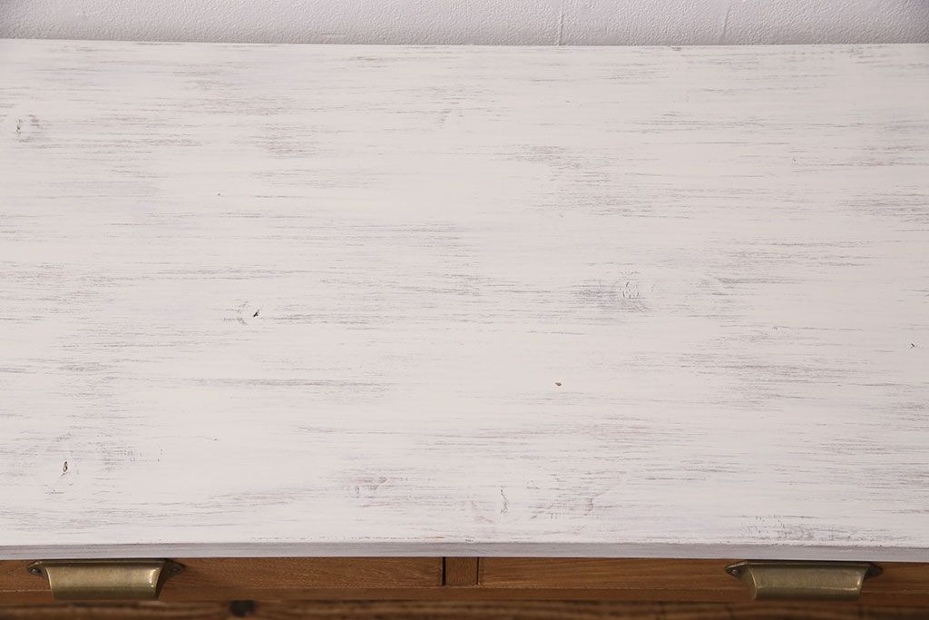 和製アンティーク 天板ペイント・ヒノキ無垢材 ナチュラルで優しい雰囲気がお洒落!使い勝手よくリメイクした作業台(コンソールテーブル、カウンター)(R-049421)