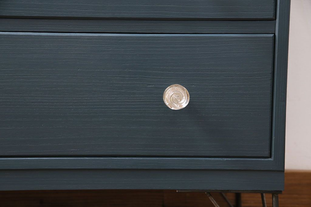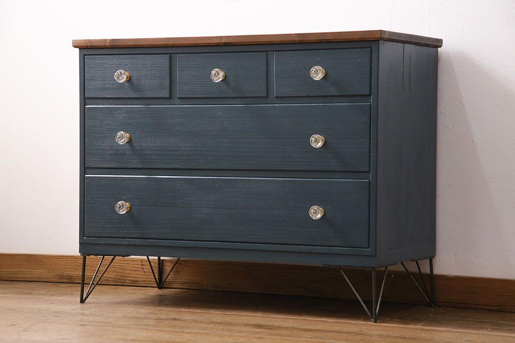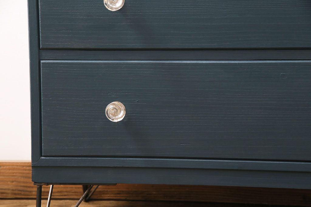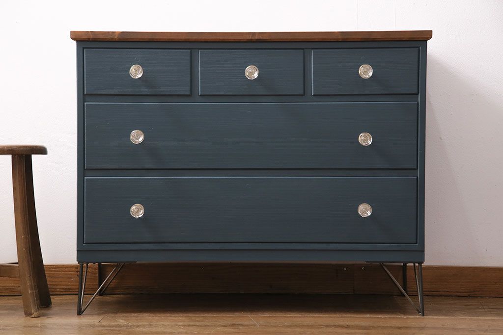 昭和中期の衣装箪笥をリペア&カスタム!天板、鉄脚を取り付け。ネイビーでペイント仕上げ。(リビングボード、チェスト、引き出し)