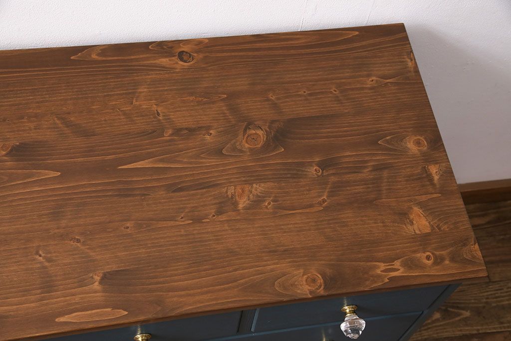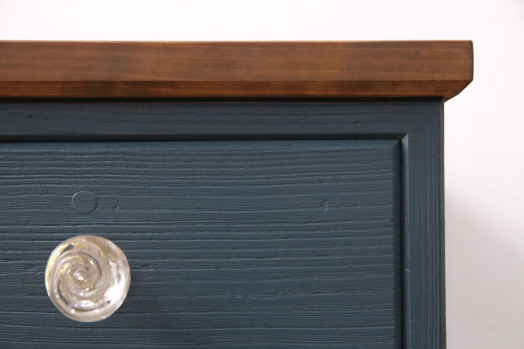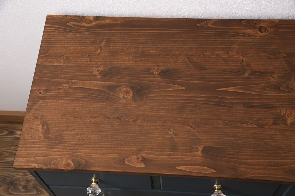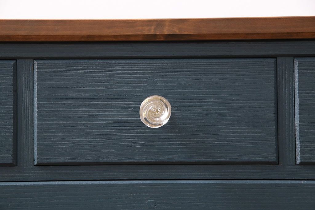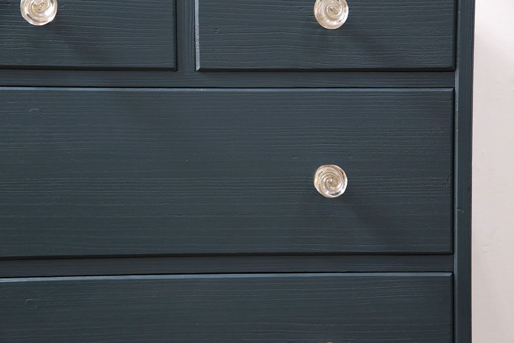 昭和中期の衣装箪笥をリペア&カスタム!天板、鉄脚を取り付け。ネイビーでペイント仕上げ。(リビングボード、チェスト、引き出し)
