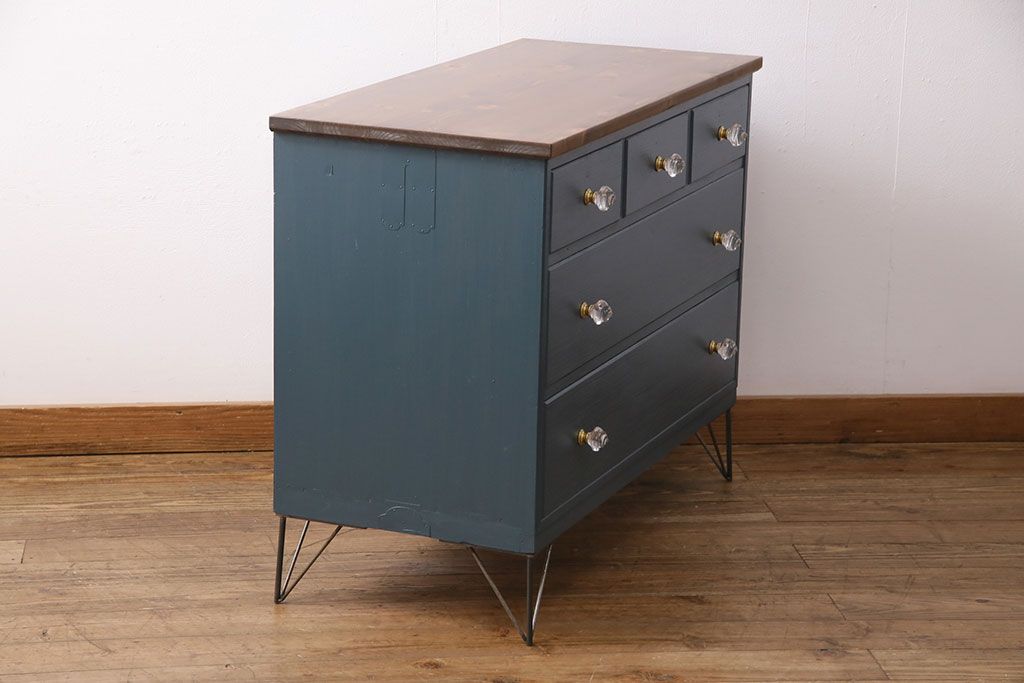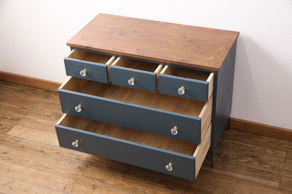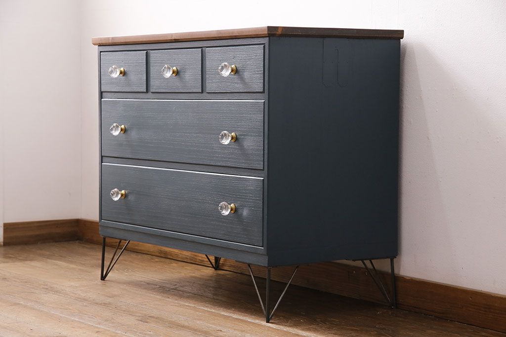 チェスト・引き出し > 昭和中期の衣装箪笥をリペア&カスタム!天板、鉄脚を取り付け。ネイビーでペイント仕上げ。(リビングボード、チェスト、引き出し)