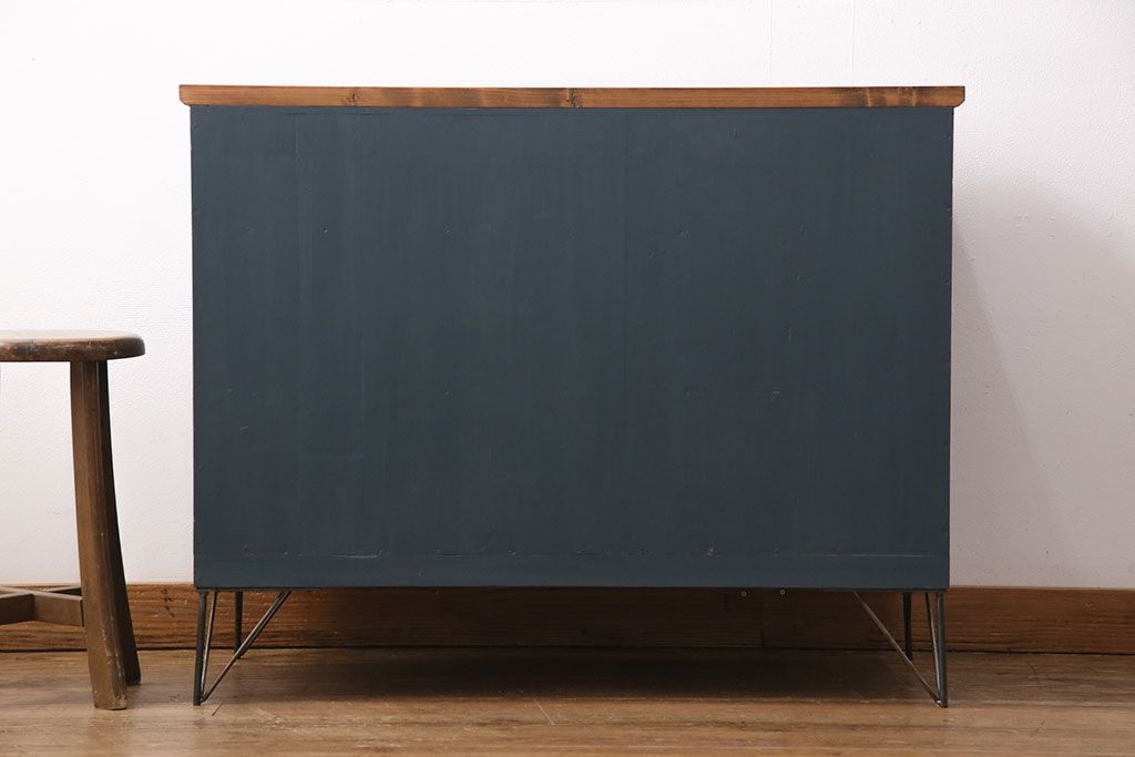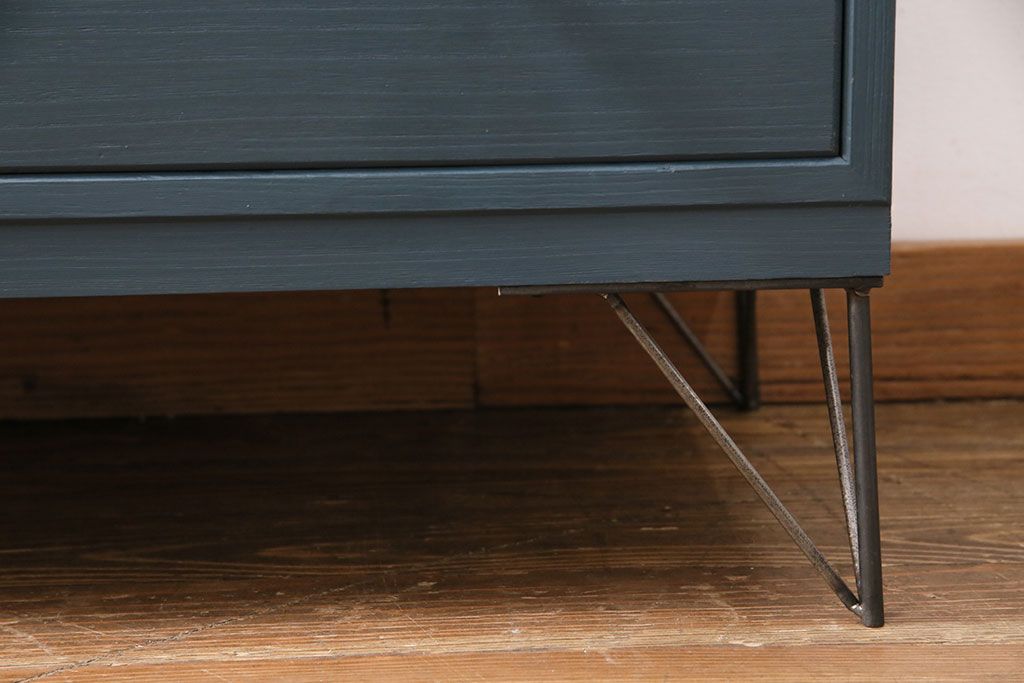 セミオーダー家具実績 > 昭和中期の衣装箪笥をリペア&カスタム!天板、鉄脚を取り付け。ネイビーでペイント仕上げ。(リビングボード、チェスト、引き出し)
