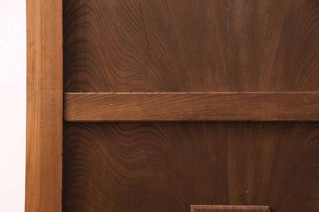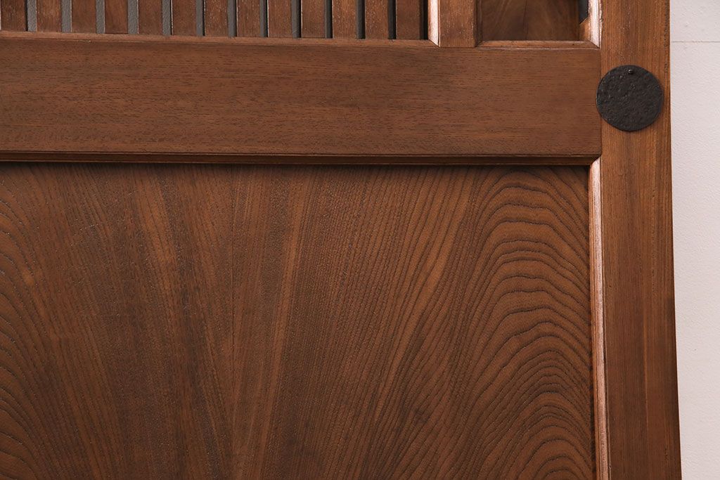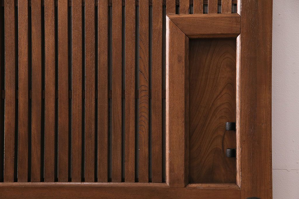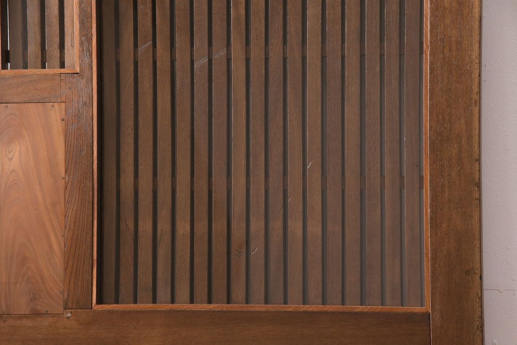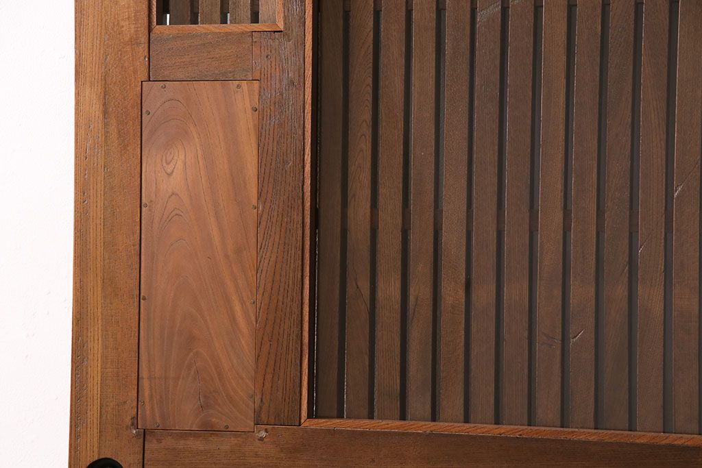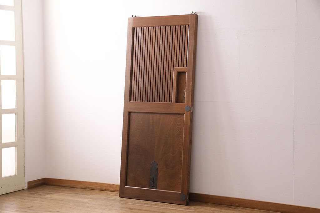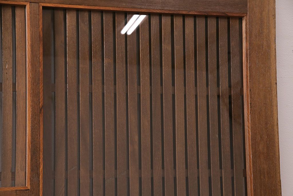 昭和初期の蔵戸をリペア&カスタム!設置場所に合わせてリサイズ。格子裏にクリアガラスを組み入れ。濃い茶色で着色し仕上げ。(玄関戸、建具)