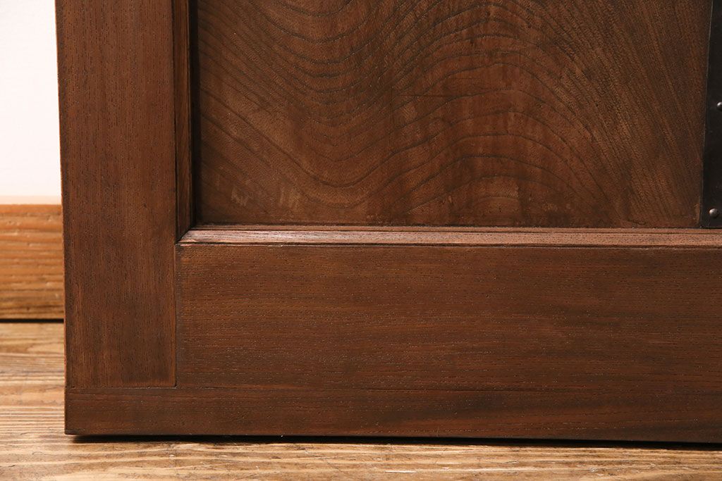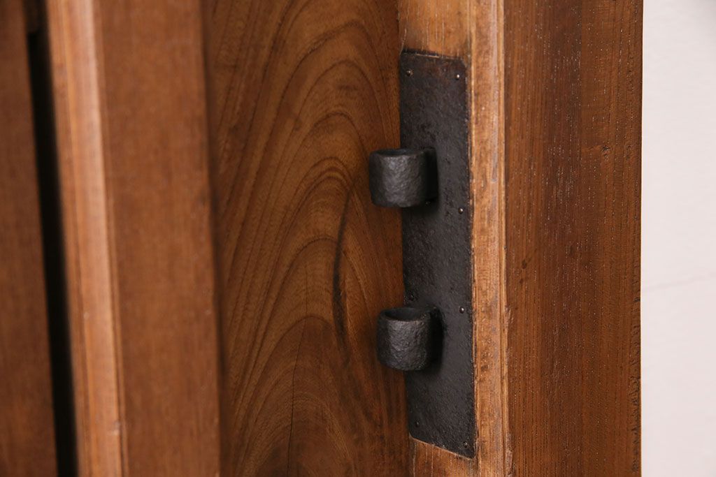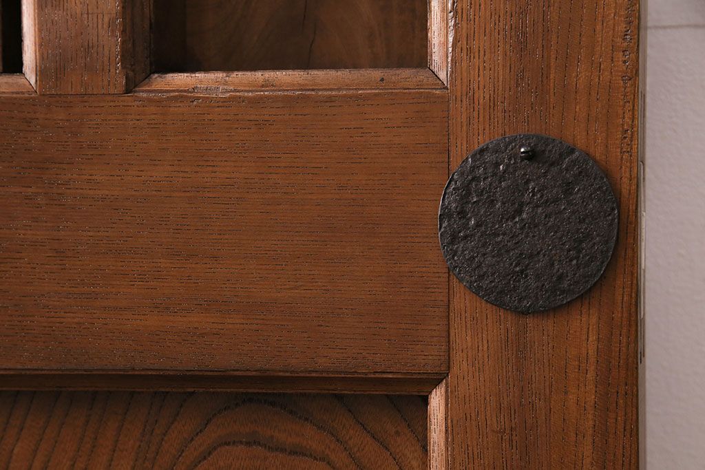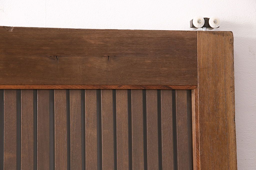 ドア・建具> 蔵戸 > 昭和初期の蔵戸をリペア&カスタム!設置場所に合わせてリサイズ。格子裏にクリアガラスを組み入れ。濃い茶色で着色し仕上げ。(玄関戸、建具)