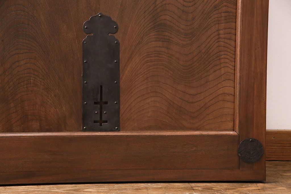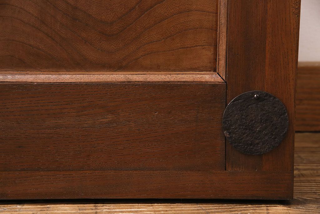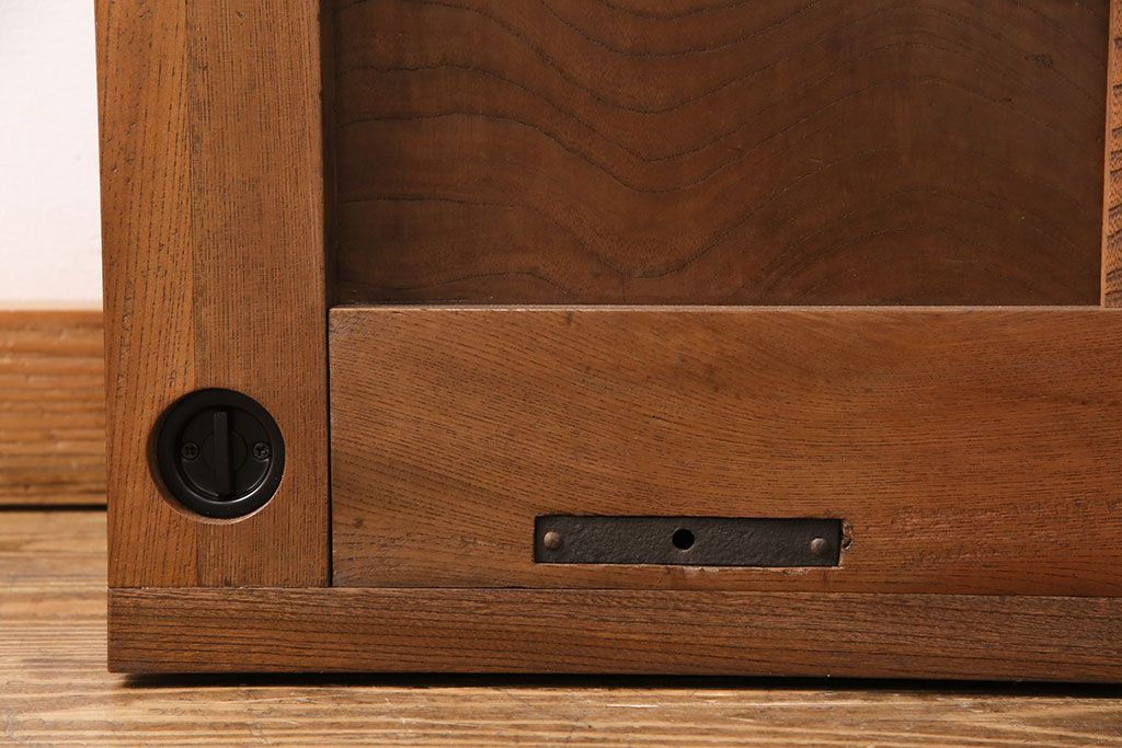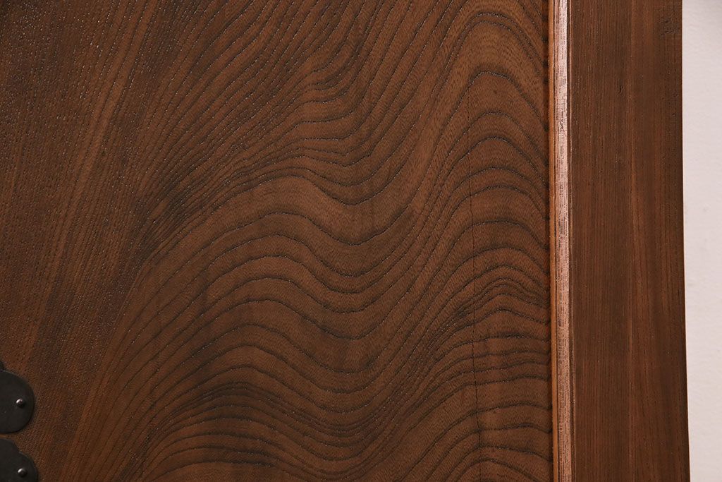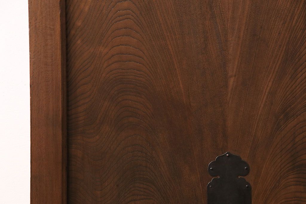 ドア・建具> 蔵戸 > 昭和初期の蔵戸をリペア&カスタム!設置場所に合わせてリサイズ。格子裏にクリアガラスを組み入れ。濃い茶色で着色し仕上げ。(玄関戸、建具)