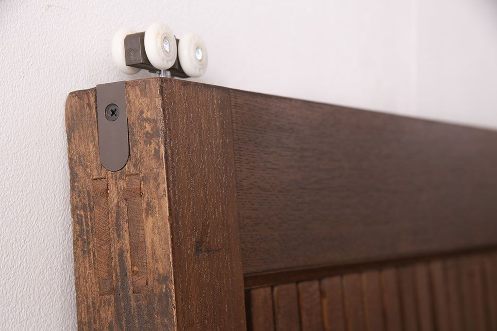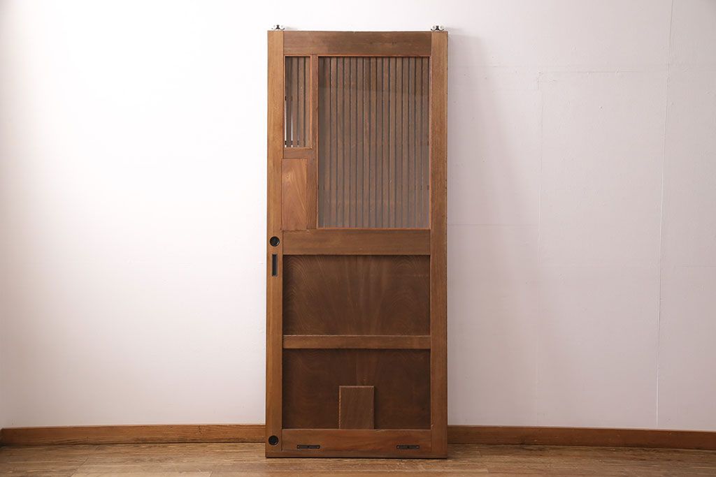 ドア・建具> 引き戸 > 昭和初期の蔵戸をリペア&カスタム!設置場所に合わせてリサイズ。格子裏にクリアガラスを組み入れ。濃い茶色で着色し仕上げ。(玄関戸、建具)