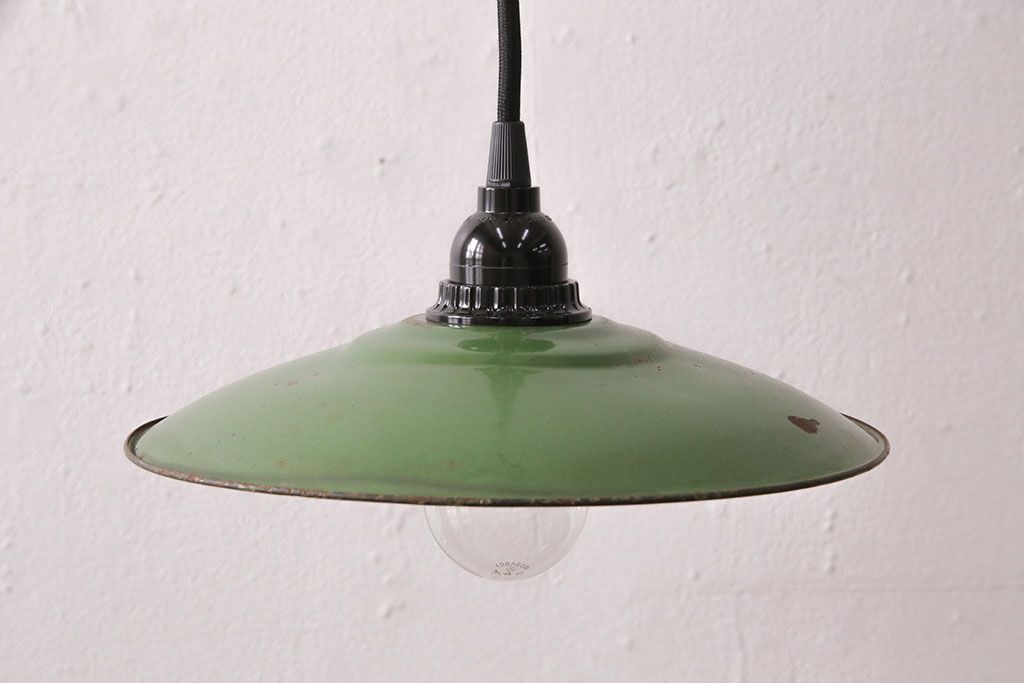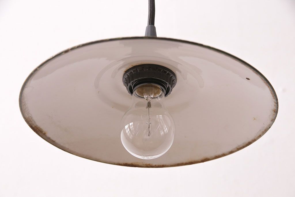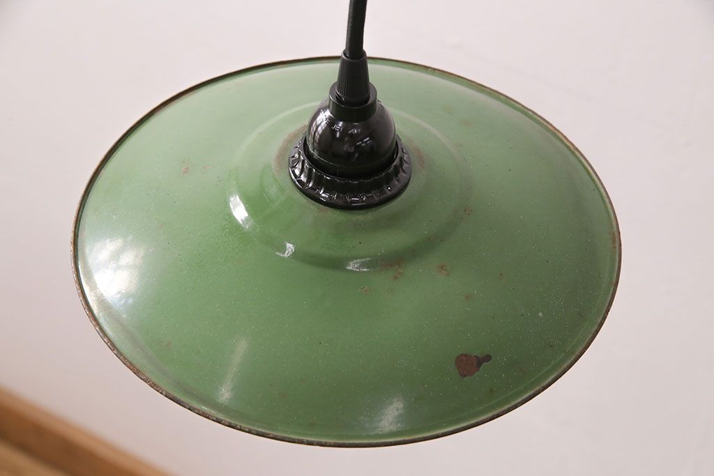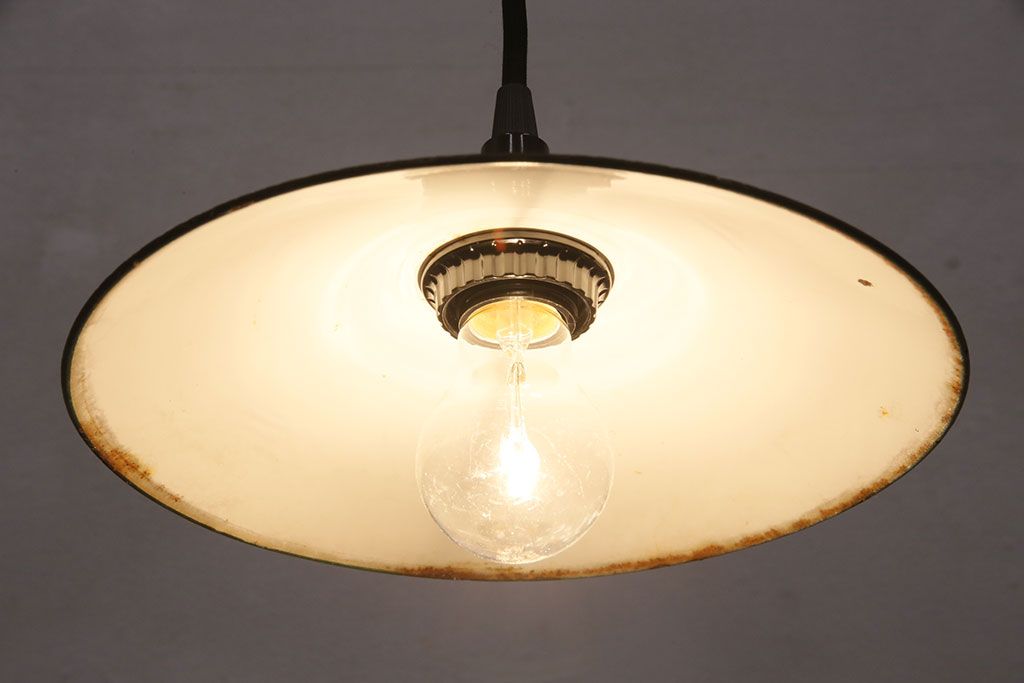 アンティーク照明 古き良き時代の味が魅力的なホーロー製天井照明(吊り下げ照明、ペンダントライト、琺瑯)(R-049430)