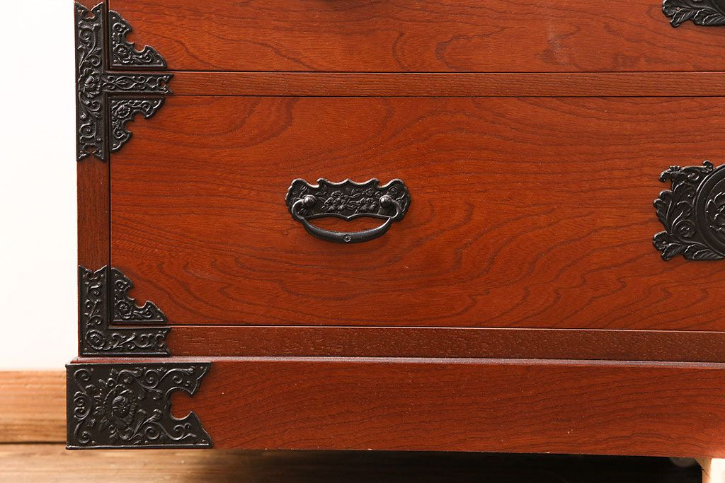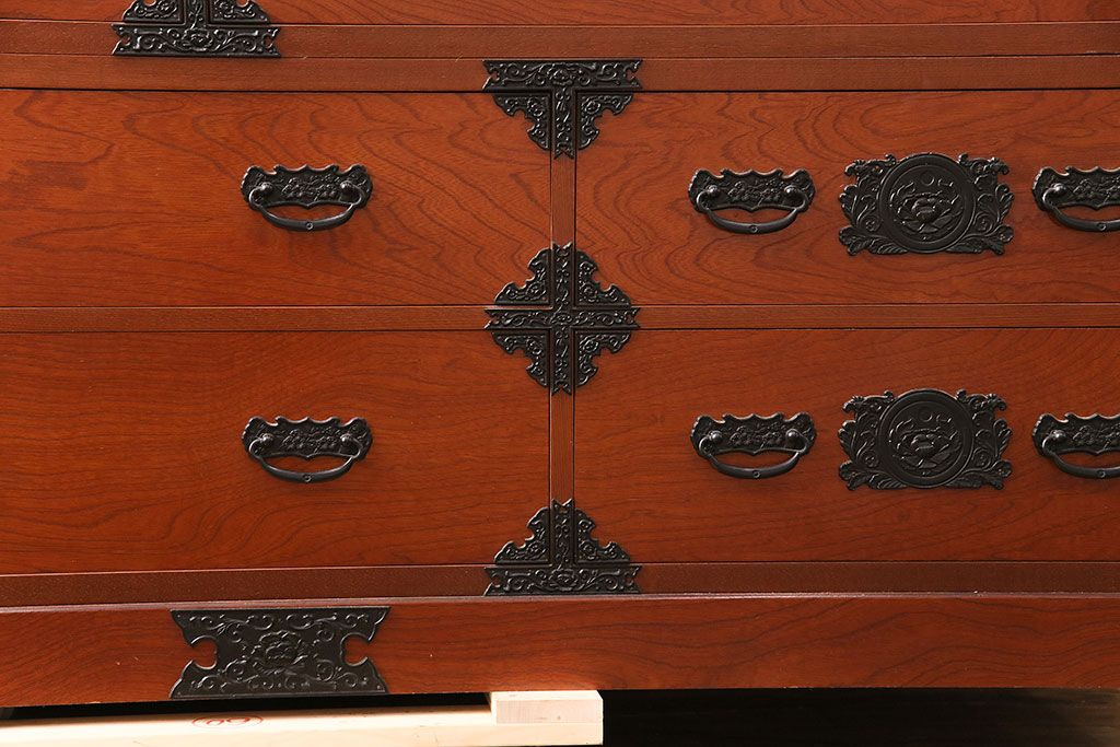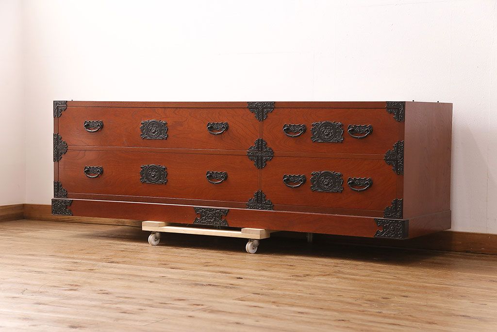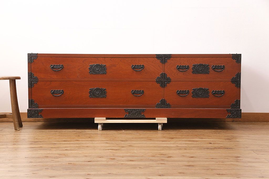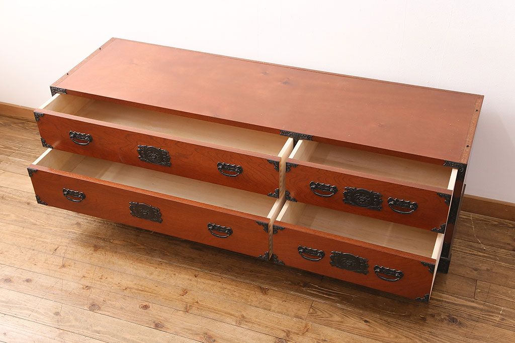 民芸家具 > 和製ビンテージ 民芸家具 ディスプレイ棚としてもおすすめ!赤みのある木肌が魅力の整理箪笥(収納タンス、ローボード、引き出し、チェスト、ヴィンテージ)(R-049033)