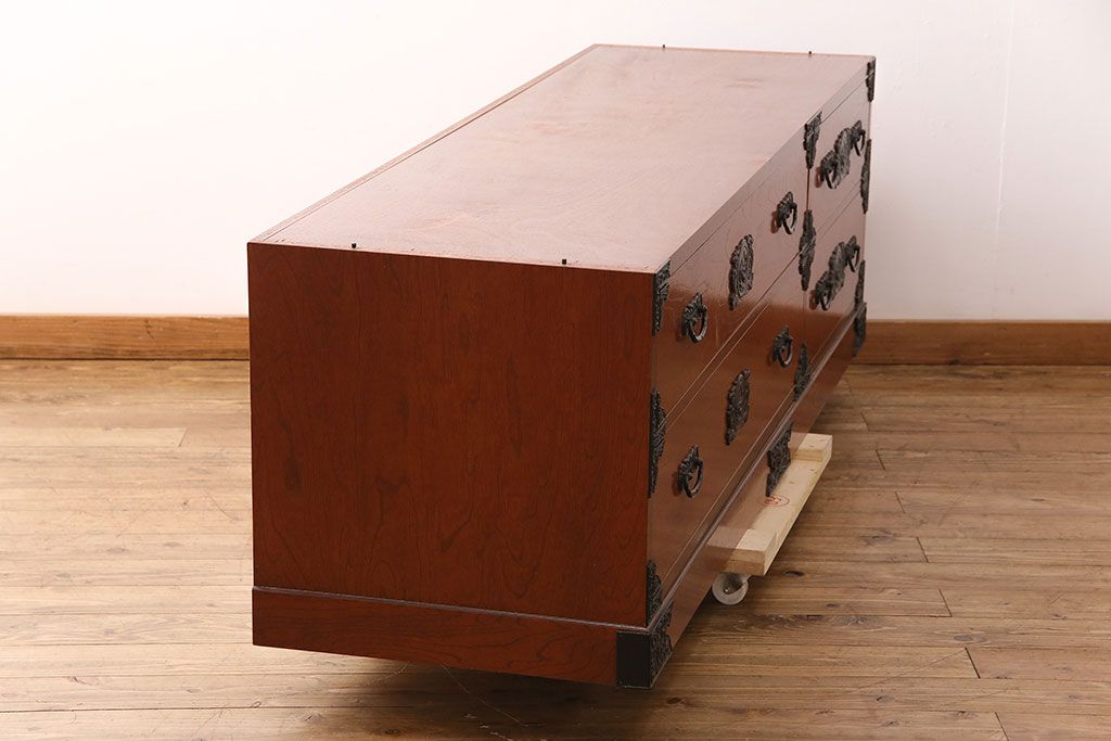 キャビネット・戸棚> テレビ台・ローボード > 和製ビンテージ 民芸家具 ディスプレイ棚としてもおすすめ!赤みのある木肌が魅力の整理箪笥(収納タンス、ローボード、引き出し、チェスト、ヴィンテージ)(R-049033)
