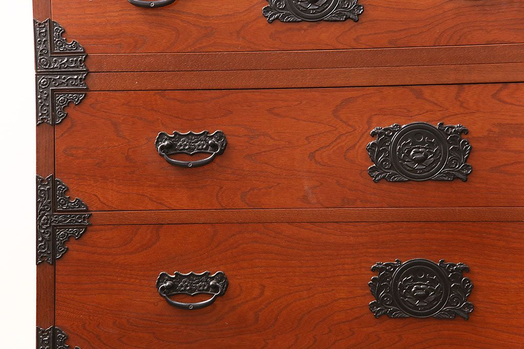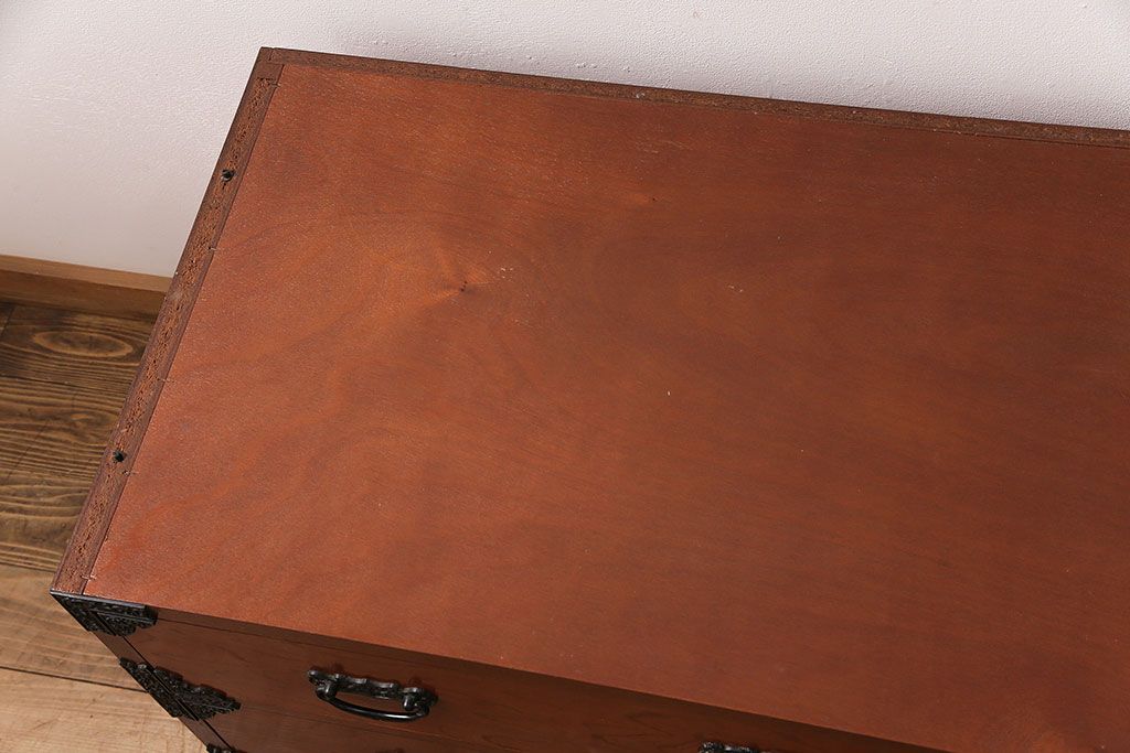 和箪笥 > 和製ビンテージ 民芸家具 ディスプレイ棚としてもおすすめ!赤みのある木肌が魅力の整理箪笥(収納タンス、ローボード、引き出し、チェスト、ヴィンテージ)(R-049033)