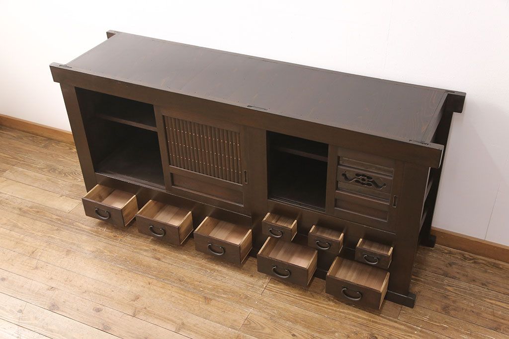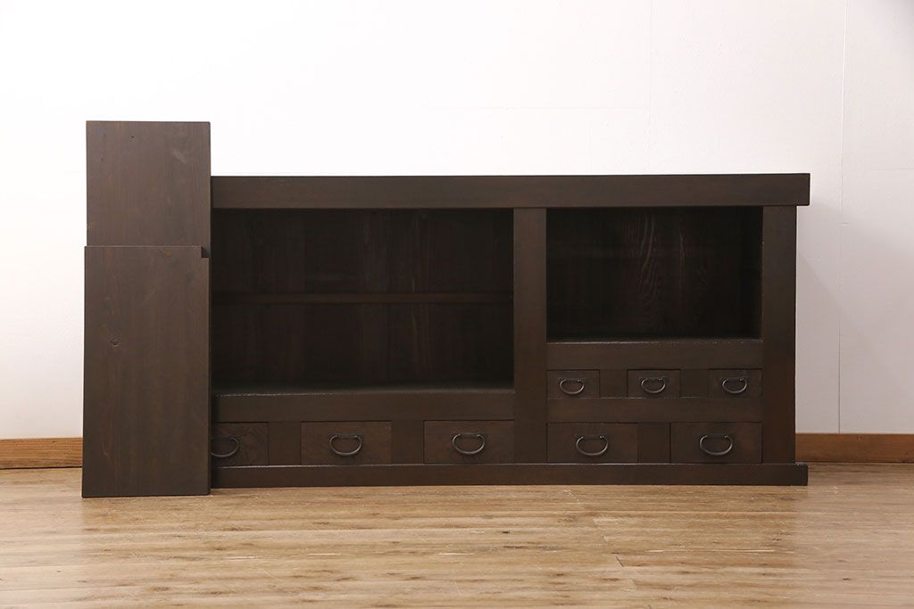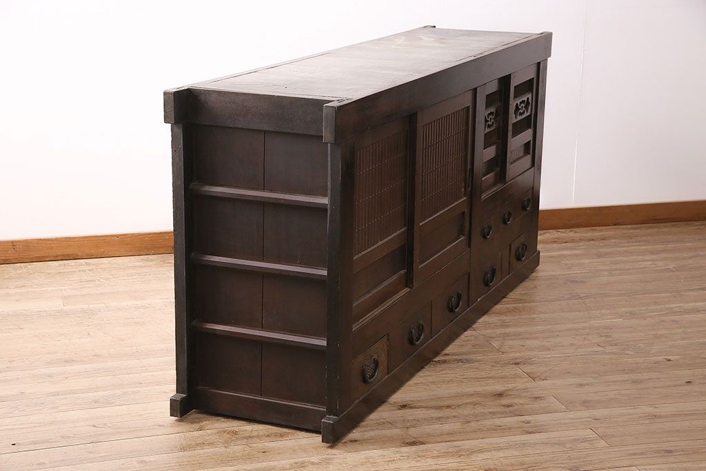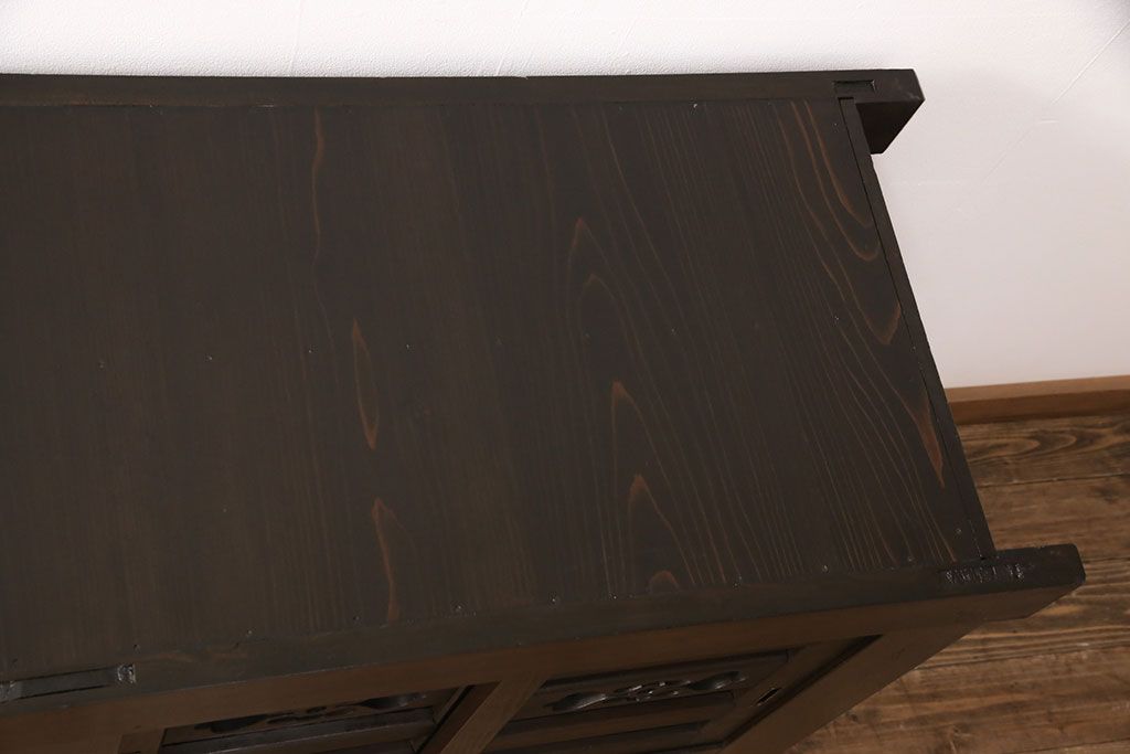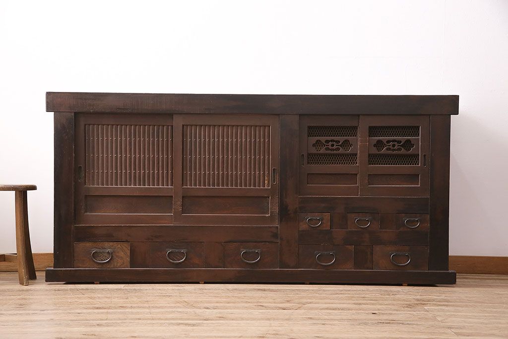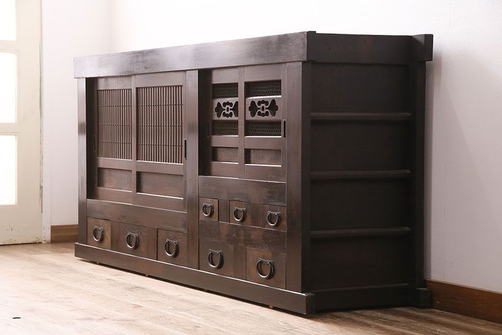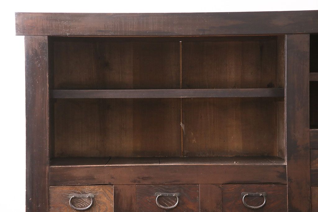 和製アンティーク ヒノキ材 渋い和の雰囲気を醸し出す、明治大正期の水屋箪笥サイドボード(食器棚、キャビネット、収納棚)(R-048813)
