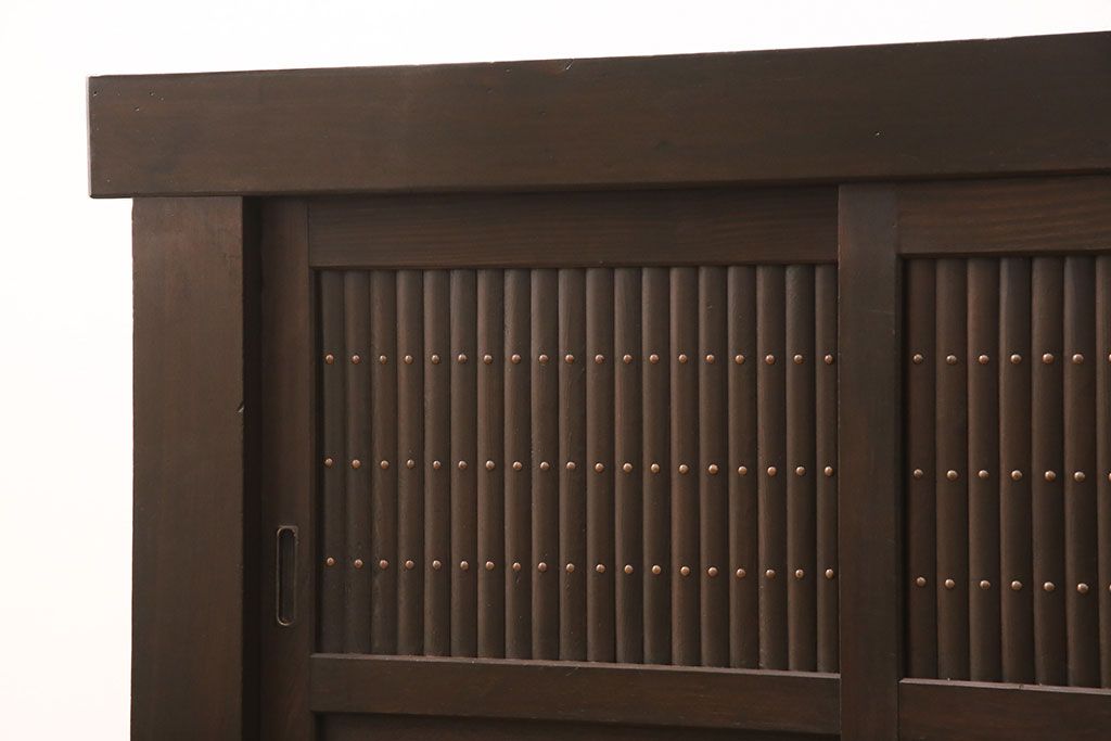 ラフジュ工房> 和箪笥> 水屋箪笥 > 和製アンティーク ヒノキ材 渋い和の雰囲気を醸し出す、明治大正期の水屋箪笥サイドボード(食器棚、キャビネット、収納棚)(R-048813)