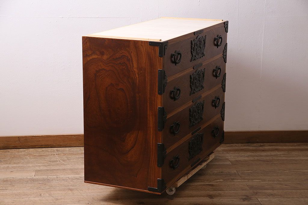 和製ヴィンテージ 岩谷堂箪笥 天板と脚を付けてリメイク!迫力ある杢目が魅力のチェスト(箪笥、引き出し、和タンス、サイドボード)(R-047332)です。