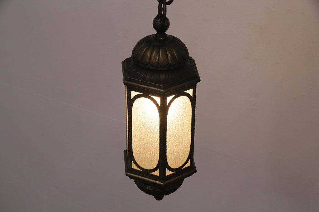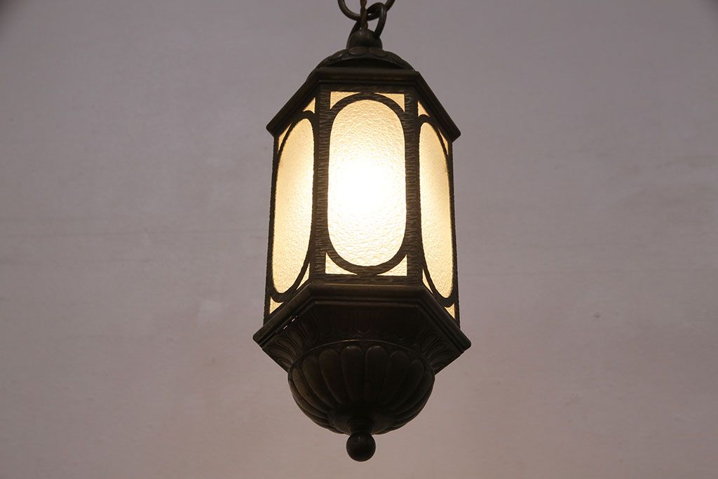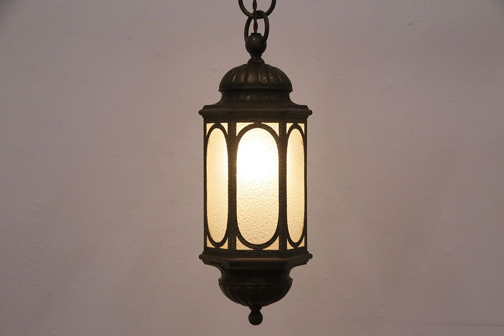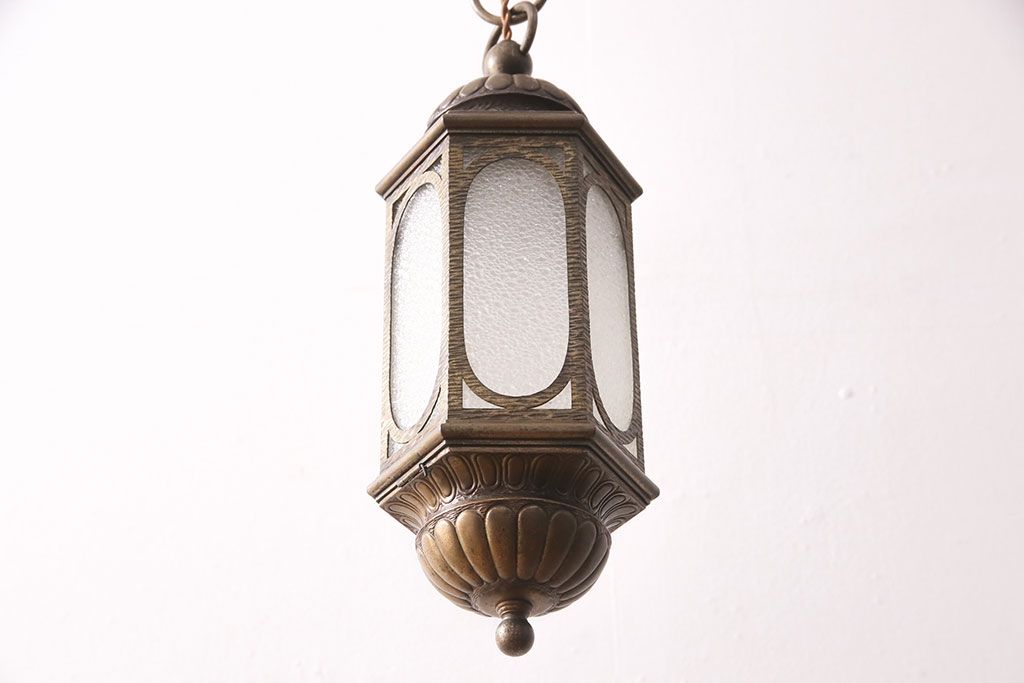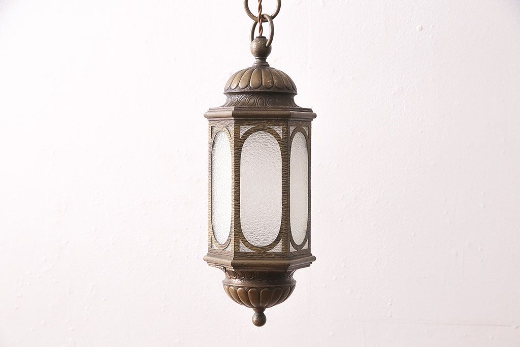 ビンテージ照明 大正昭和初期 ダイヤガラス ランタンのようなお洒落なムードを演出する天井照明(吊り下げ照明、ペンダントライト)(R-049429)