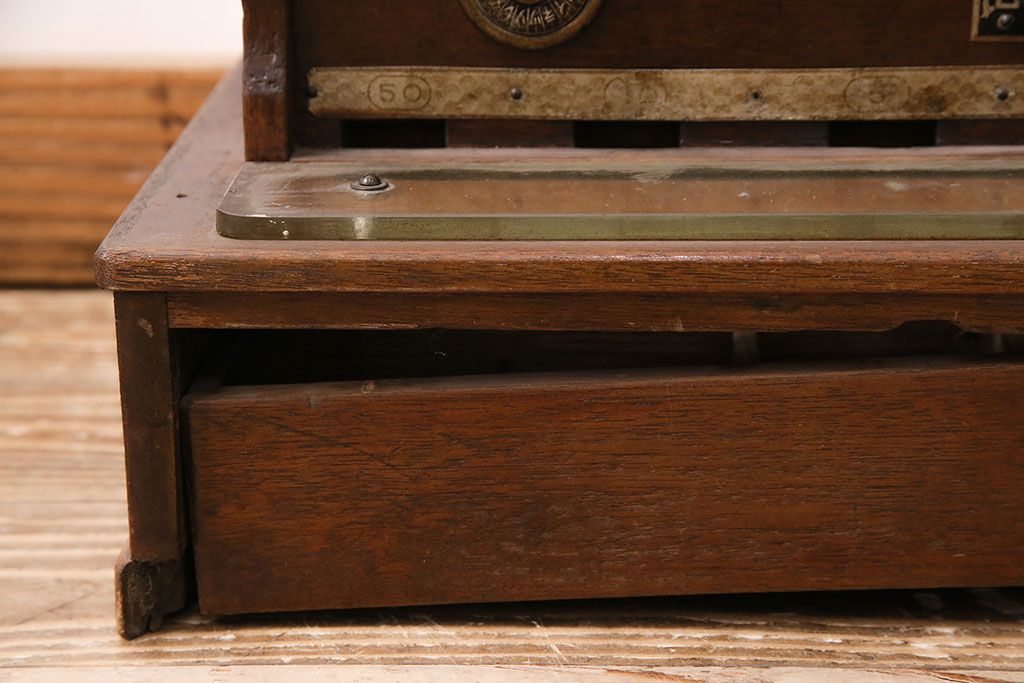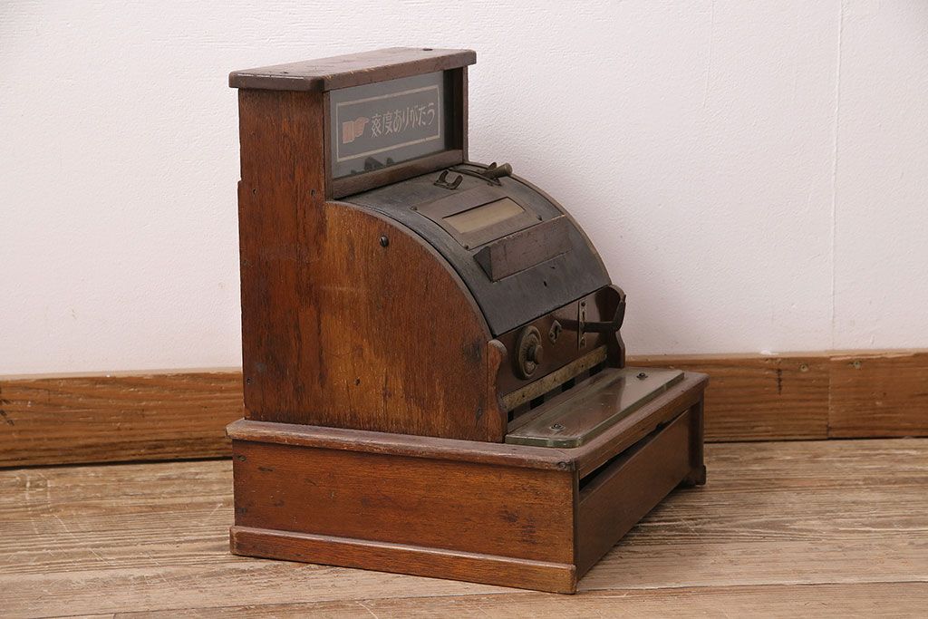 ジャンク品 コレクションに!昭和の懐かしい雰囲気が味わえる木製レジスター(ディスプレイ)(R-048389)