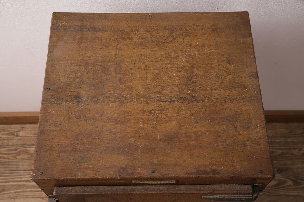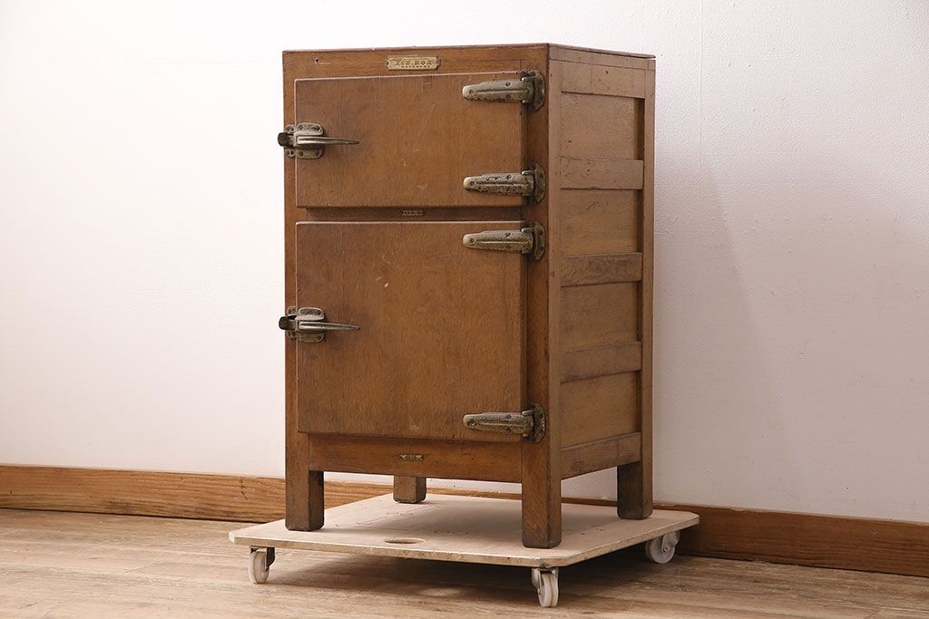 昭和レトロ 雰囲気作りにぴったり!ノスタルジックなナラ材製冷蔵庫(木製冷蔵庫、ディスプレイ、収納棚、戸棚)(R-048304)