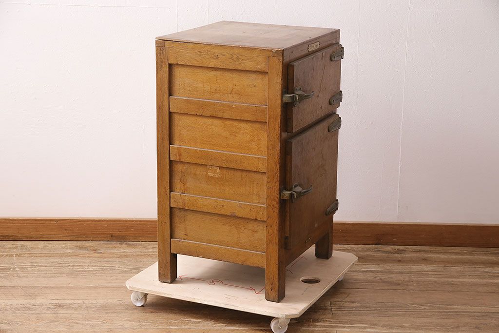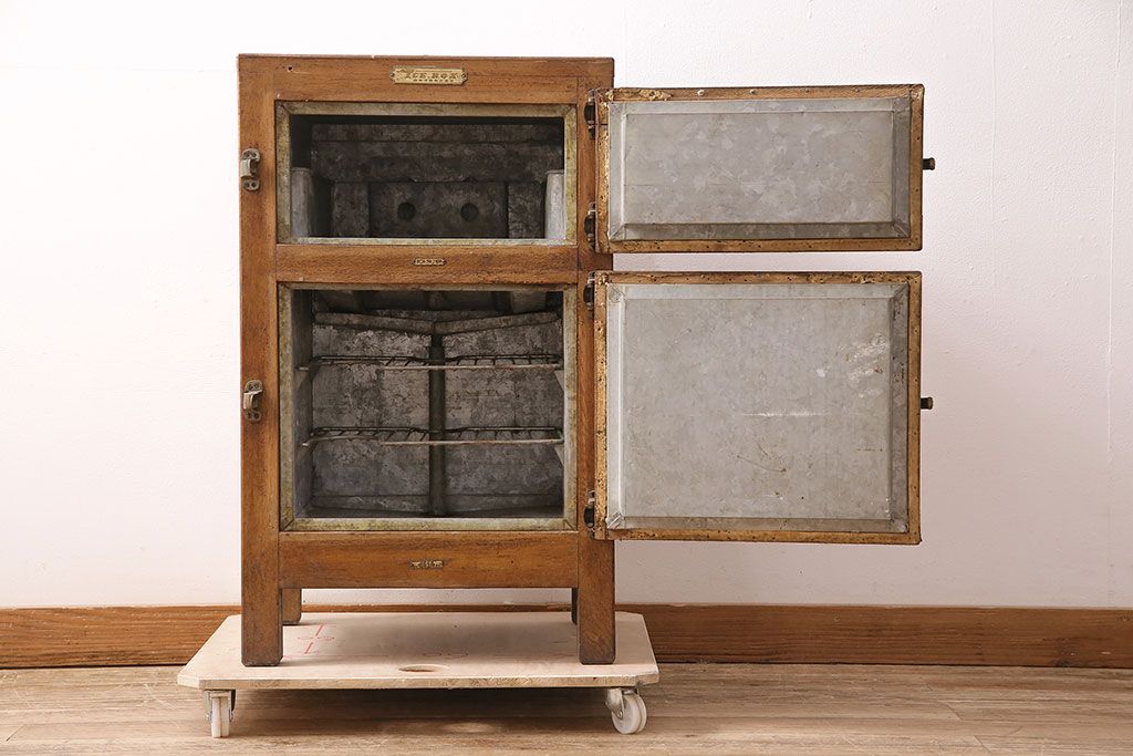 骨董・美術品 > 昭和レトロ 雰囲気作りにぴったり!ノスタルジックなナラ材製冷蔵庫(木製冷蔵庫、ディスプレイ、収納棚、戸棚)(R-048304)