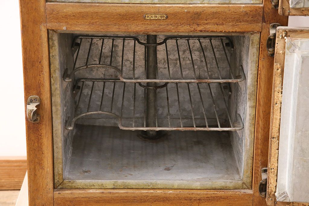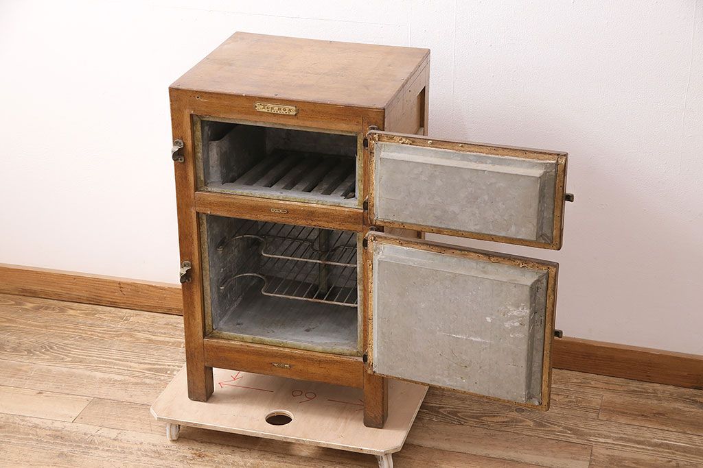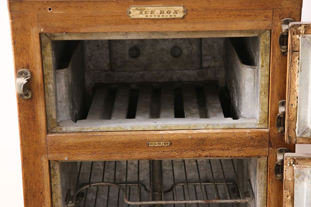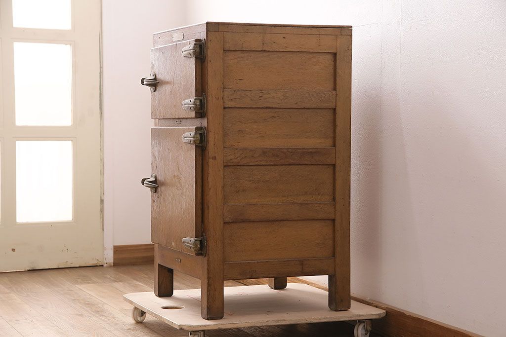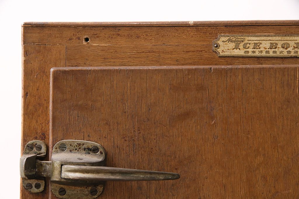 古家具 > 昭和レトロ 雰囲気作りにぴったり!ノスタルジックなナラ材製冷蔵庫(木製冷蔵庫、ディスプレイ、収納棚、戸棚)(R-048304)
