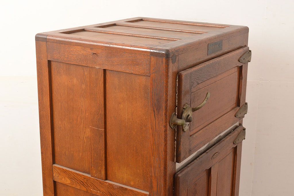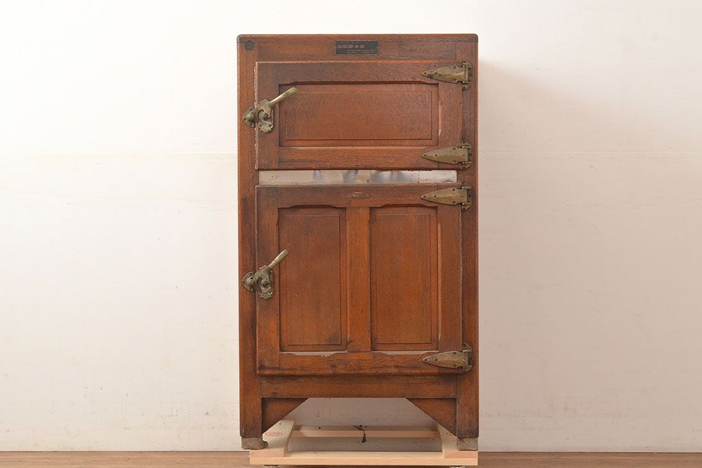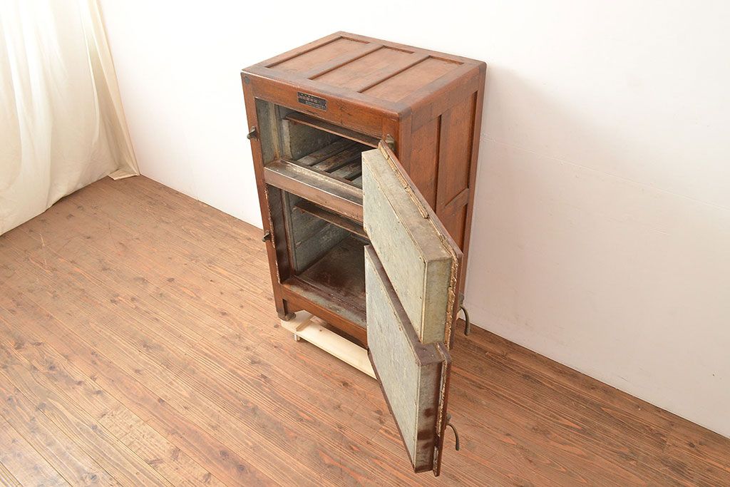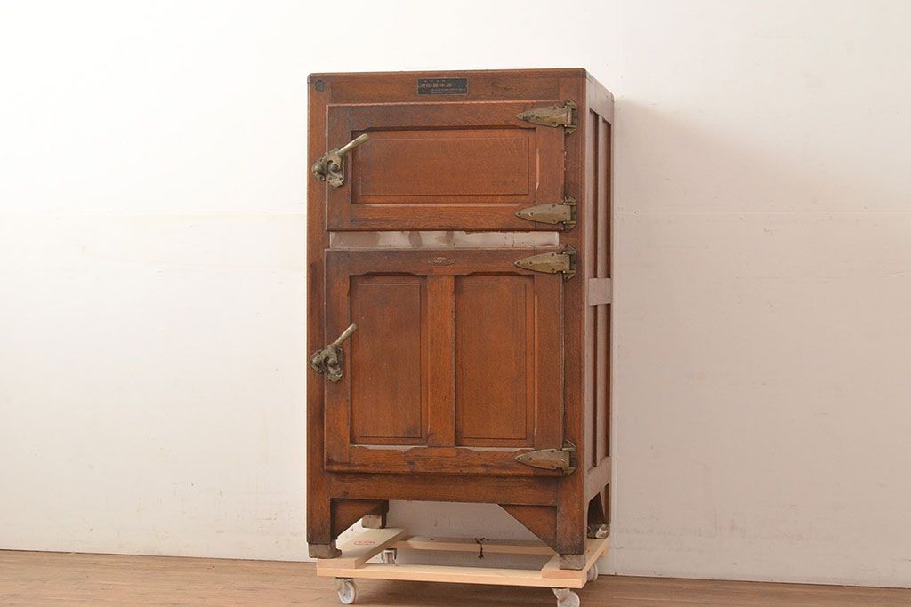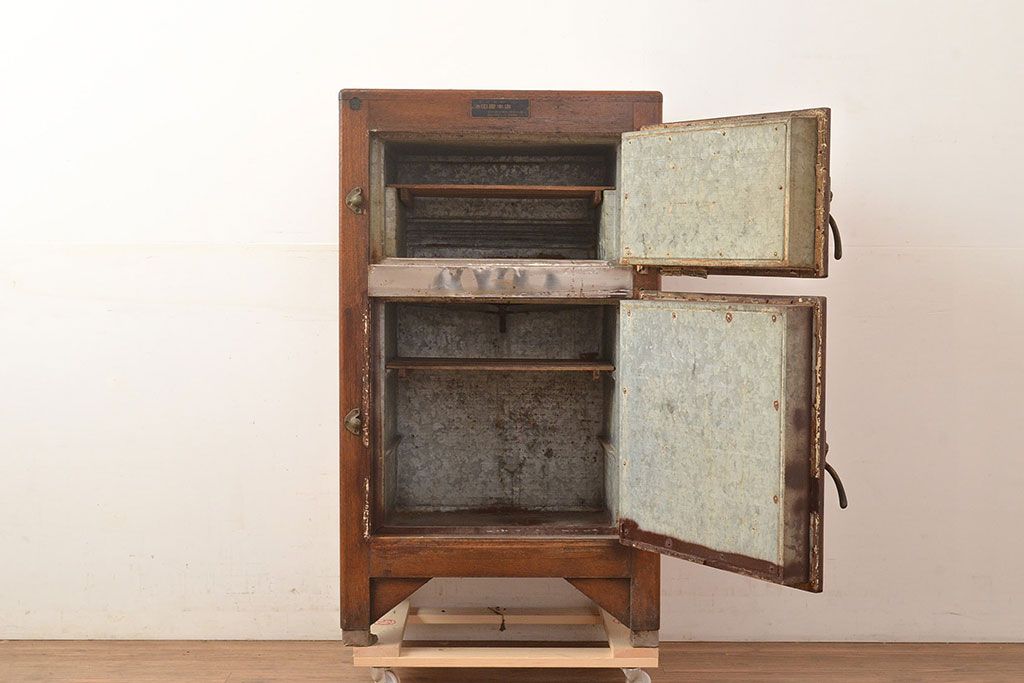 骨董・美術品 > 昭和レトロ 大振り 懐かしい雰囲気が魅力の栓材製冷蔵庫(木製冷蔵庫、ディスプレイ、収納棚、戸棚)(R-048321)