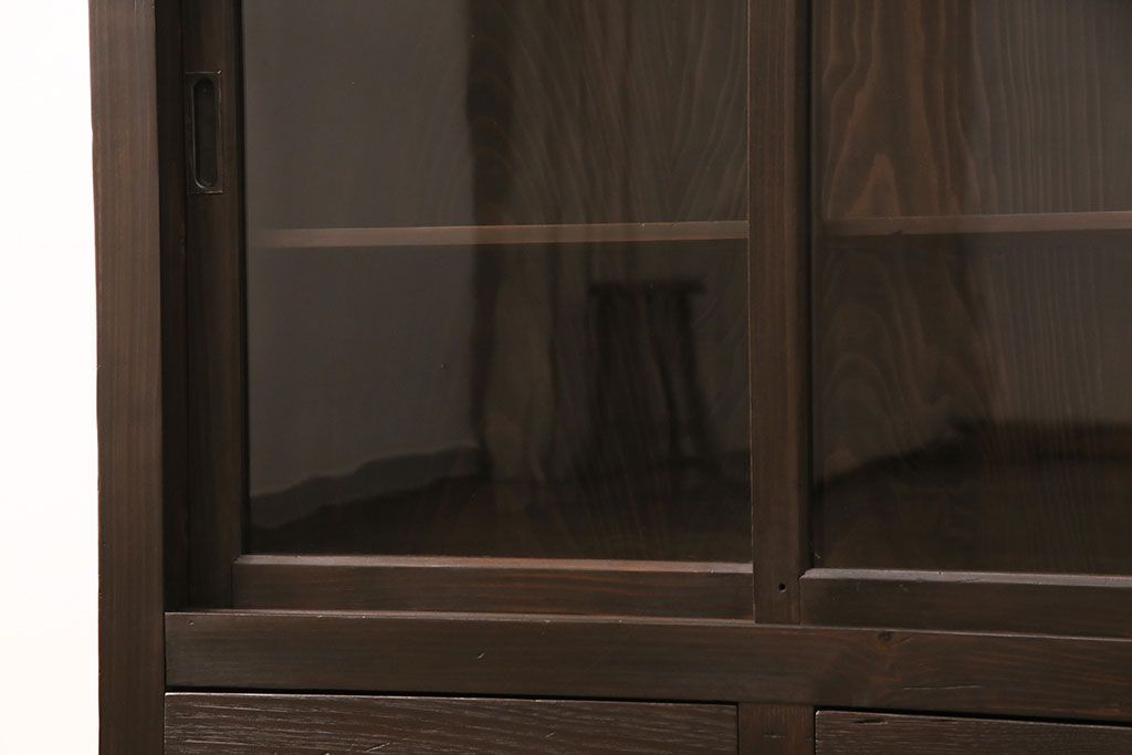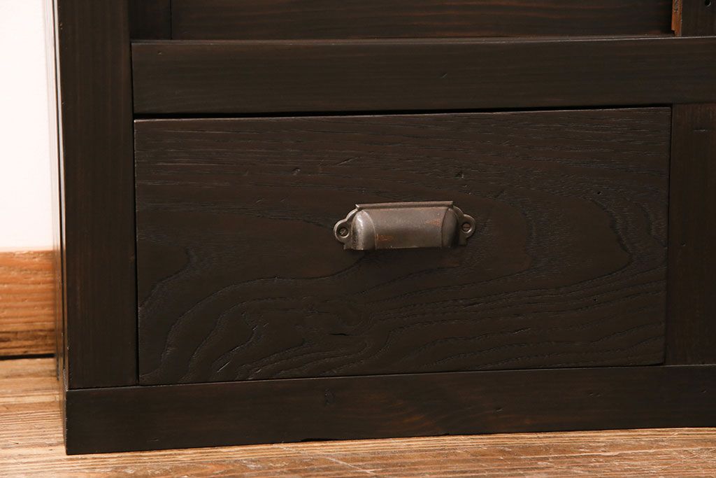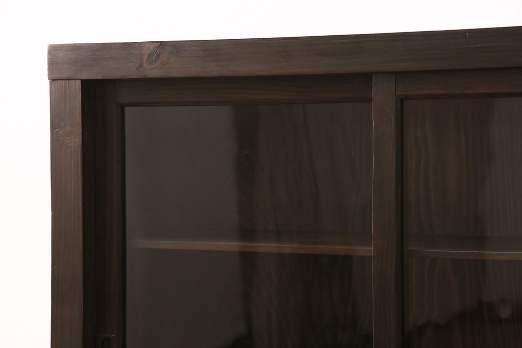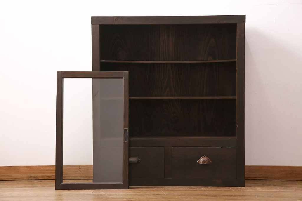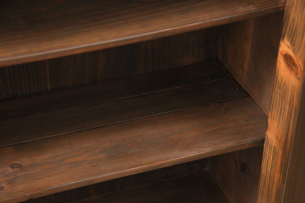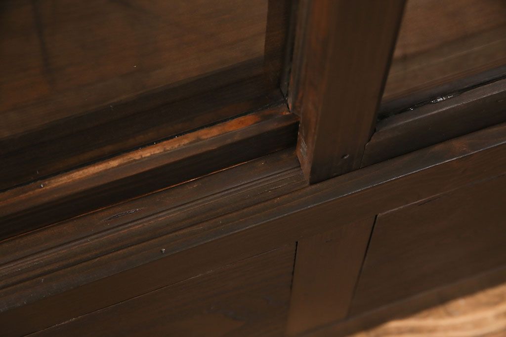 アンティークの収納棚をリペア&カスタム!可動部の調整を行い、傷んだ木部の交換。濃い茶色で着色し仕上げ。(戸棚、キャビネット、食器棚、サイドボード)