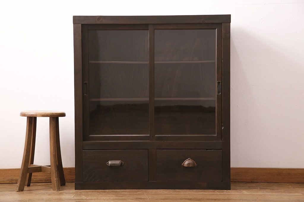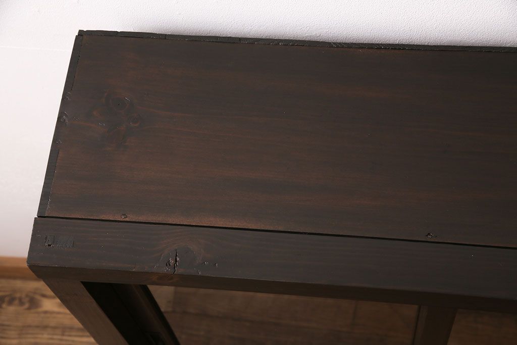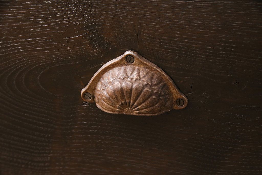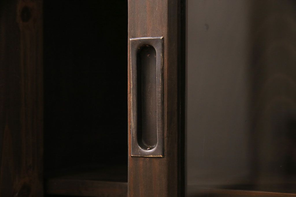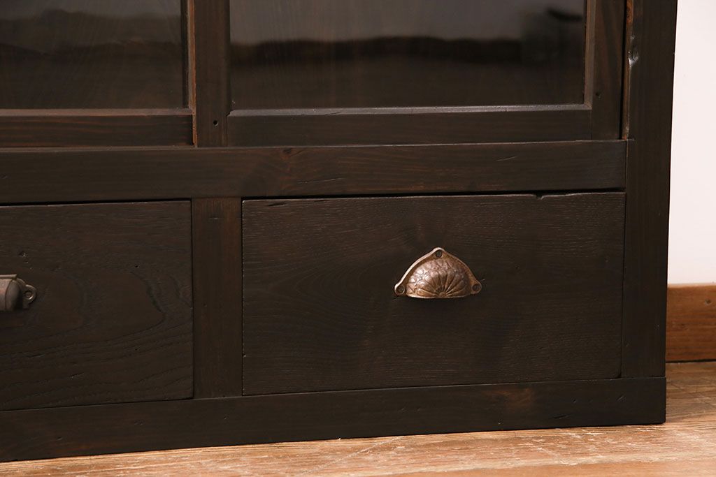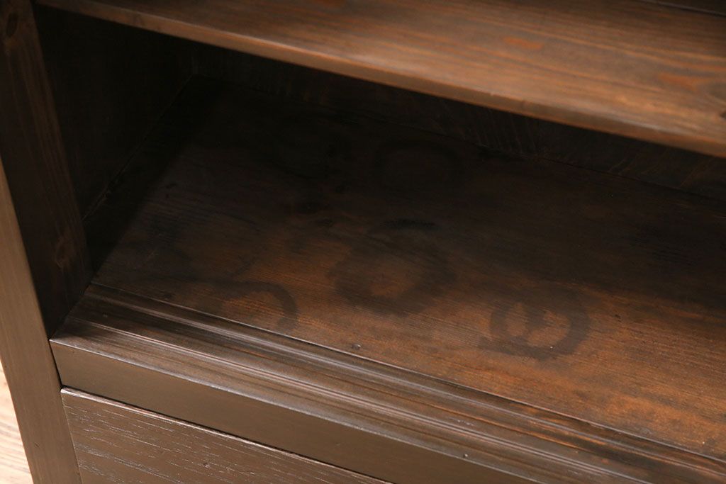 アンティークの収納棚をリペア&カスタム!可動部の調整を行い、傷んだ木部の交換。濃い茶色で着色し仕上げ。(戸棚、キャビネット、食器棚、サイドボード)
