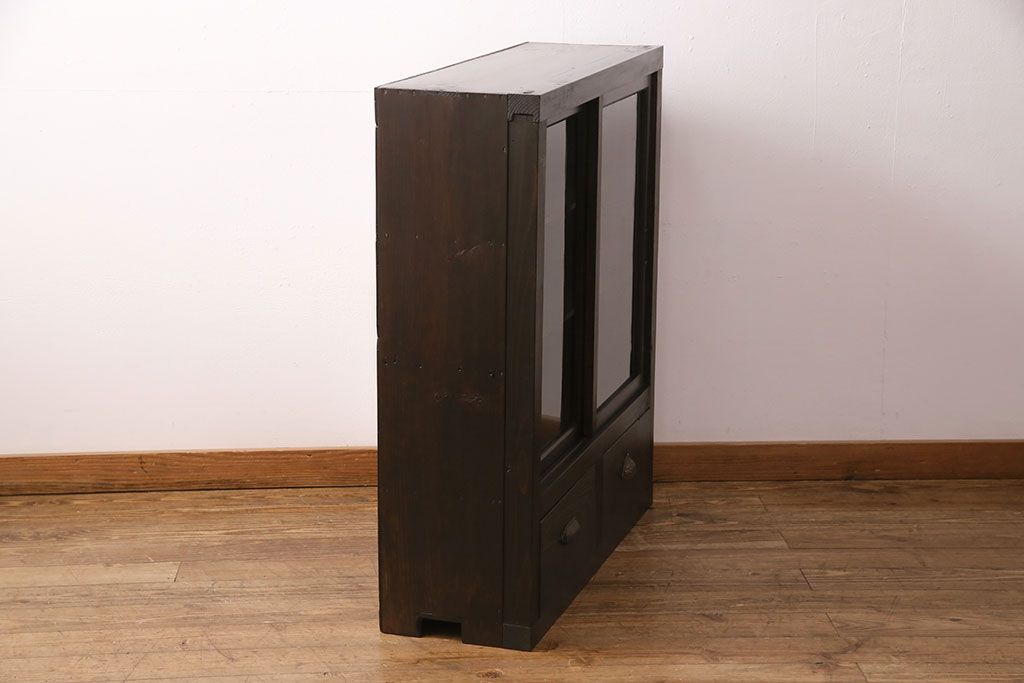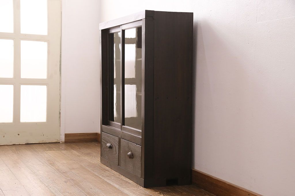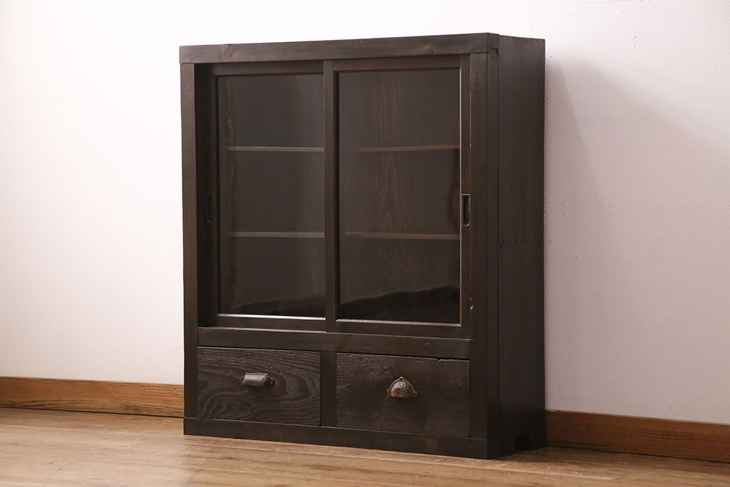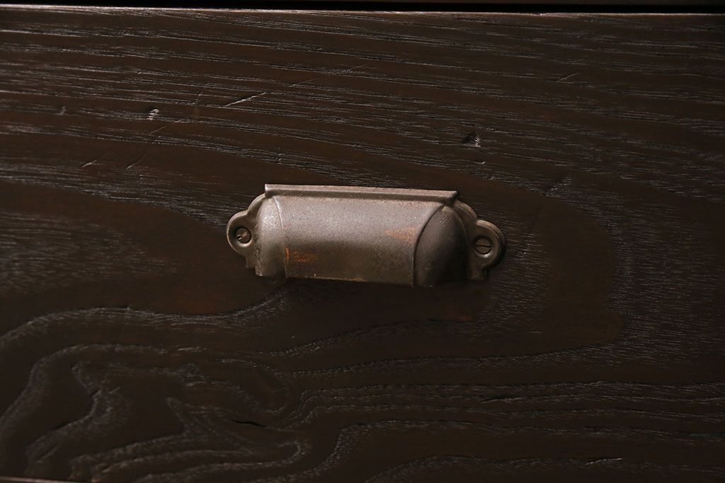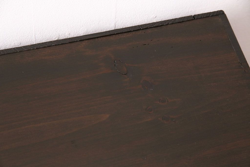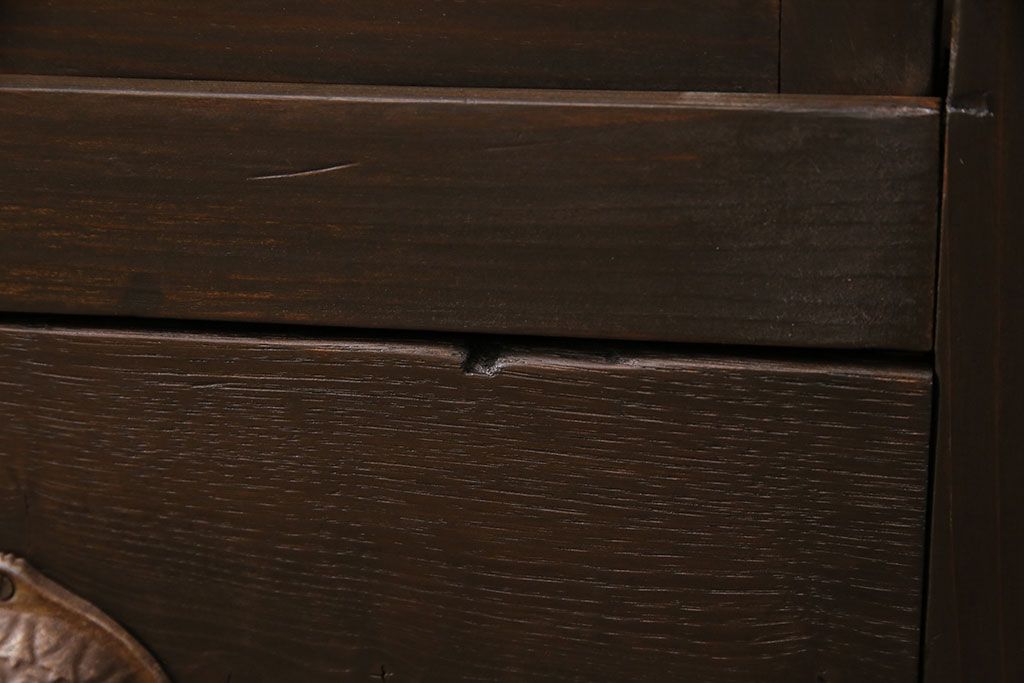 アンティークの収納棚をリペア&カスタム!可動部の調整を行い、傷んだ木部の交換。濃い茶色で着色し仕上げ。(戸棚、キャビネット、食器棚、サイドボード)