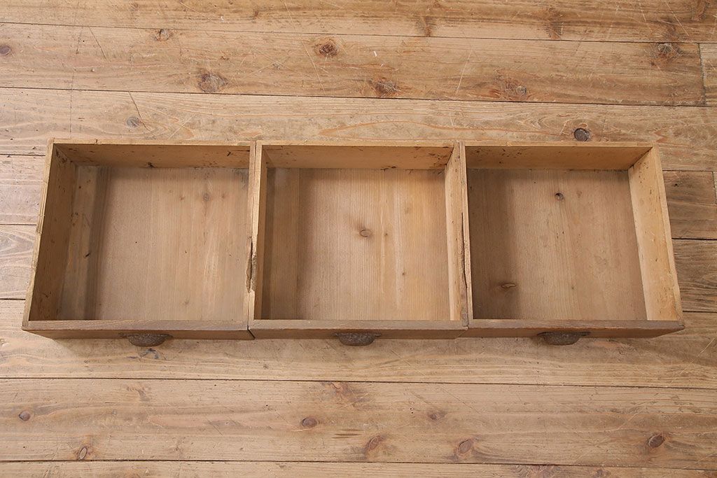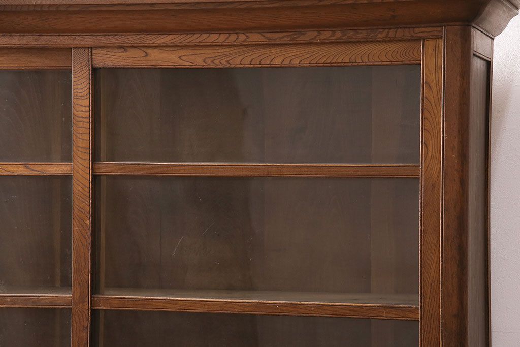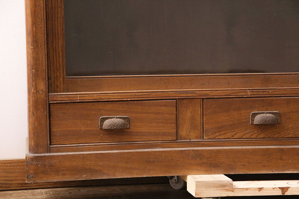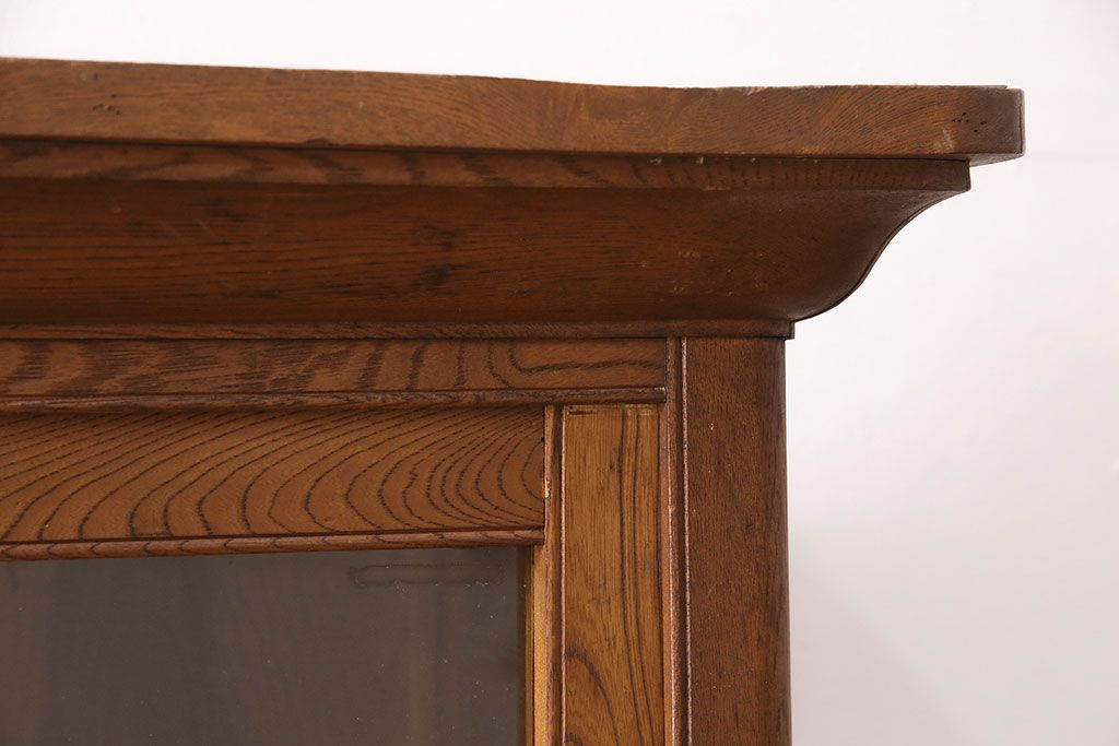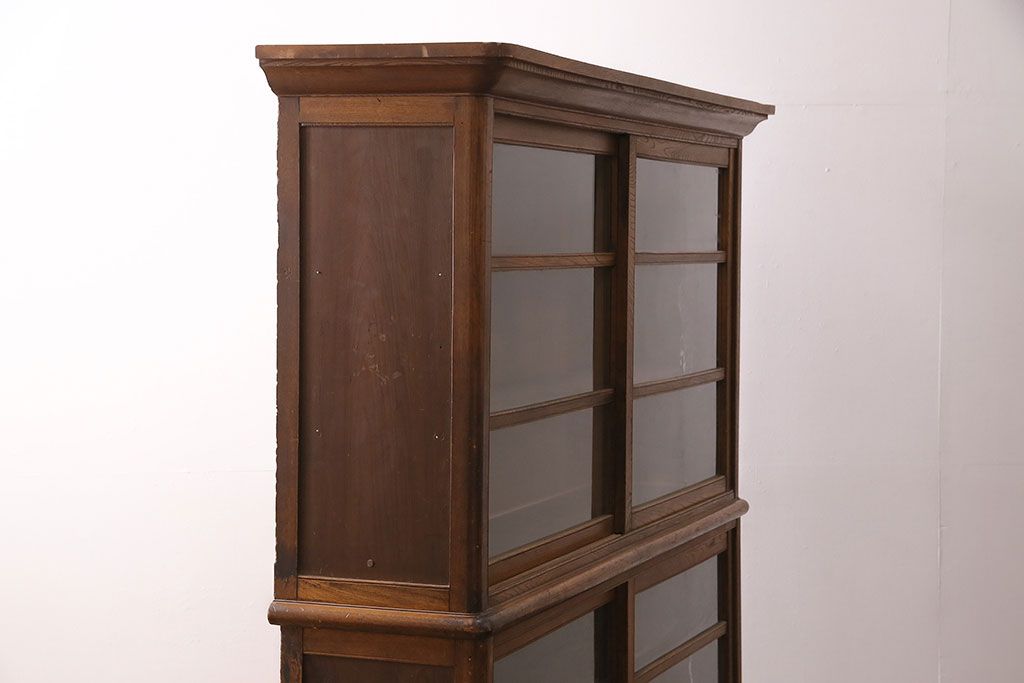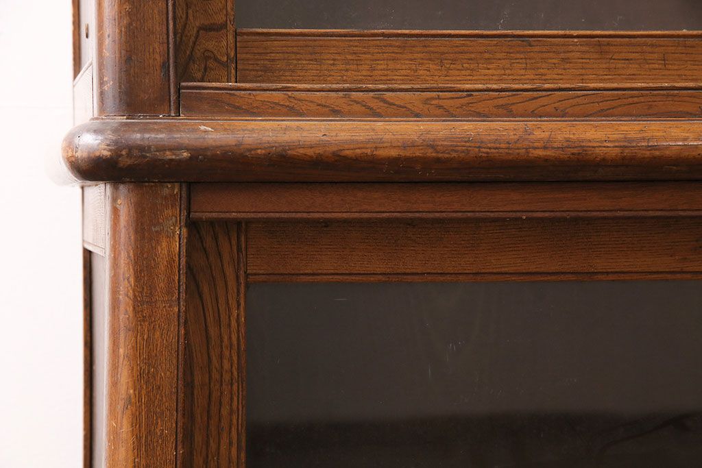 アンティーク家具 栓材 味わい深い木肌とレトロな引手が魅力の重ね戸棚(キャビネット、ガラスケース、ガラス戸棚、収納棚、食器棚、引き出し)(R-048544)