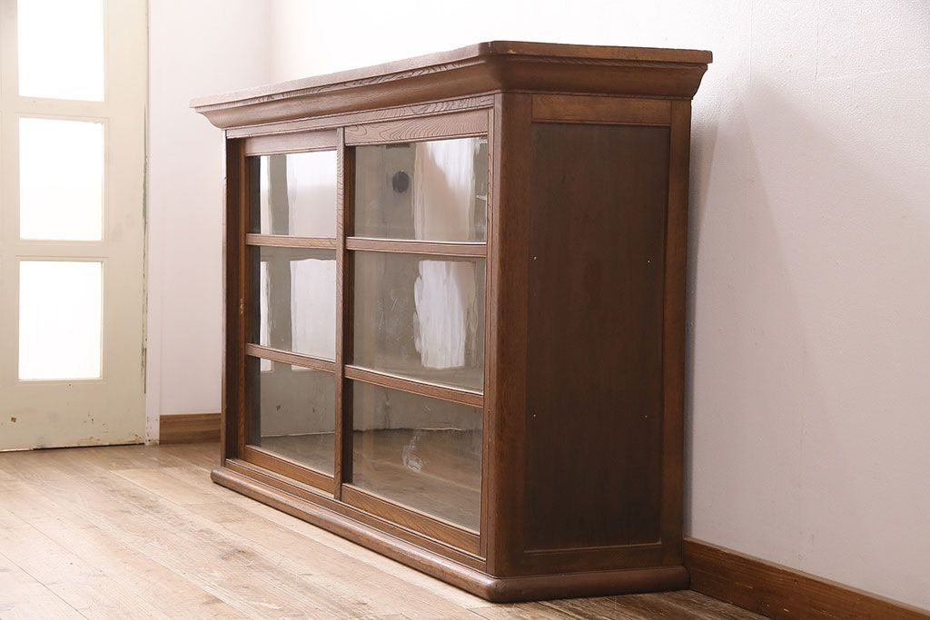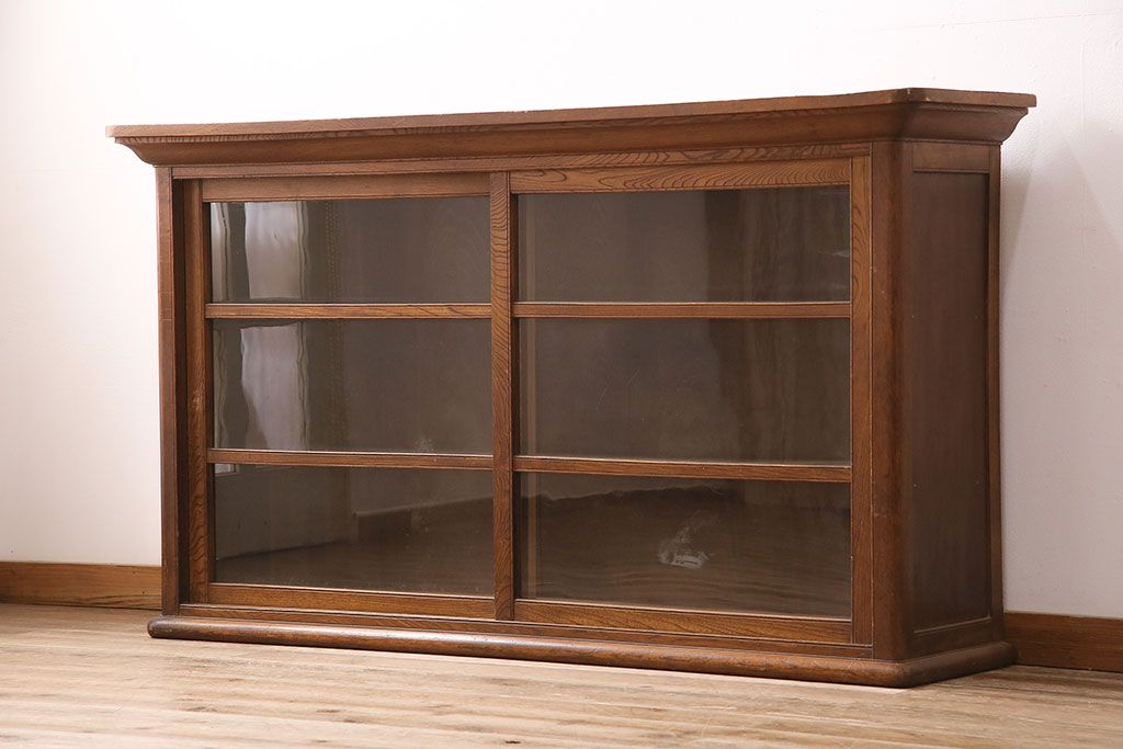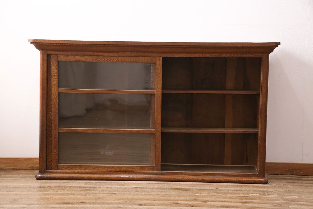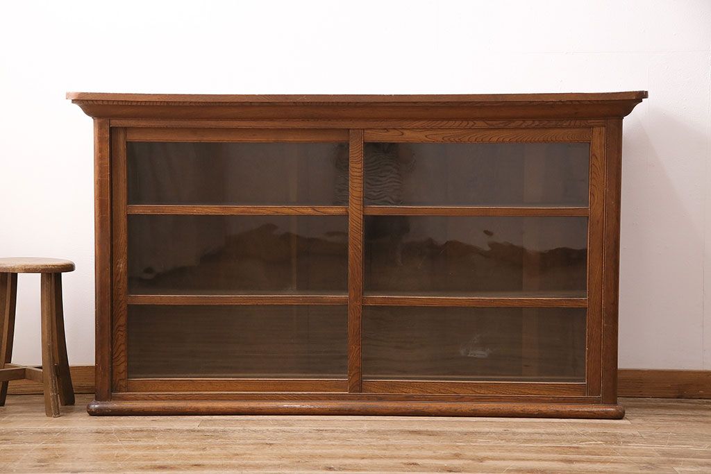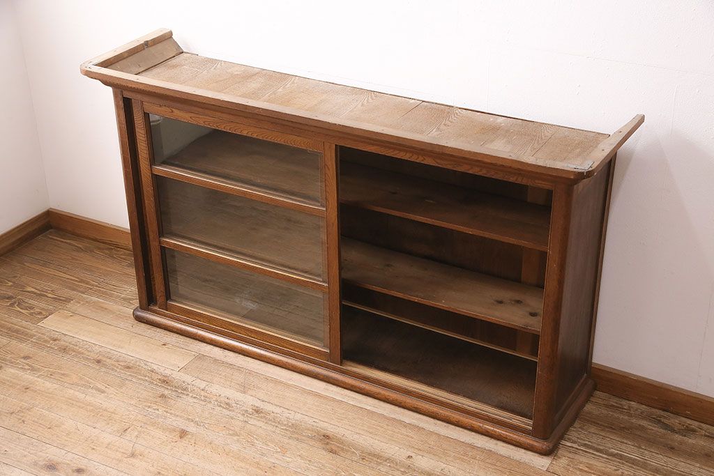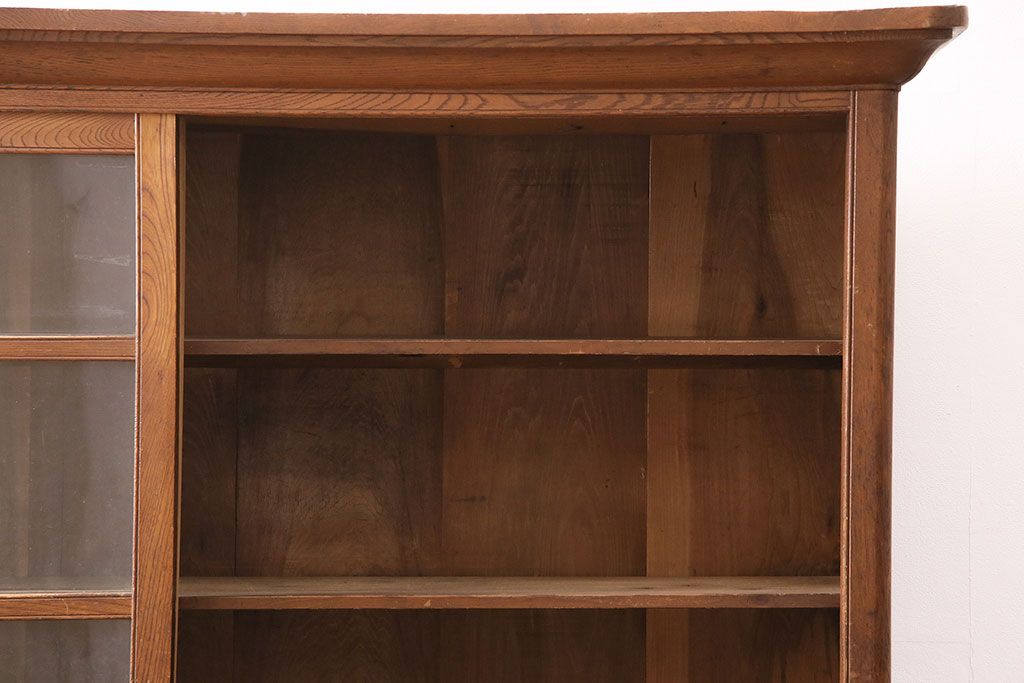 アンティーク家具 栓材 収納力抜群!味わい深い木肌が魅力の戸棚(キャビネット、ガラスケース、ガラス戸棚、収納棚)(R-048545)