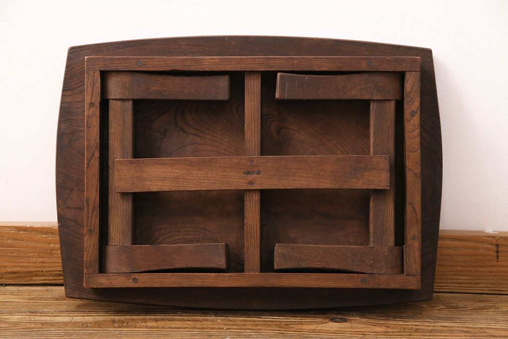 テーブル> おりたたみテーブル > 和製アンティーク 総ケヤキ材 天板一枚板 重厚で味わい深い角ちゃぶ台(座卓、ローテーブル、折り畳みテーブル)(R-049449)
