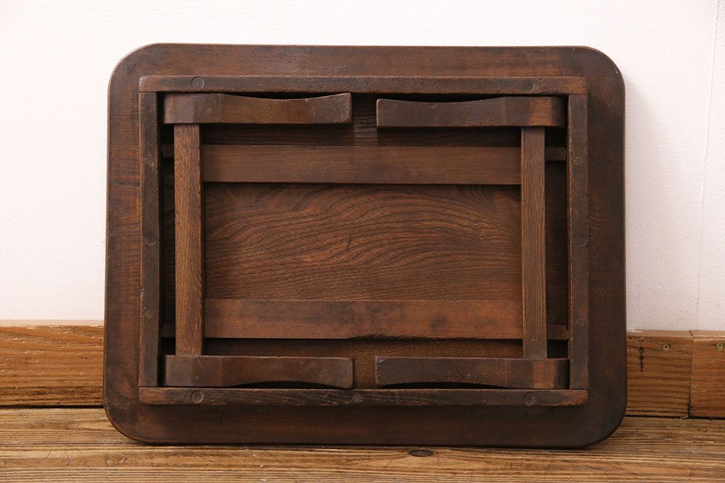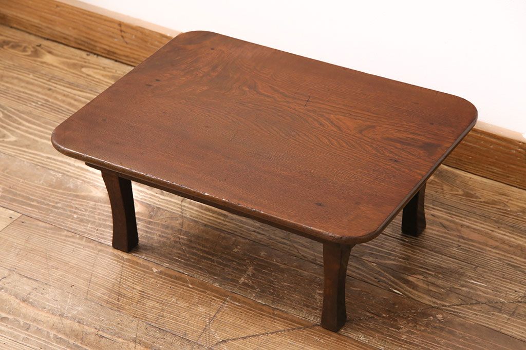 テーブル> おりたたみテーブル > 和製アンティーク 栓材 天板一枚板 素朴さと味のある風合いが魅力の角ちゃぶ台(座卓、ローテーブル、折り畳みテーブル)(R-049450)