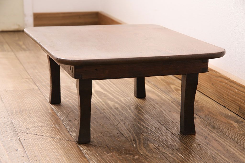 テーブル> 座卓 > 和製アンティーク 栓材 天板一枚板 素朴さと味のある風合いが魅力の角ちゃぶ台(座卓、ローテーブル、折り畳みテーブル)(R-049450)