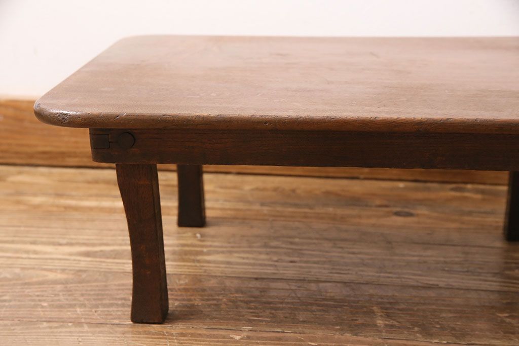 和製アンティーク 栓材 天板一枚板 素朴さと味のある風合いが魅力の角ちゃぶ台(座卓、ローテーブル、折り畳みテーブル)(R-049450)です。