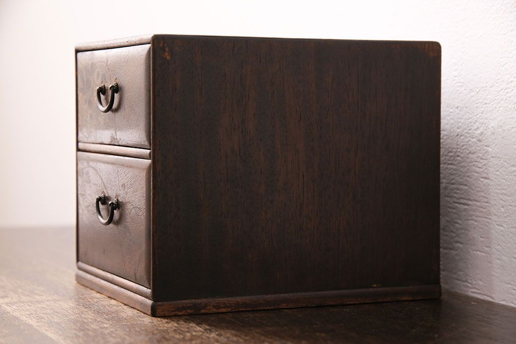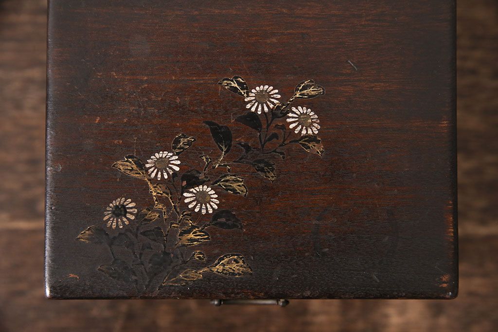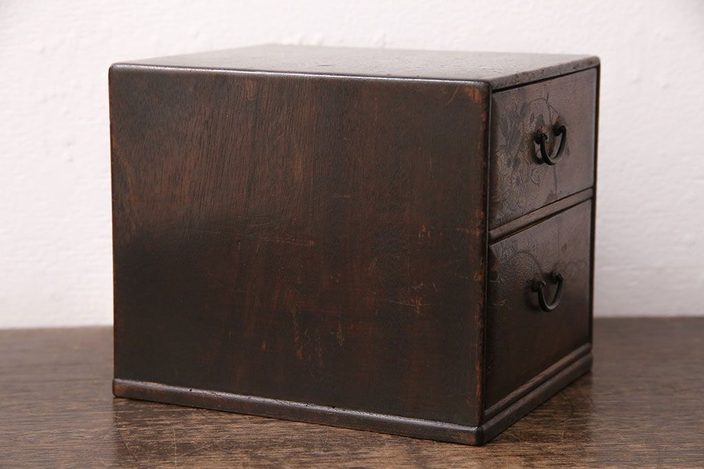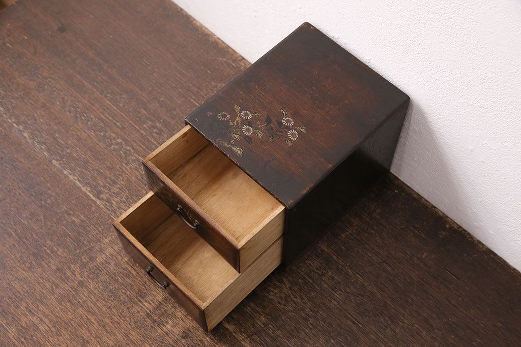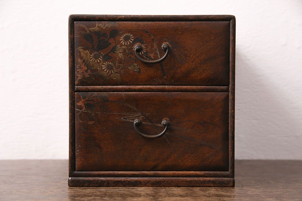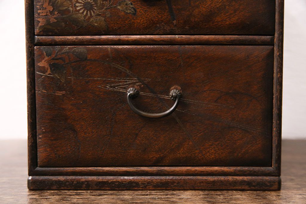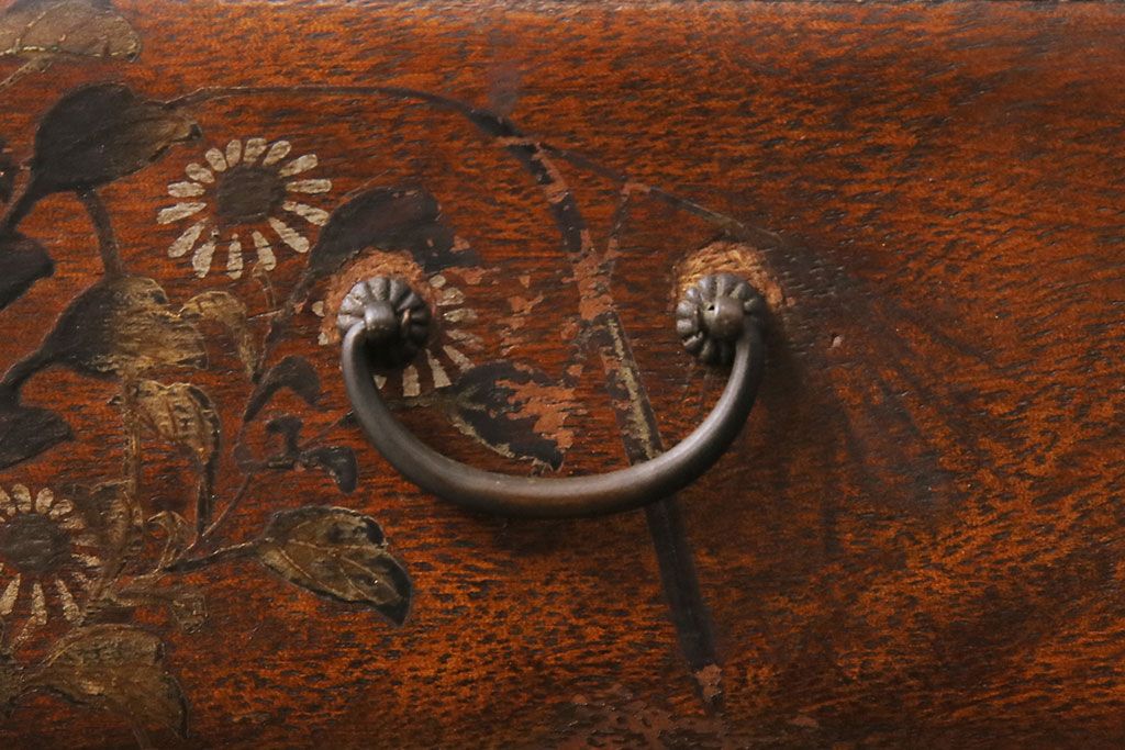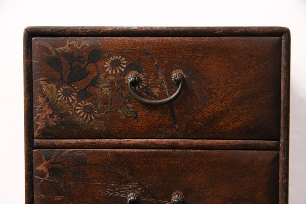 アンティーク家具 楠材 漆絵 味のある風合いと上品な佇まいが魅力の小引き出し(小物収納、卓上収納)(R-049452)