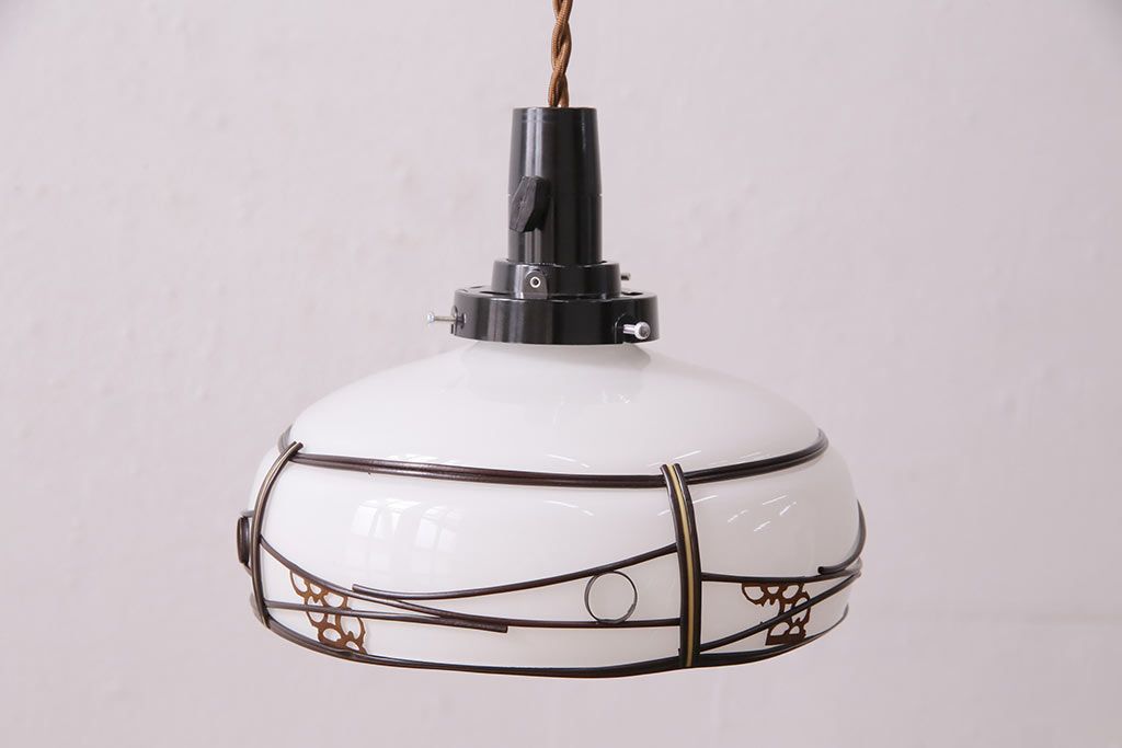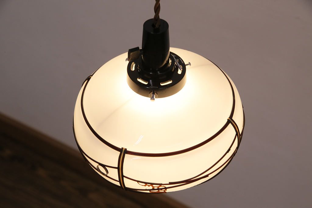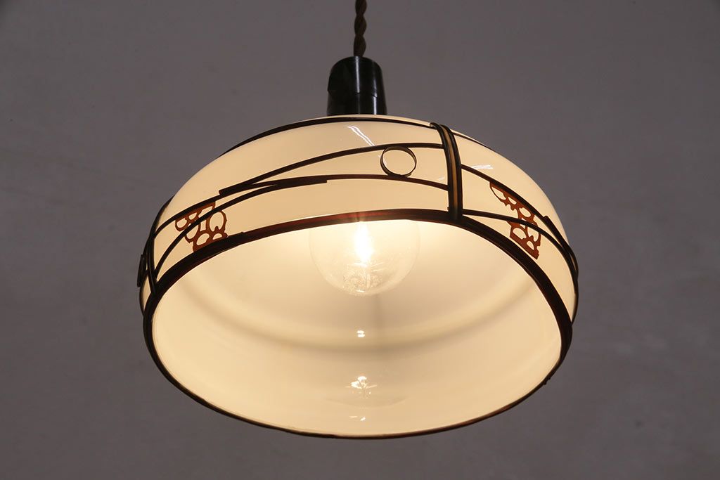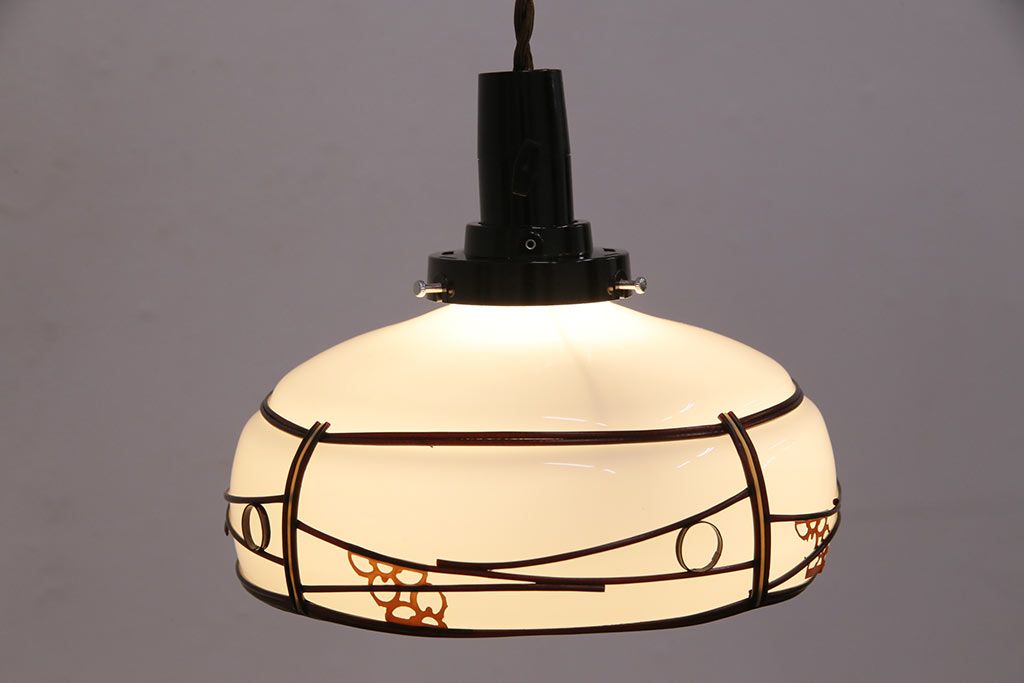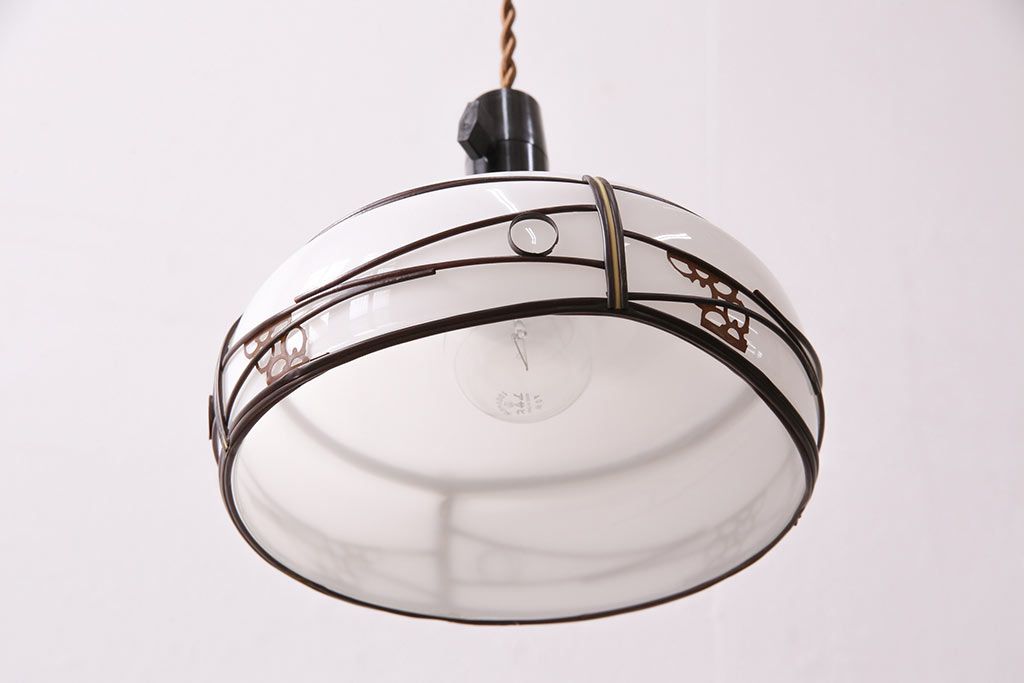アンティーク照明 セルロイド装飾がアクセントの昭和レトロな雰囲気が漂う天井照明(吊り下げ照明、ペンダントライト、シェード)(R-049511)
