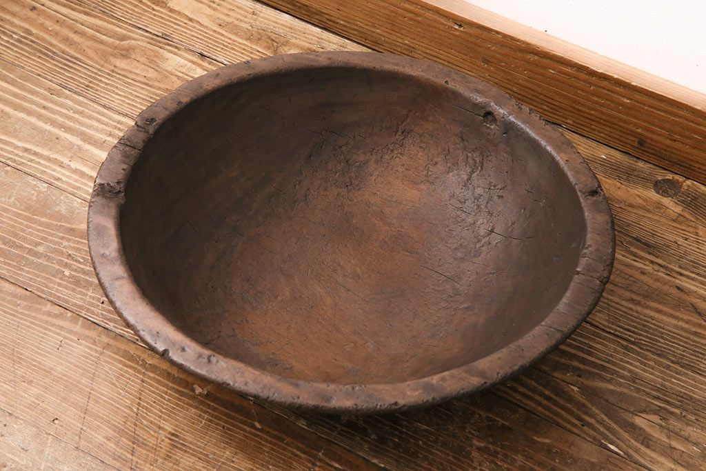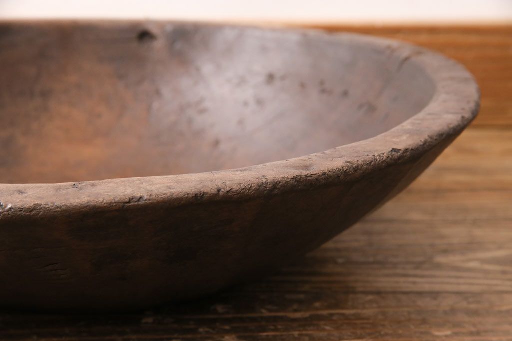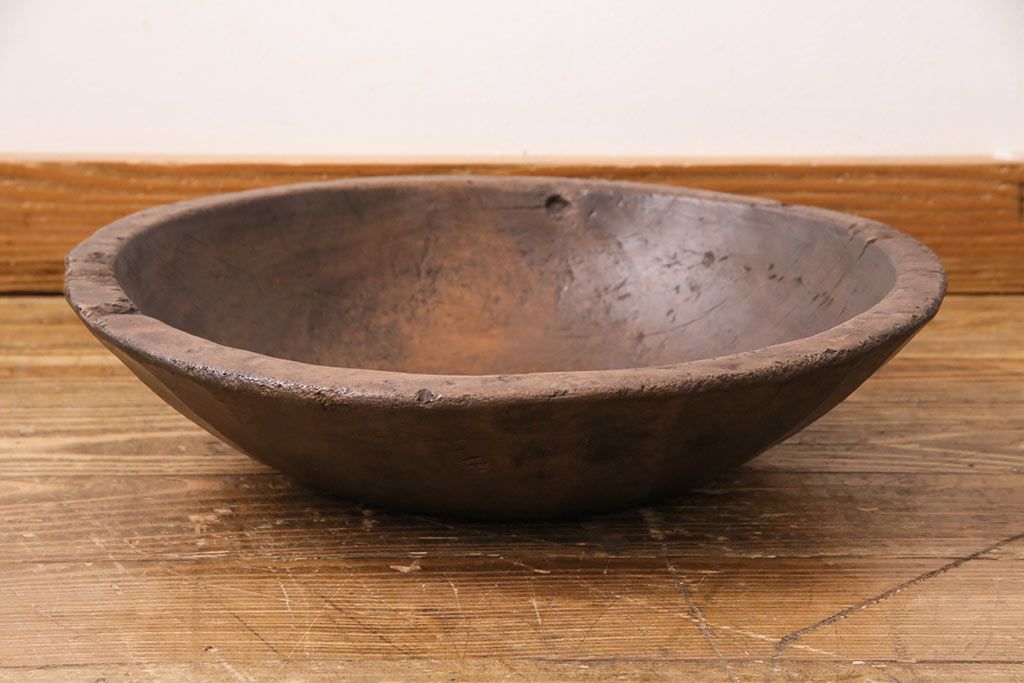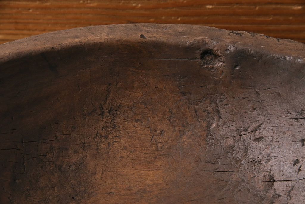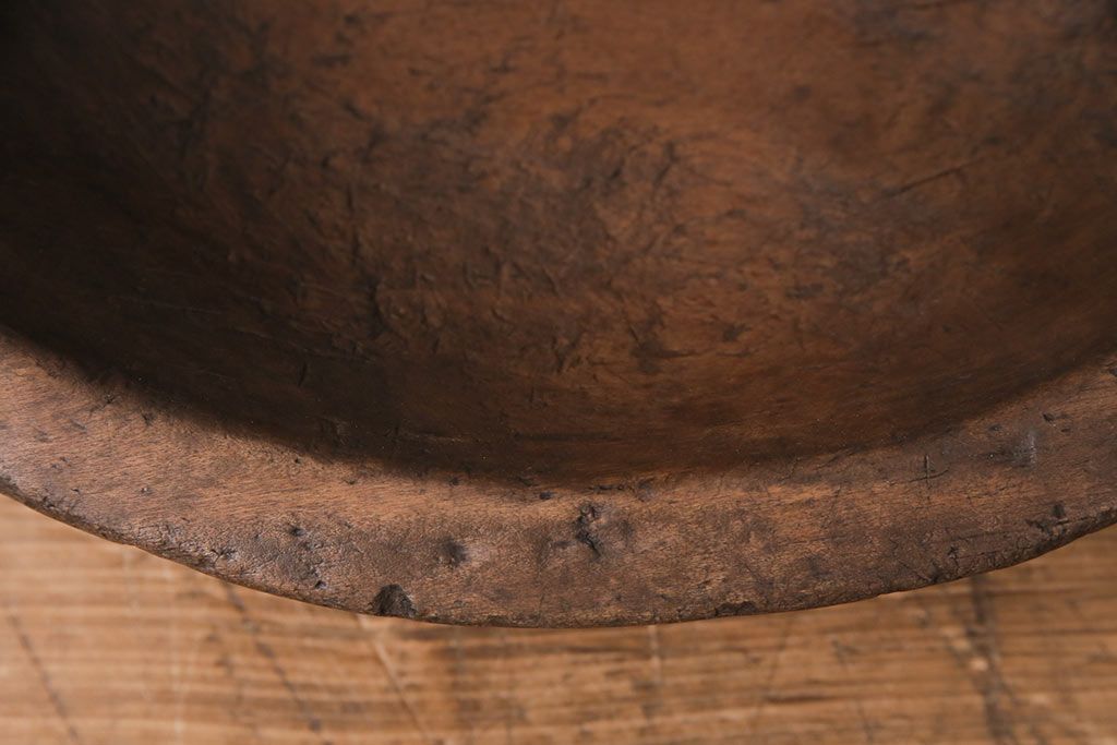 和食器・茶道具> 皿 > アンティーク雑貨 古民具・骨董 使い込まれた木の風合いが趣溢れる明治大正期のこね鉢(木鉢)(R-049501)