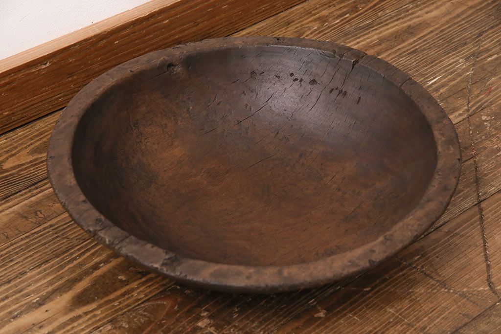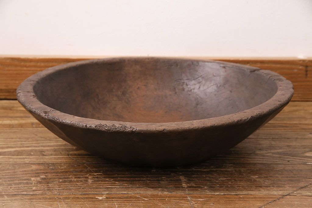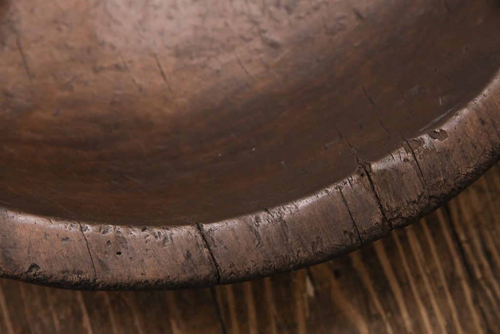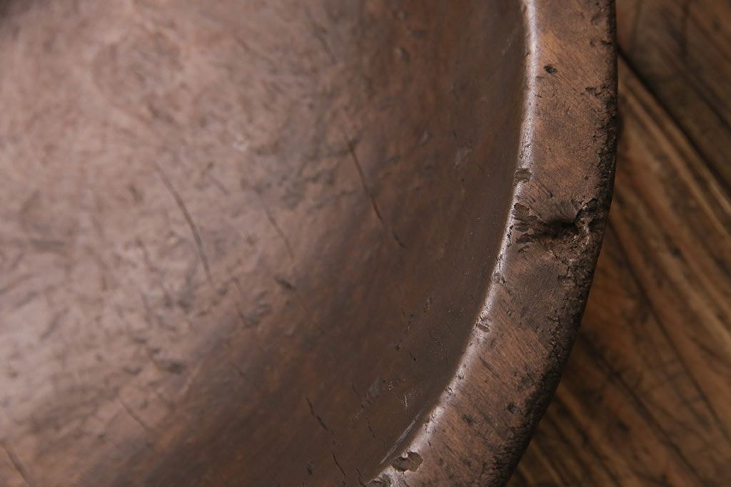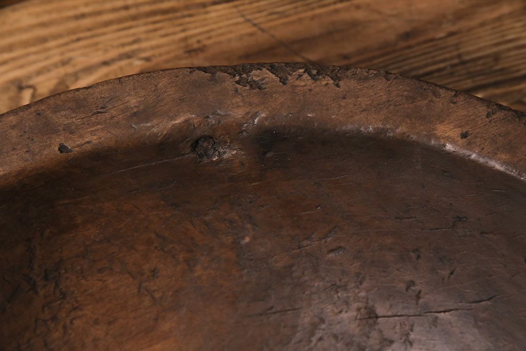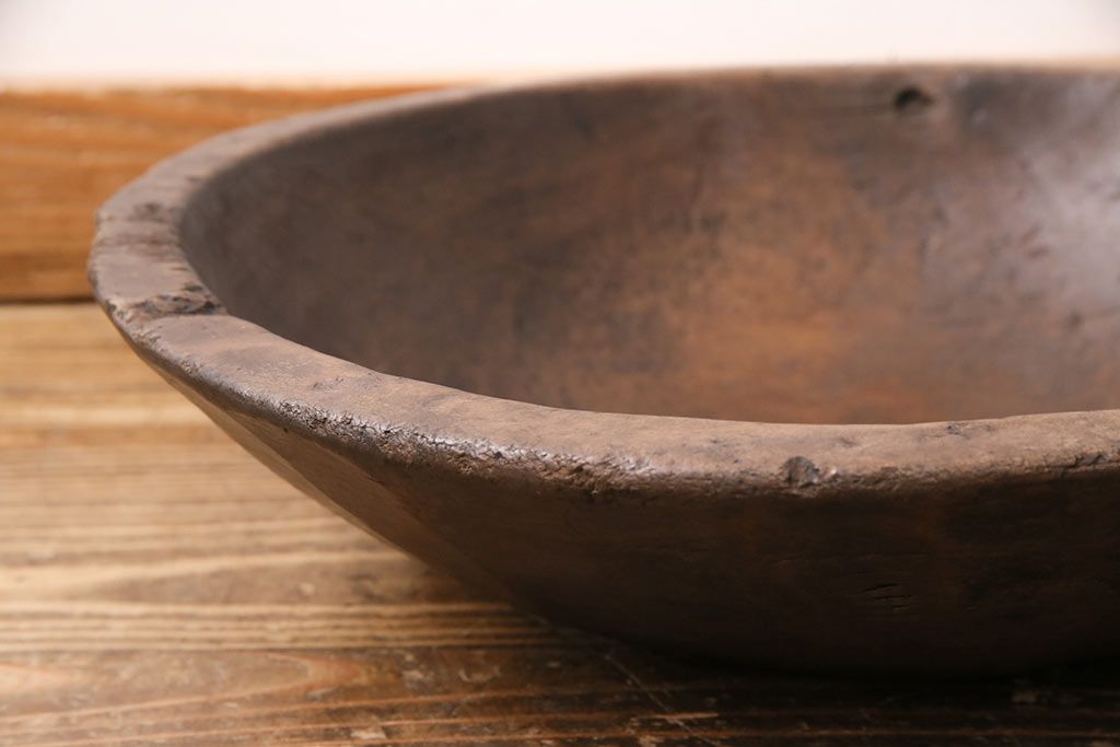 和食器・茶道具> 皿 > アンティーク雑貨 古民具・骨董 使い込まれた木の風合いが趣溢れる明治大正期のこね鉢(木鉢)(R-049501)