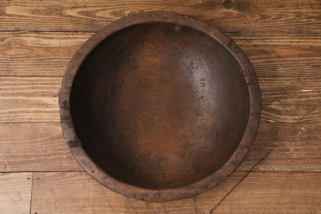 和食器・茶道具> 鉢 > アンティーク雑貨 古民具・骨董 使い込まれた木の風合いが趣溢れる明治大正期のこね鉢(木鉢)(R-049501)