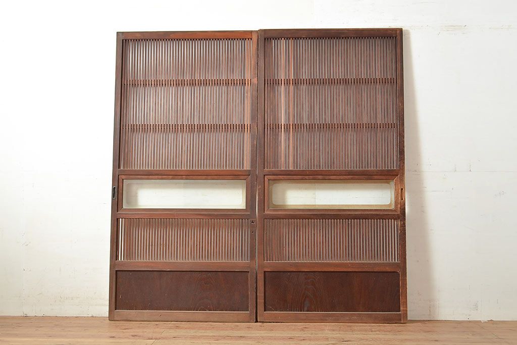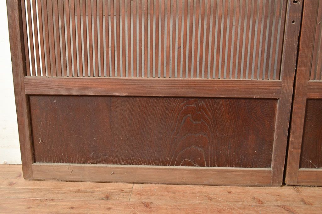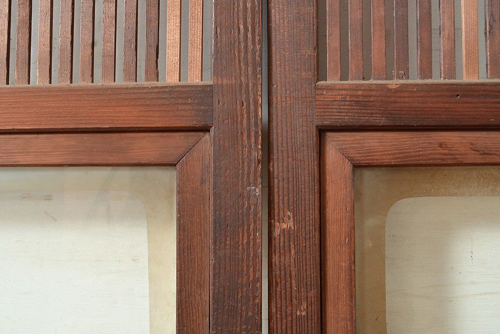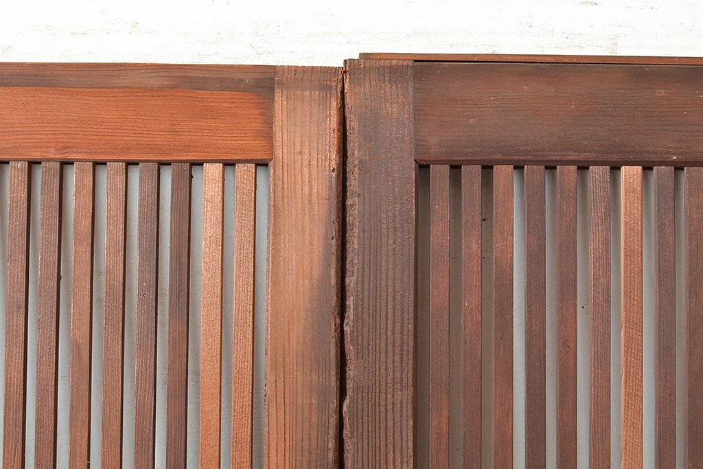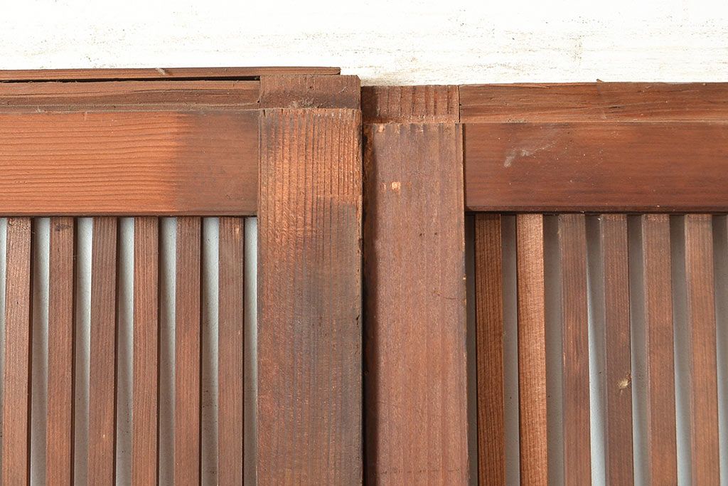 アンティーク建具 整然と並ぶ縦桟が情緒溢れる格子戸2枚セット(引き戸、建具)(R-049287)