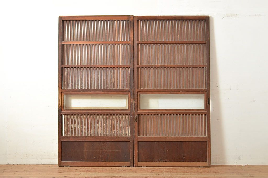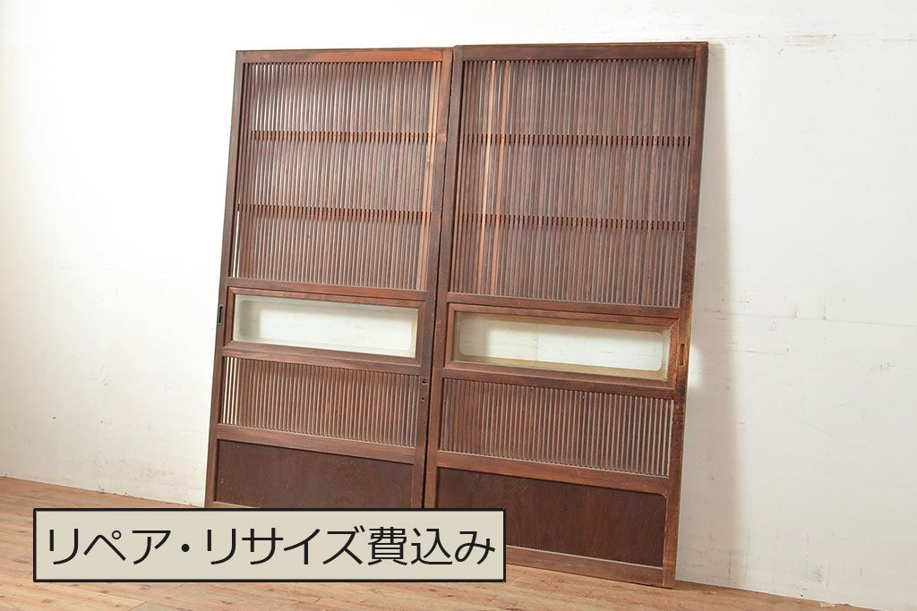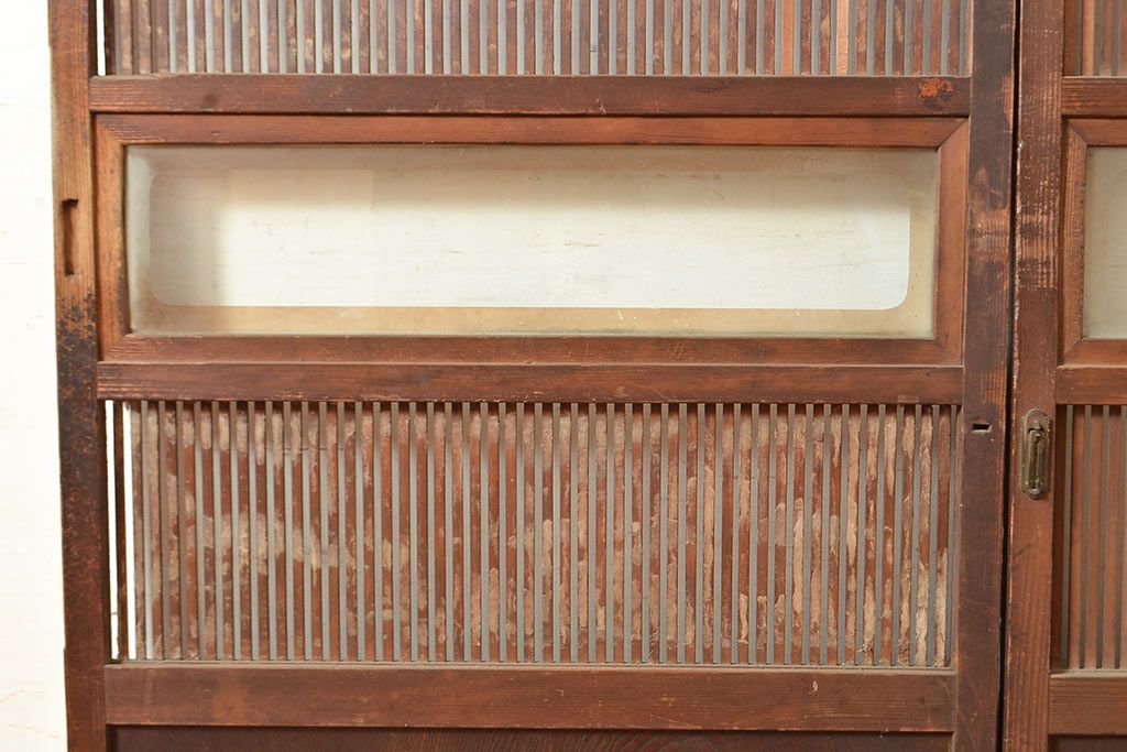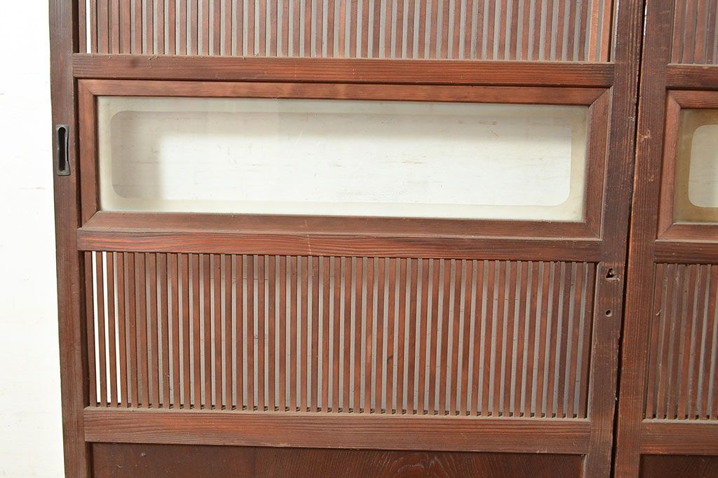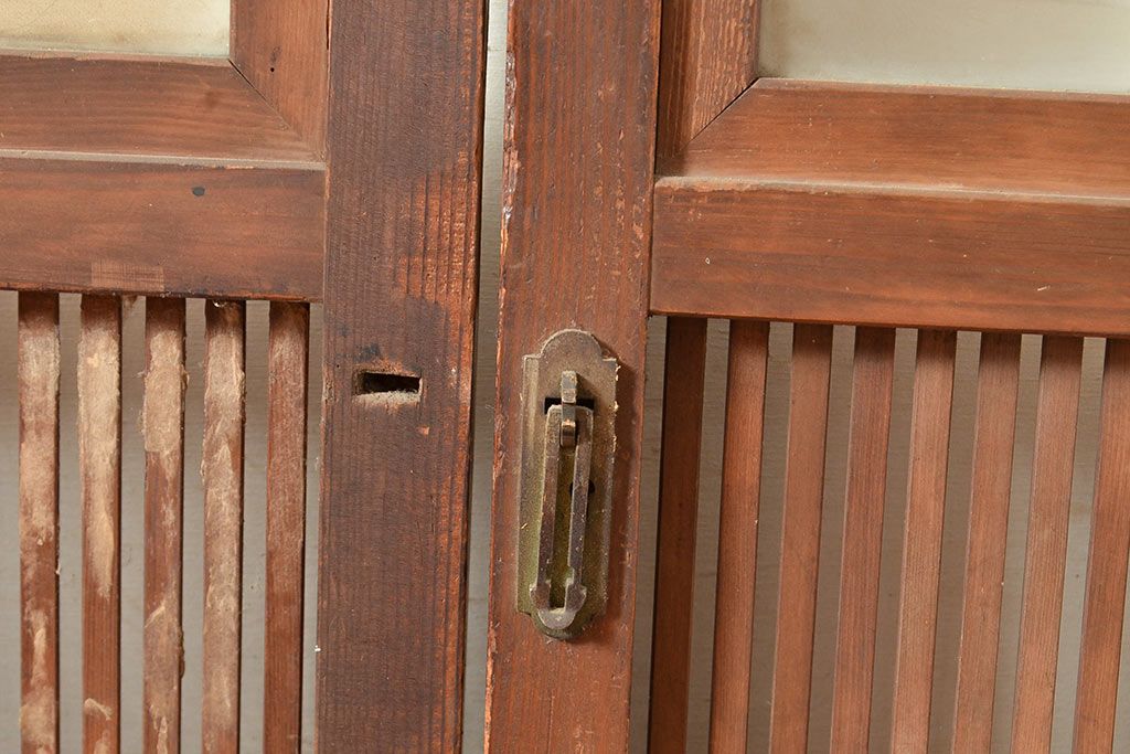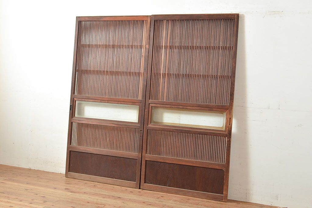 アンティーク建具 整然と並ぶ縦桟が情緒溢れる格子戸2枚セット(引き戸、建具)(R-049287)