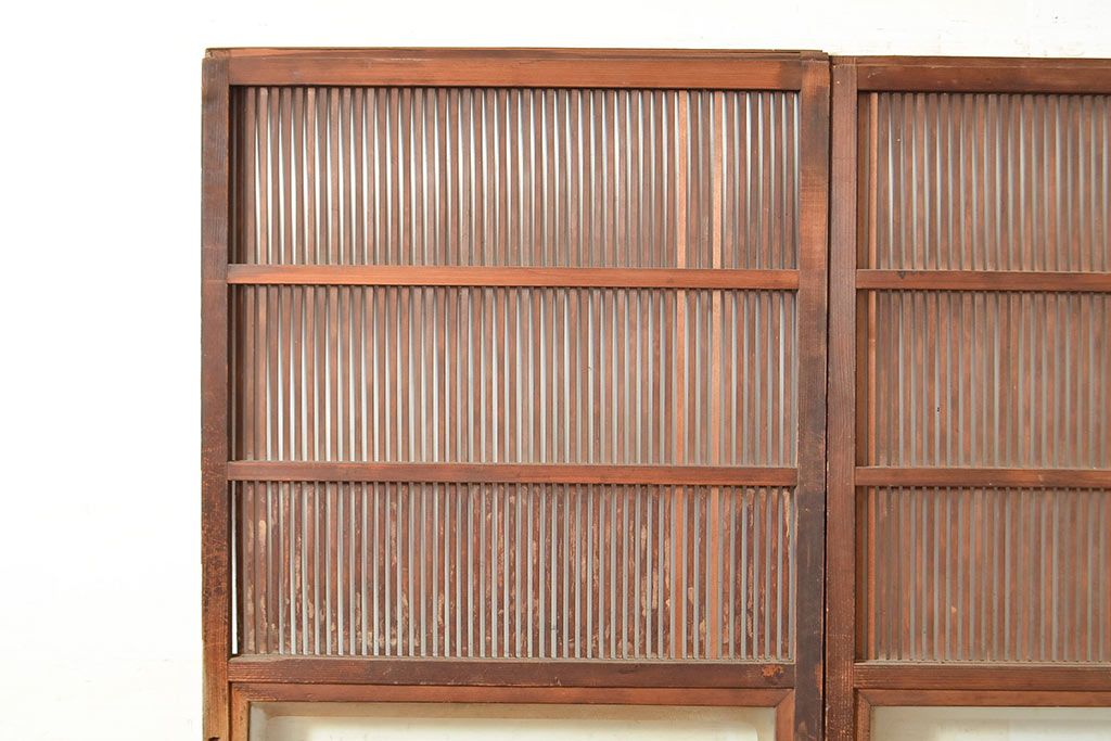ラフジュ工房> ドア・建具> 格子戸 > アンティーク建具 整然と並ぶ縦桟が情緒溢れる格子戸2枚セット(引き戸、建具)(R-049287)