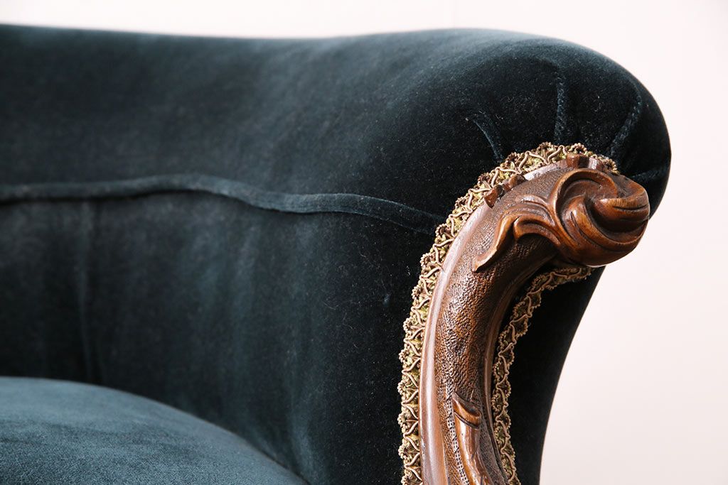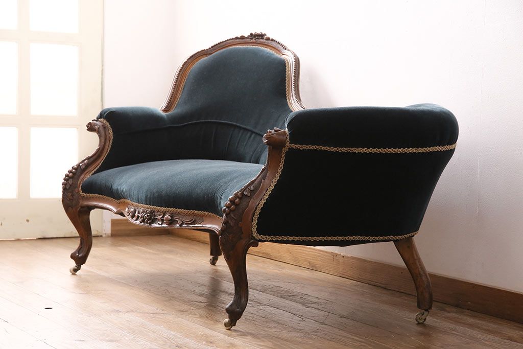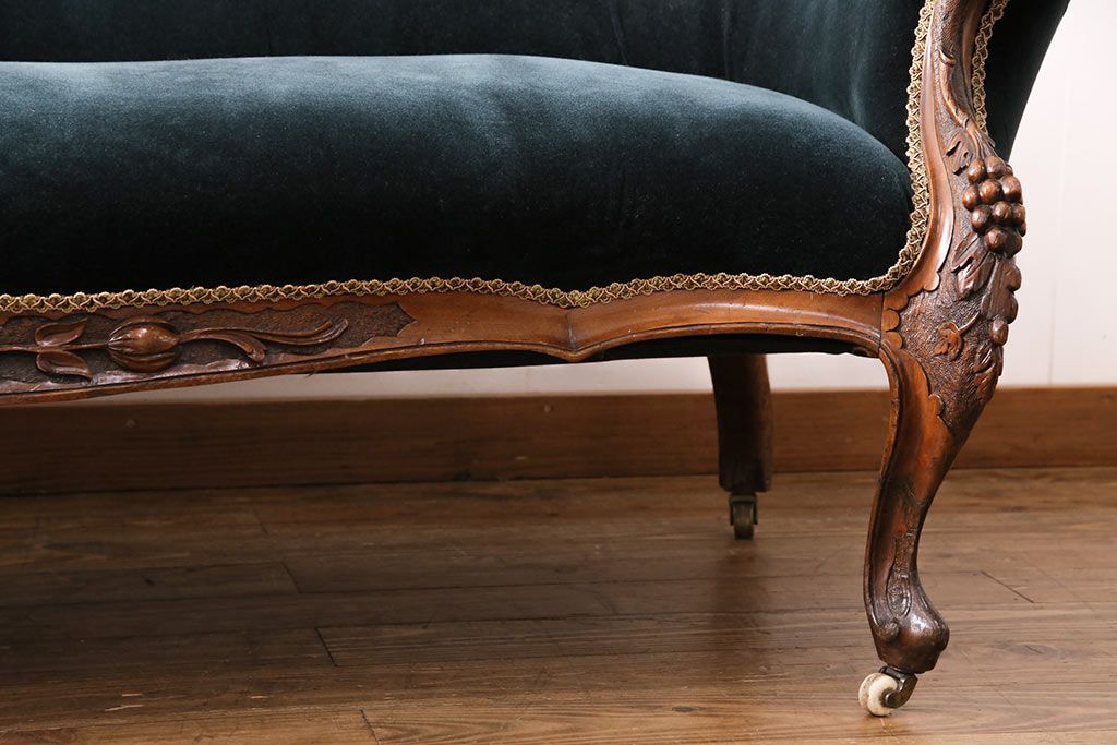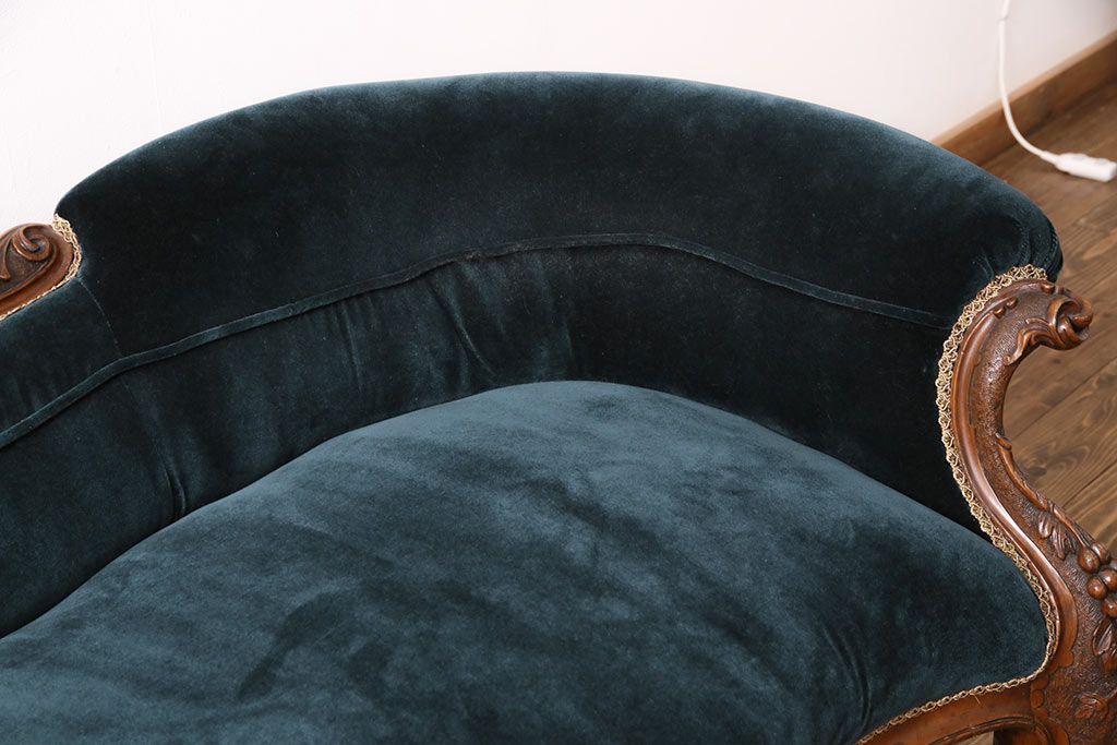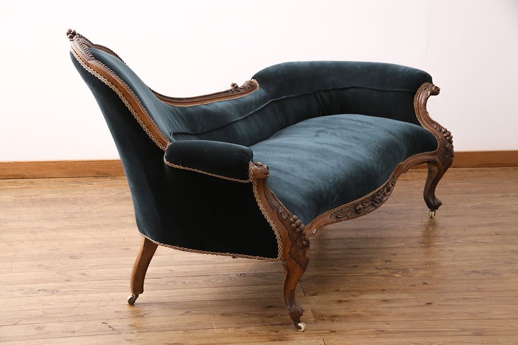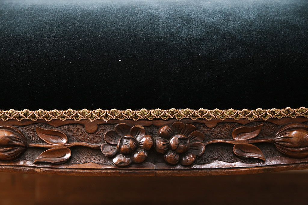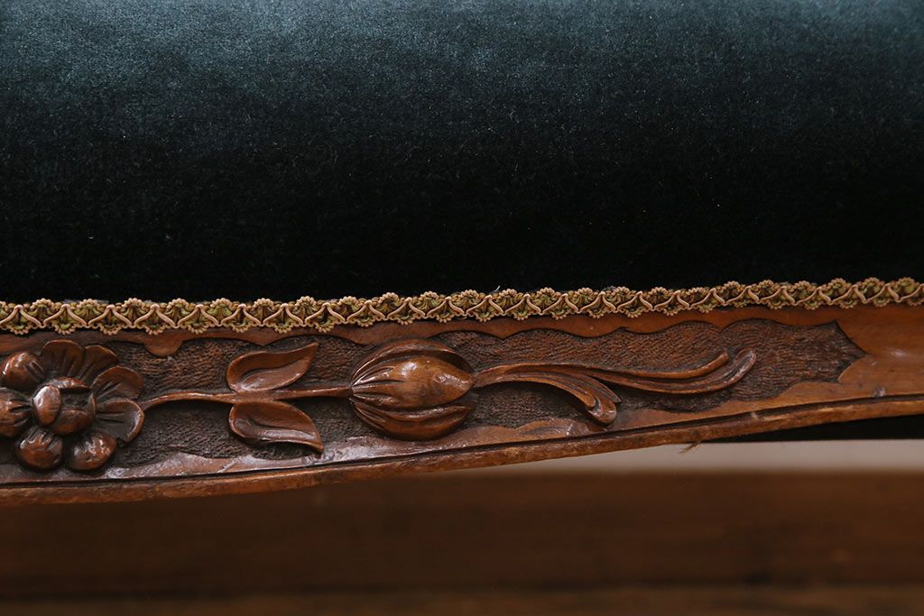 ソファ> 2人掛けソファ > アンティーク家具 マホガニー材 美品 彫刻の細やかな意匠が目を引く最高級品のシェーズロング(カウチソファ、ソファ、長椅子)(R-049456)