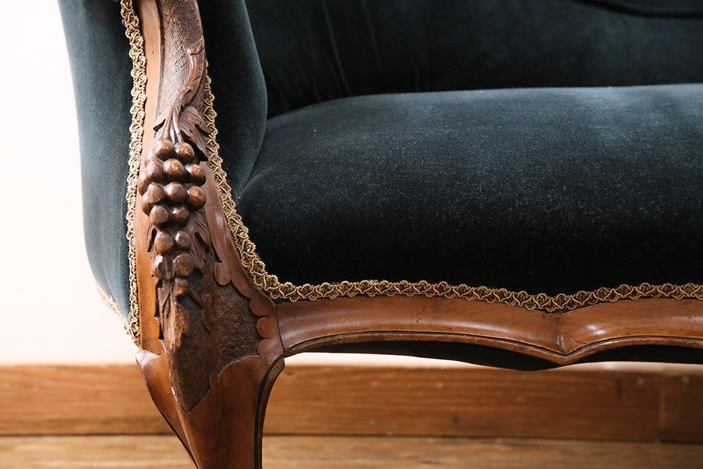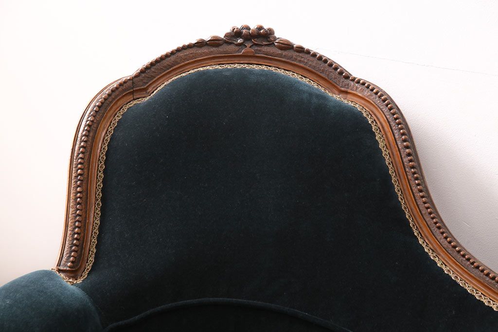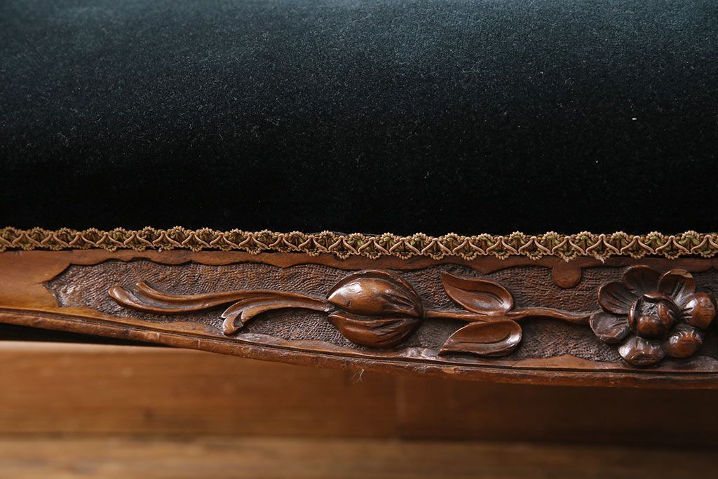 ソファ > アンティーク家具 マホガニー材 美品 彫刻の細やかな意匠が目を引く最高級品のシェーズロング(カウチソファ、ソファ、長椅子)(R-049456)