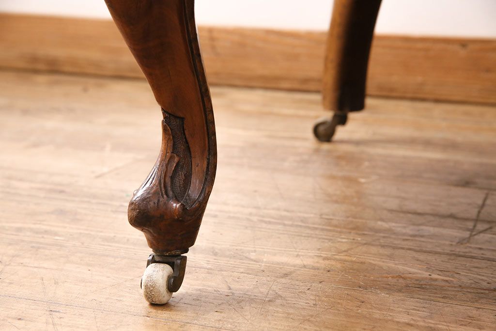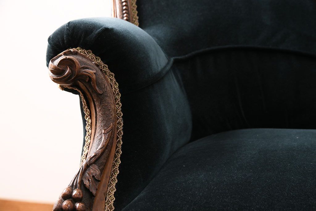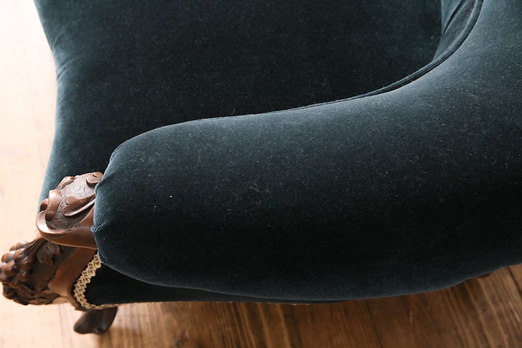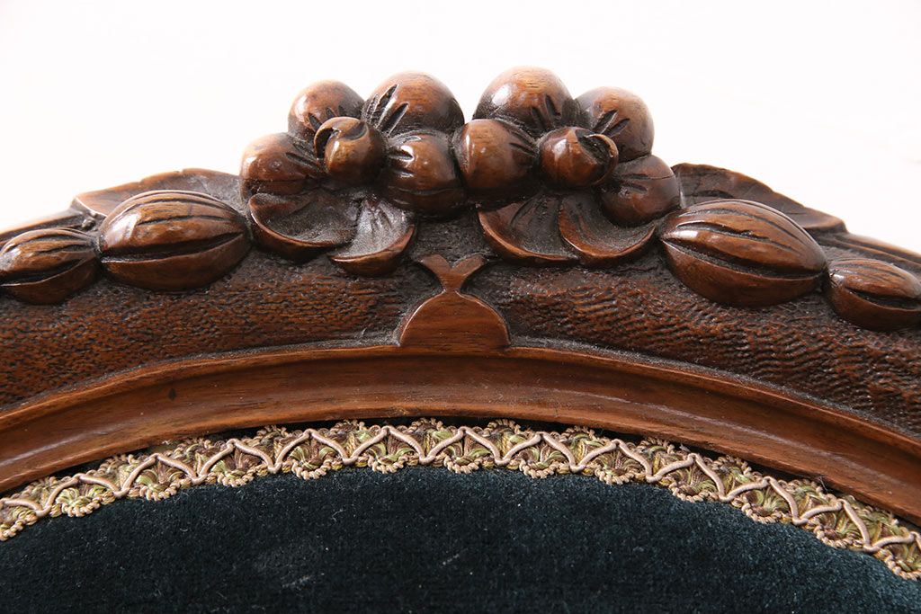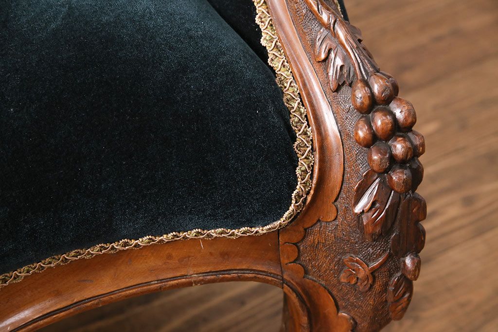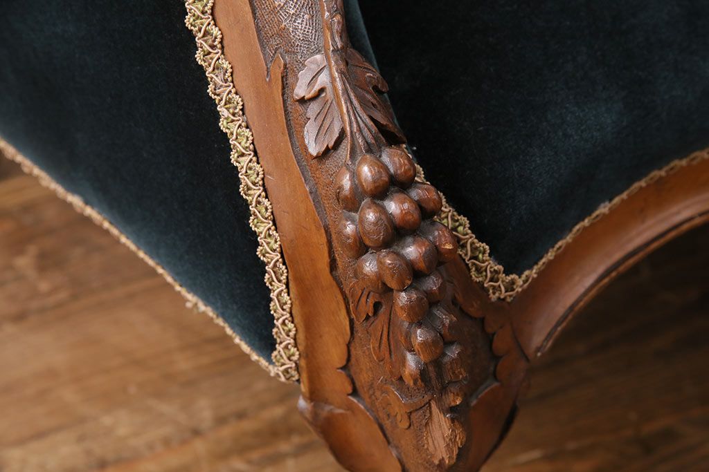 ソファ> 1人掛けソファ > アンティーク家具 マホガニー材 美品 彫刻の細やかな意匠が目を引く最高級品のシェーズロング(カウチソファ、ソファ、長椅子)(R-049456)