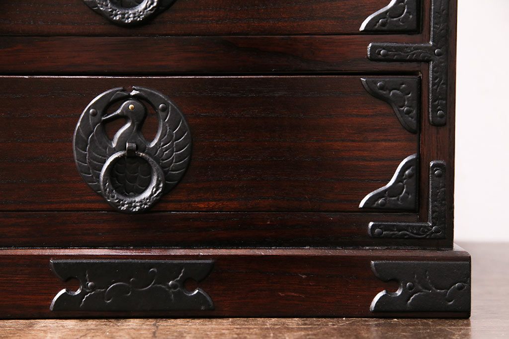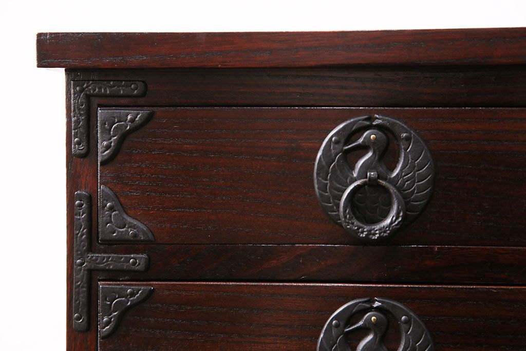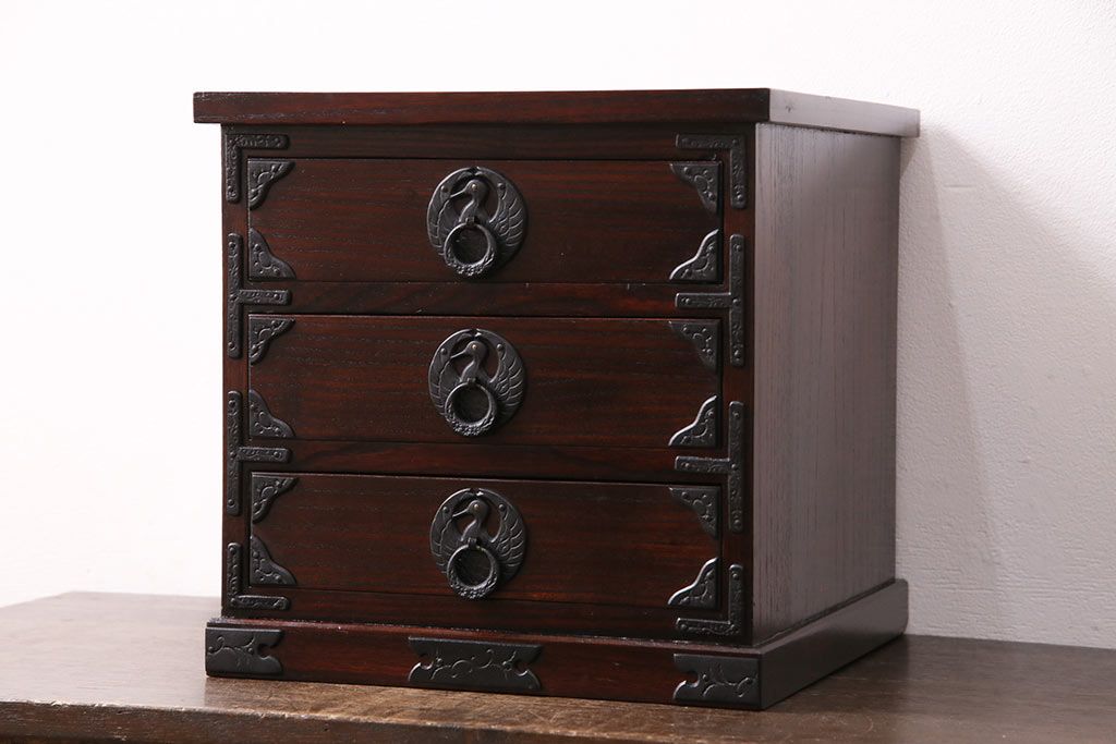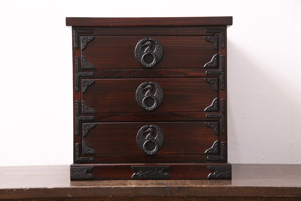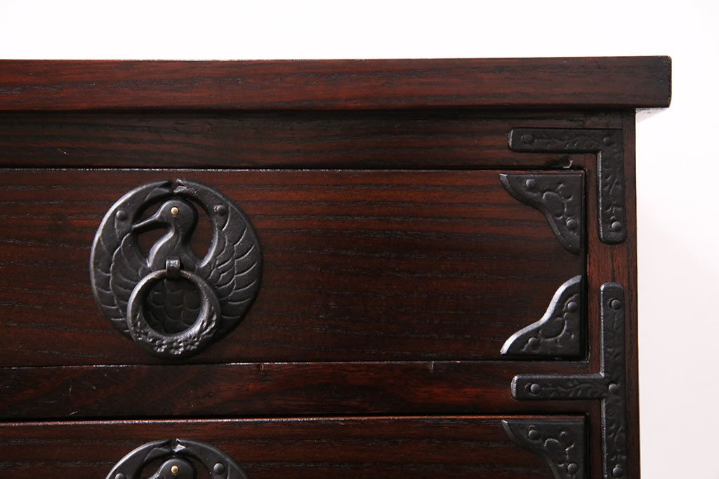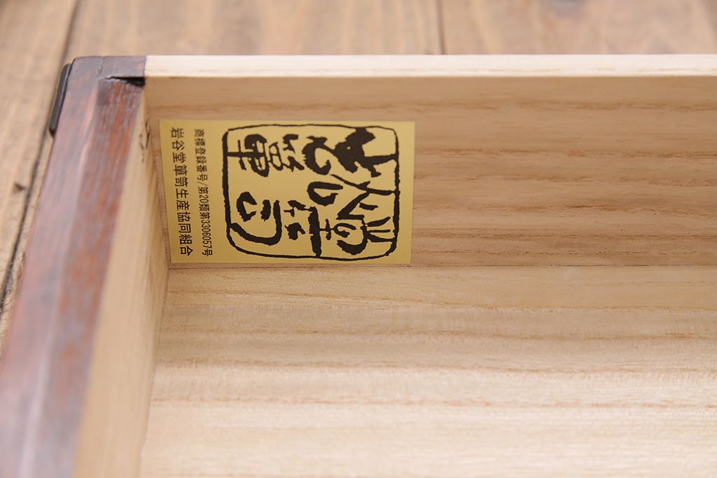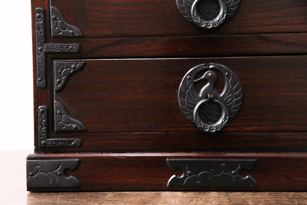 民芸家具 > 中古 美品 伝統民芸 岩谷堂箪笥 鶴モチーフの金具が上品な印象を高める小引き出し(卓上収納、小物収納)(R-049557)