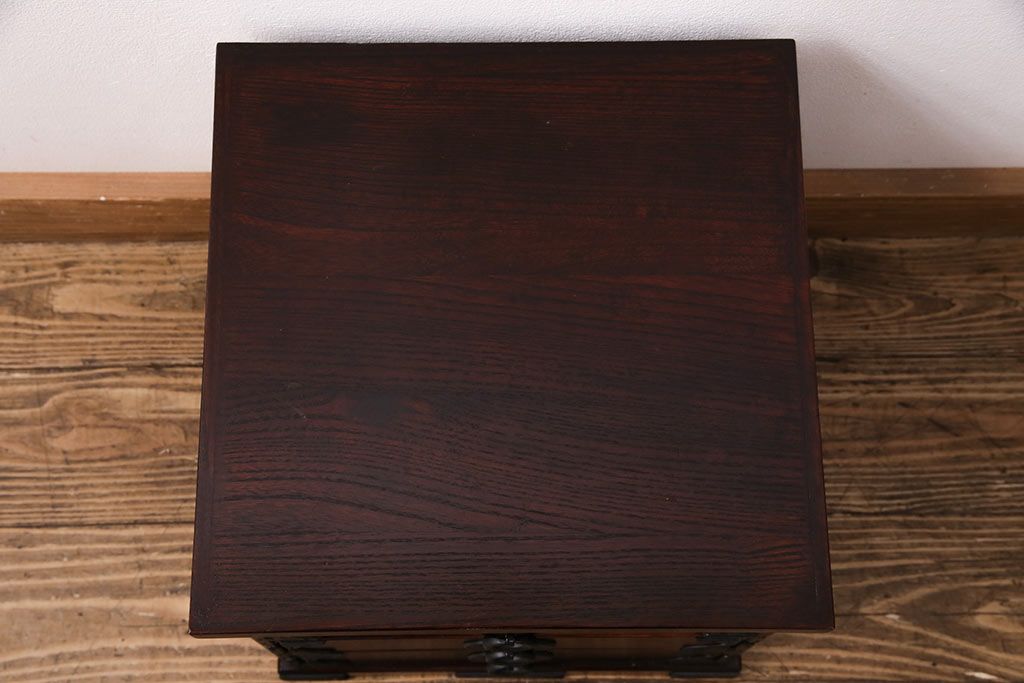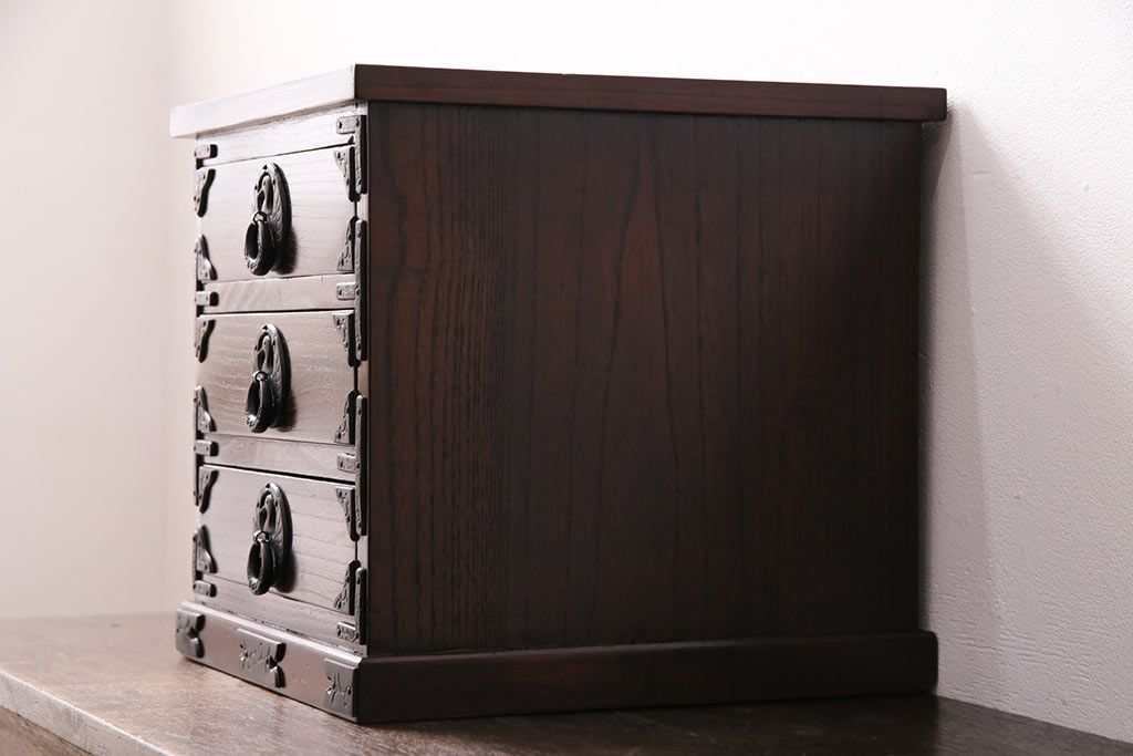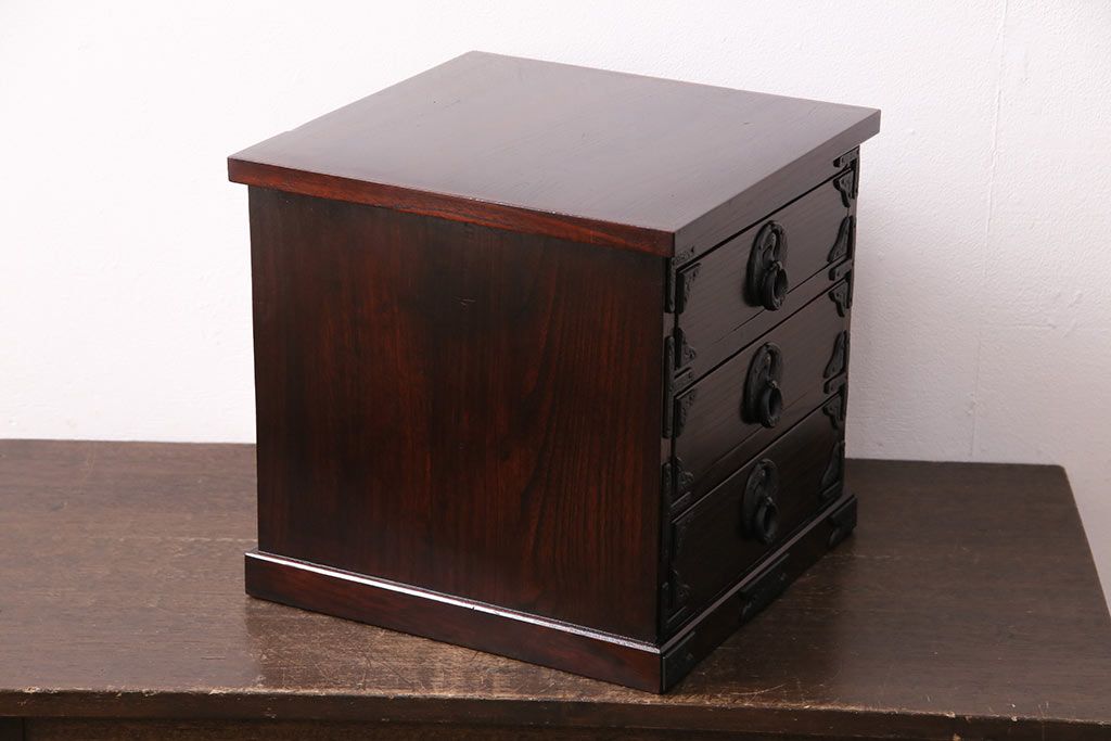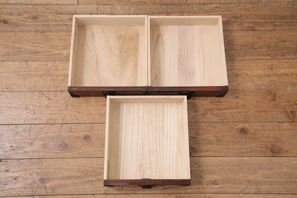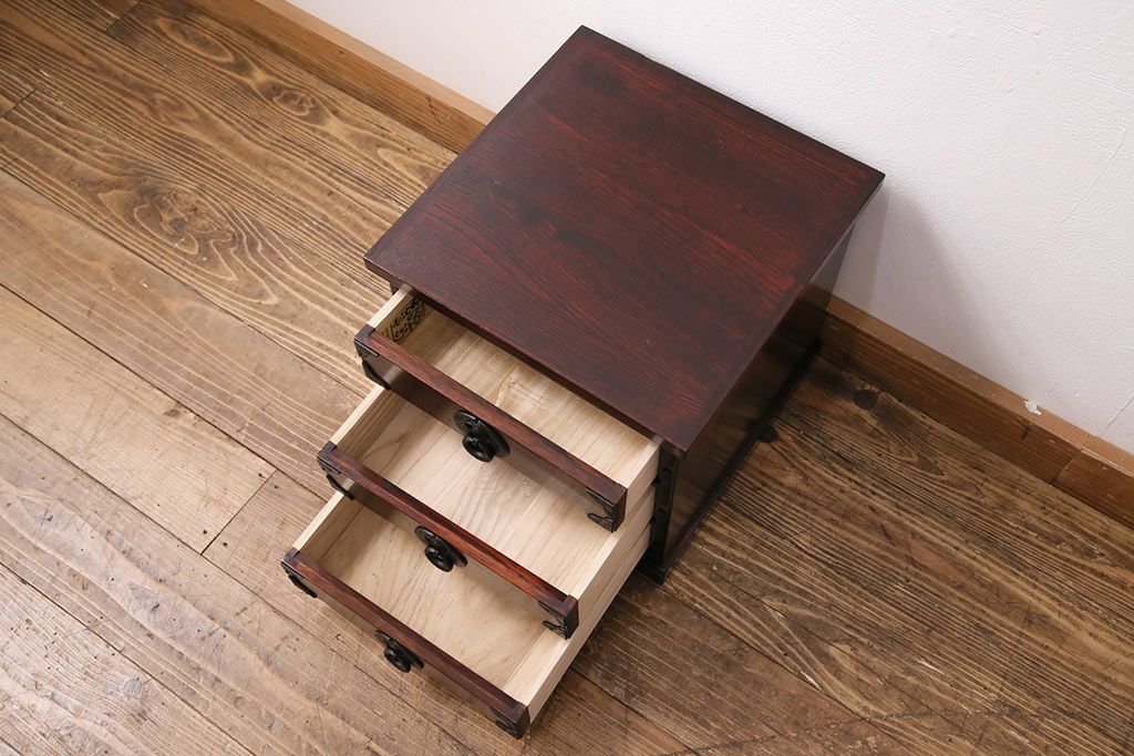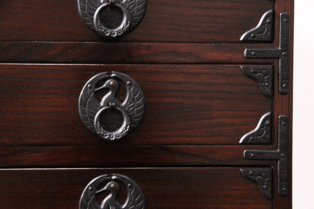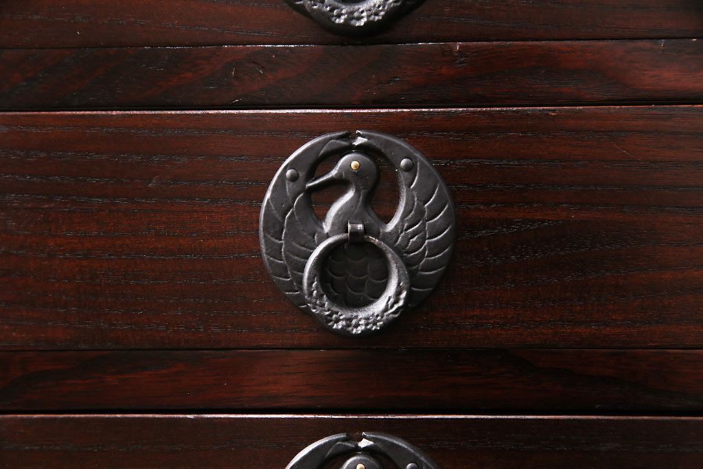 民芸家具 > 中古 美品 伝統民芸 岩谷堂箪笥 鶴モチーフの金具が上品な印象を高める小引き出し(卓上収納、小物収納)(R-049557)